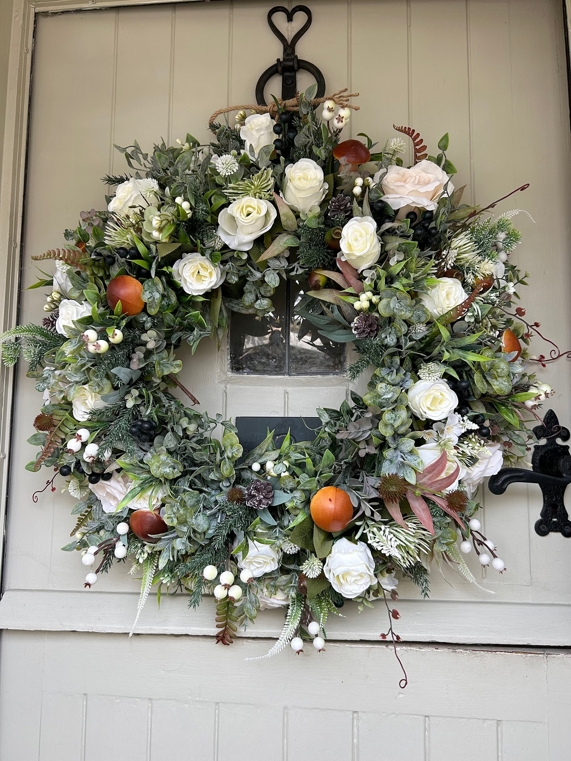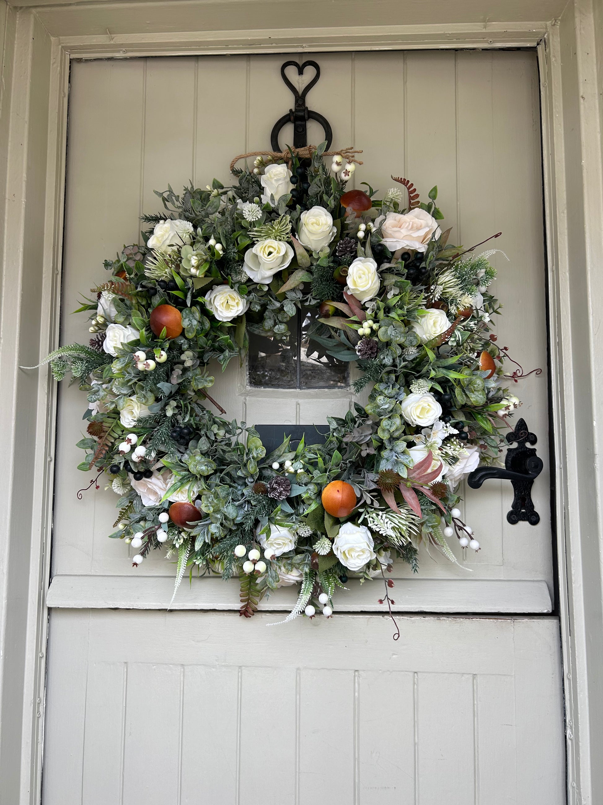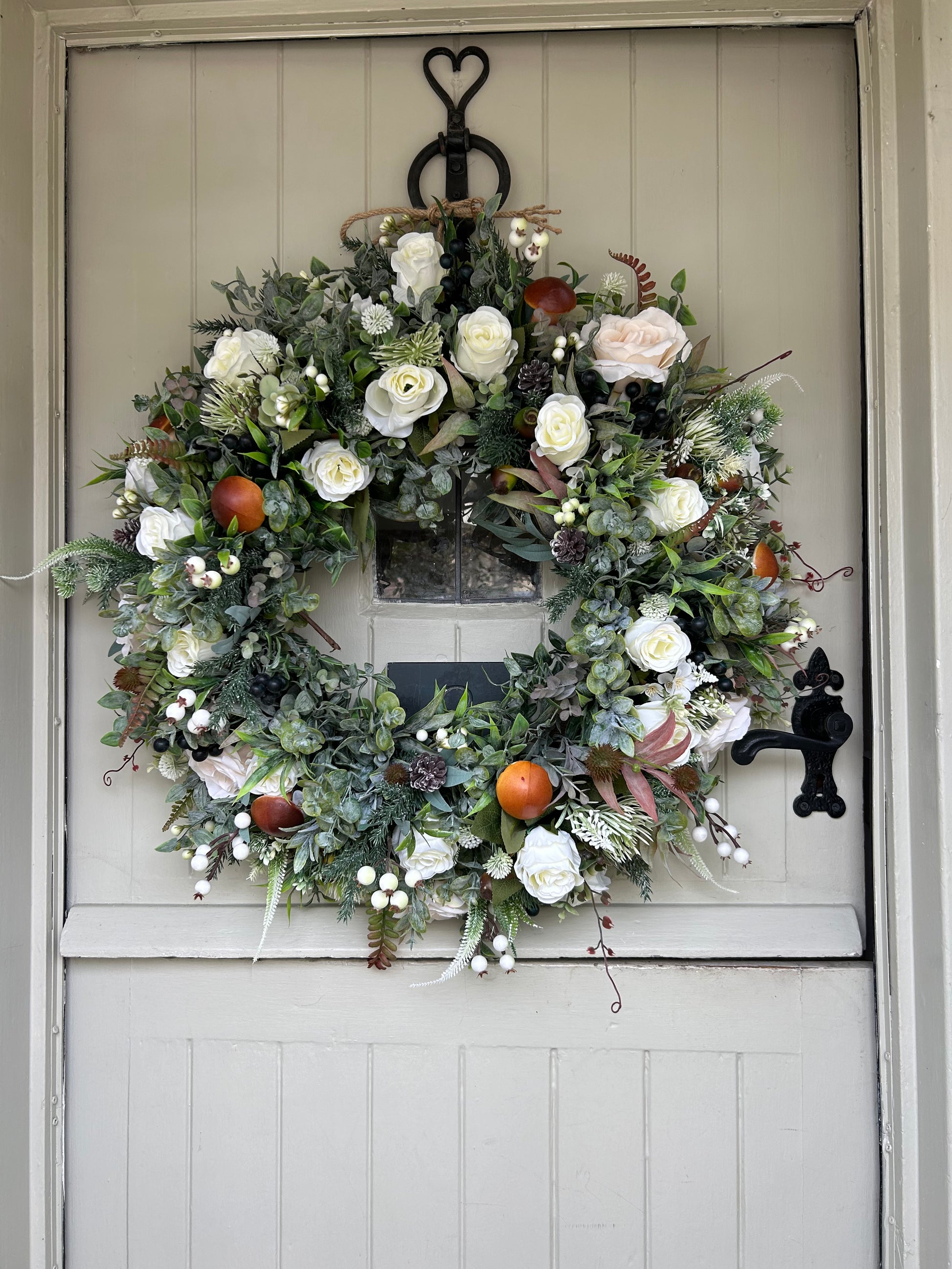 Our “ASHLEY” wreath is the perfect way to add warmth to your home decor. Crafted with rustic autumn tones including luxury berries and a large velvet pumpkin which can be removed and can be used all winter, this wreath is sure to make a statement. Add a touch of autumn to your home with this beautiful artificial wreath.