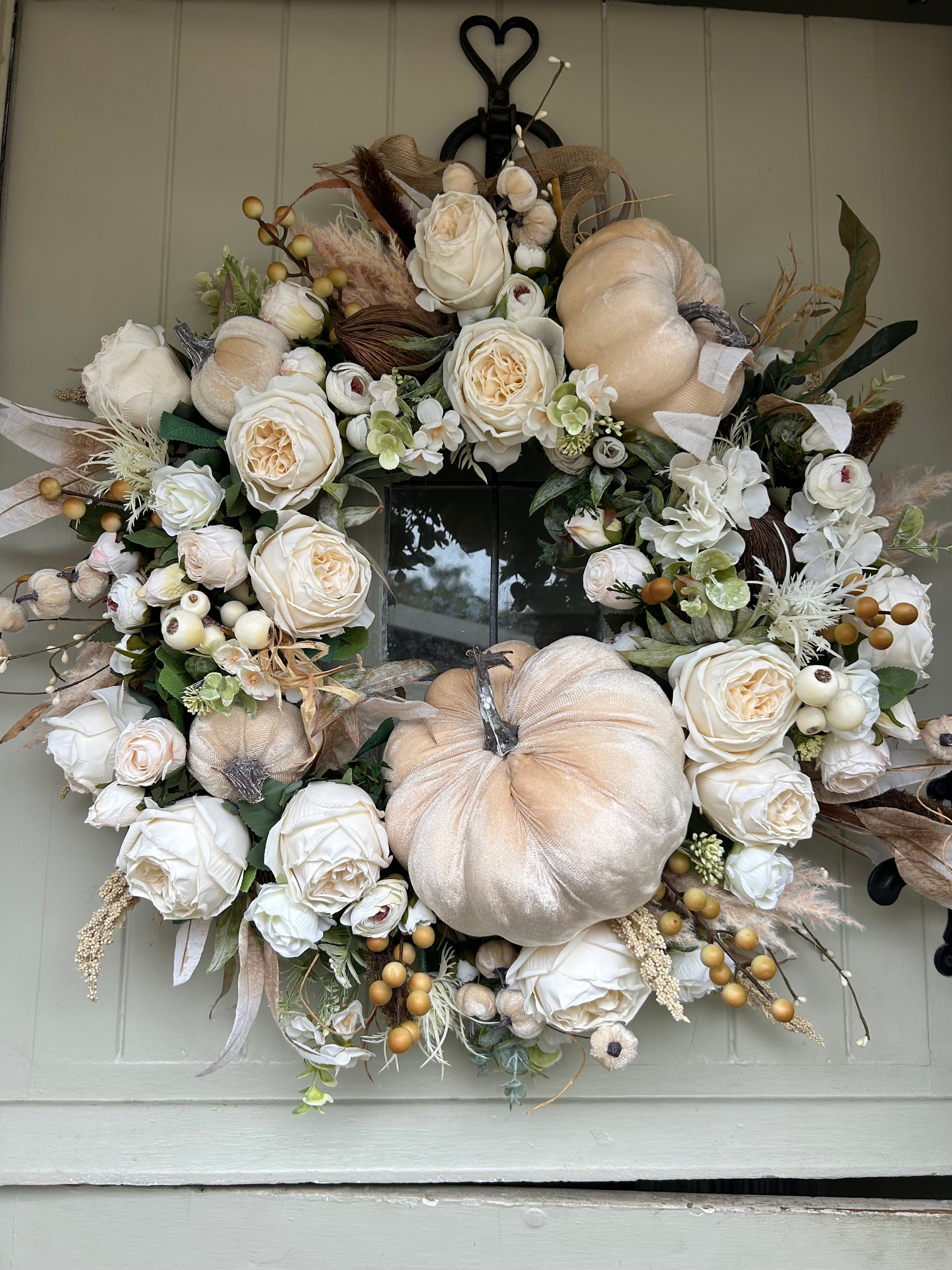 Introducing “Barley” a sophisticated winter bloom artificial wreath. Crafted with roses plus dry touch roses and weather-protected, ensuring a beautiful display that will last for years. Plus, free shipping with purchase. Add a touch of elegance and beauty to your home.