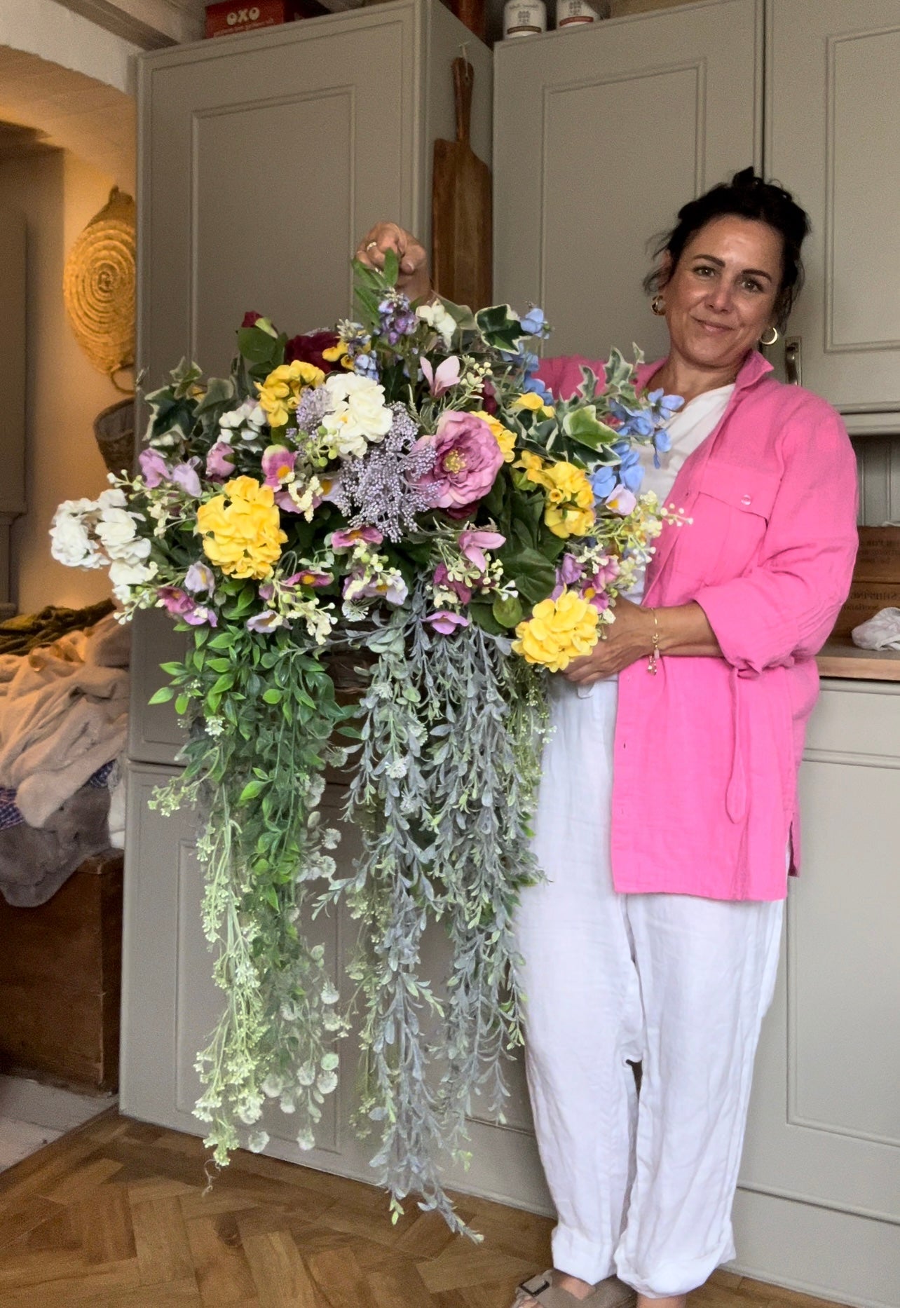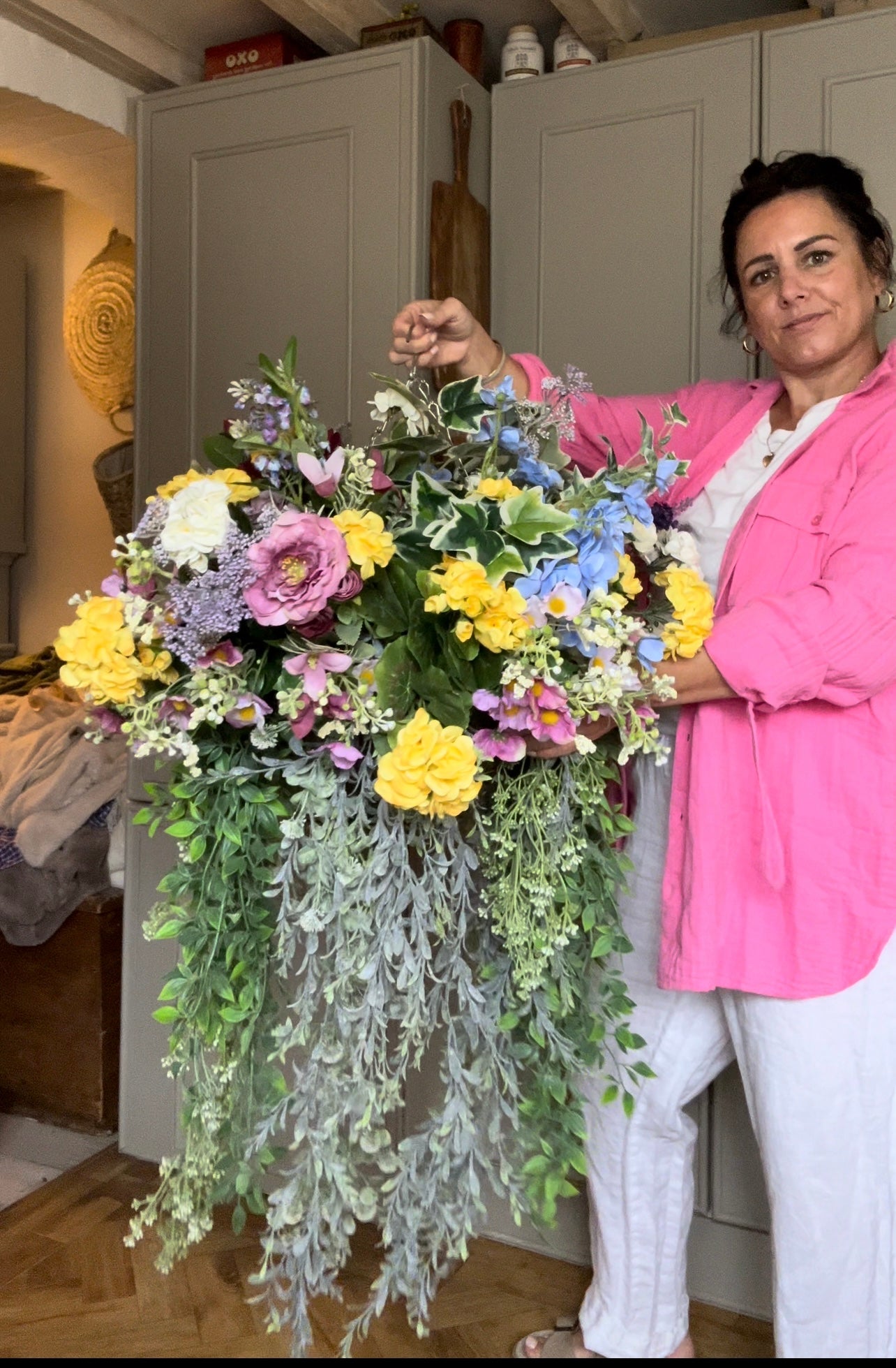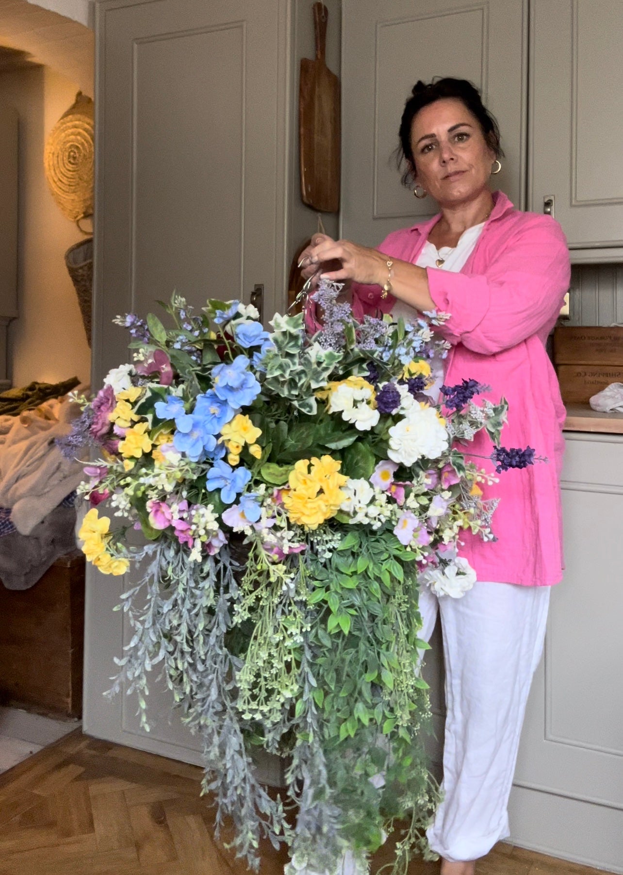 Our Luxury Artificial Hanging Basket is perfect for adding a touch of natural beauty to your indoor or outdoor space. Made with premium materials for a realistic look, this basket features an abundance of realistic flowers and greenery – no maintenance required! Shipping is free and included in the price.
