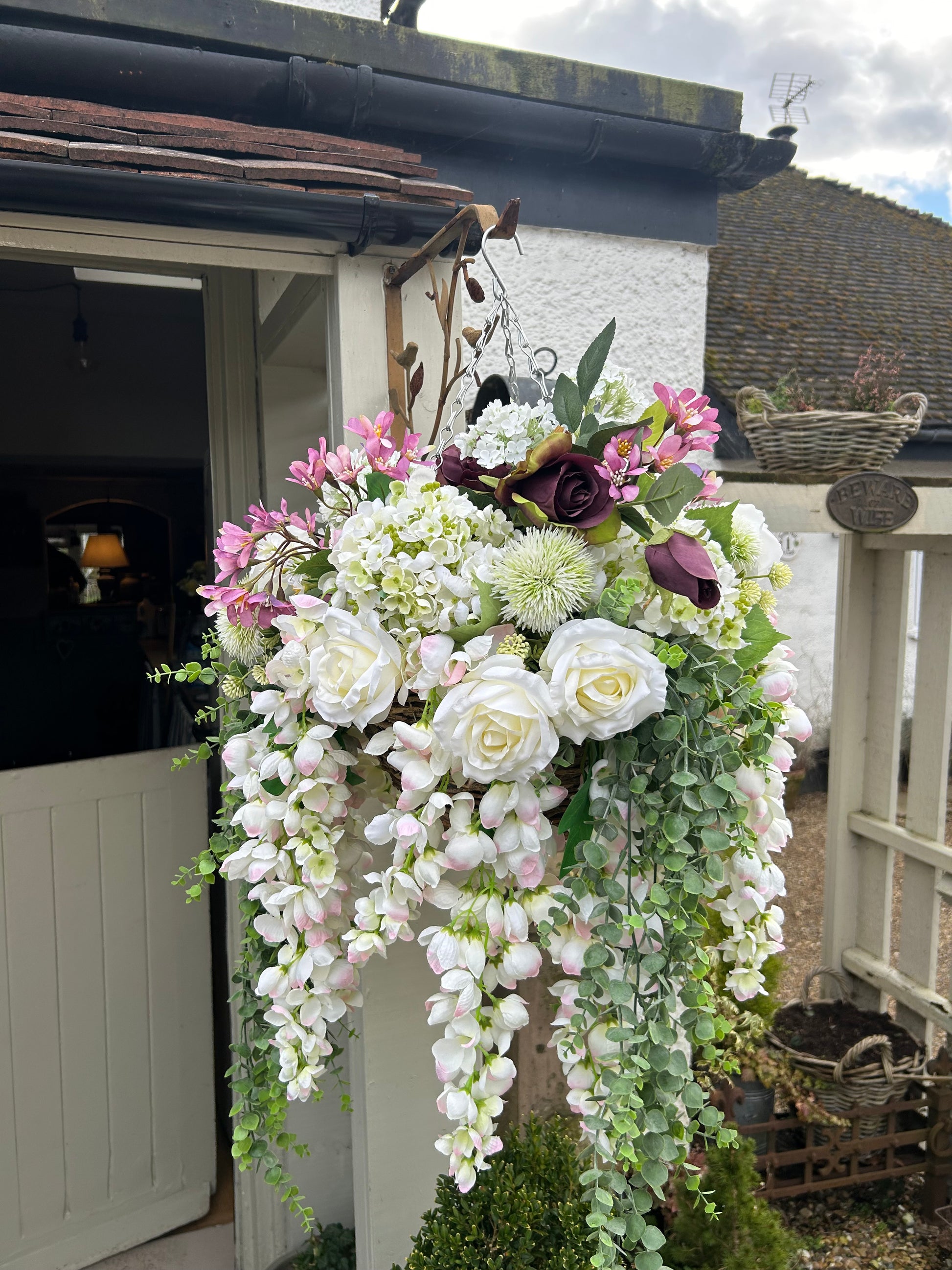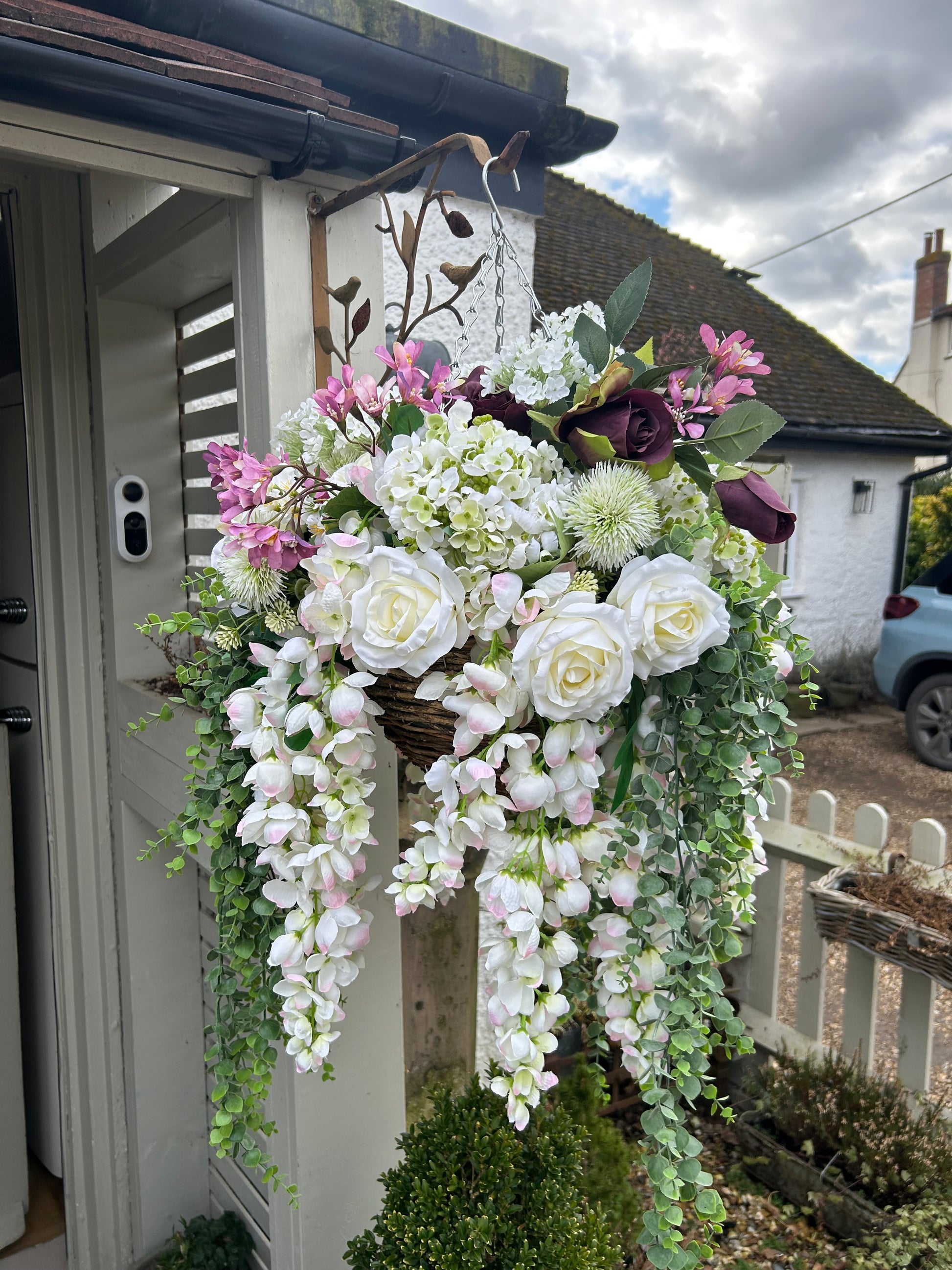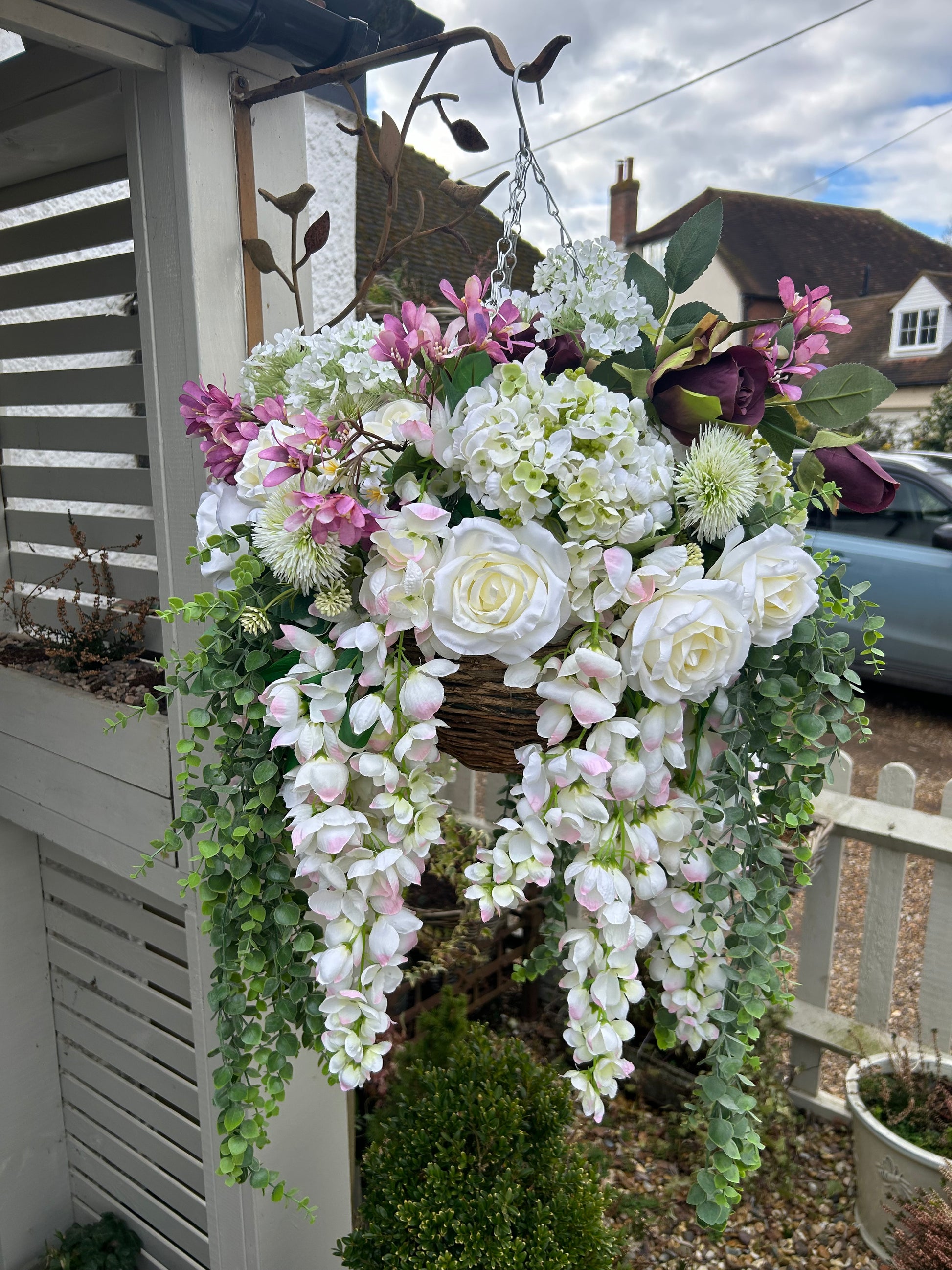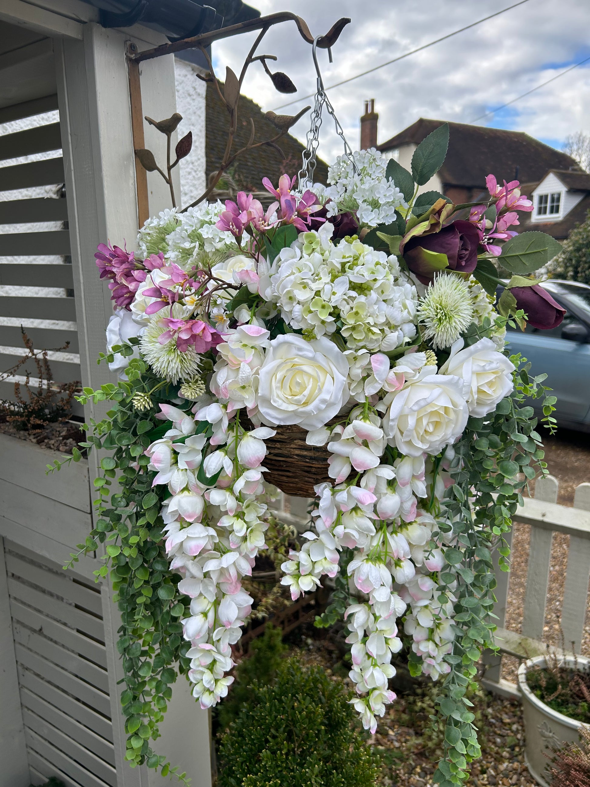 Our Luxury Artificial Hanging Basket is perfect for adding a touch of natural beauty to your indoor or outdoor space. Made with premium materials for a realistic look, this basket features an abundance of realistic flowers and greenery – no maintenance required! Shipping is free and included in the price.