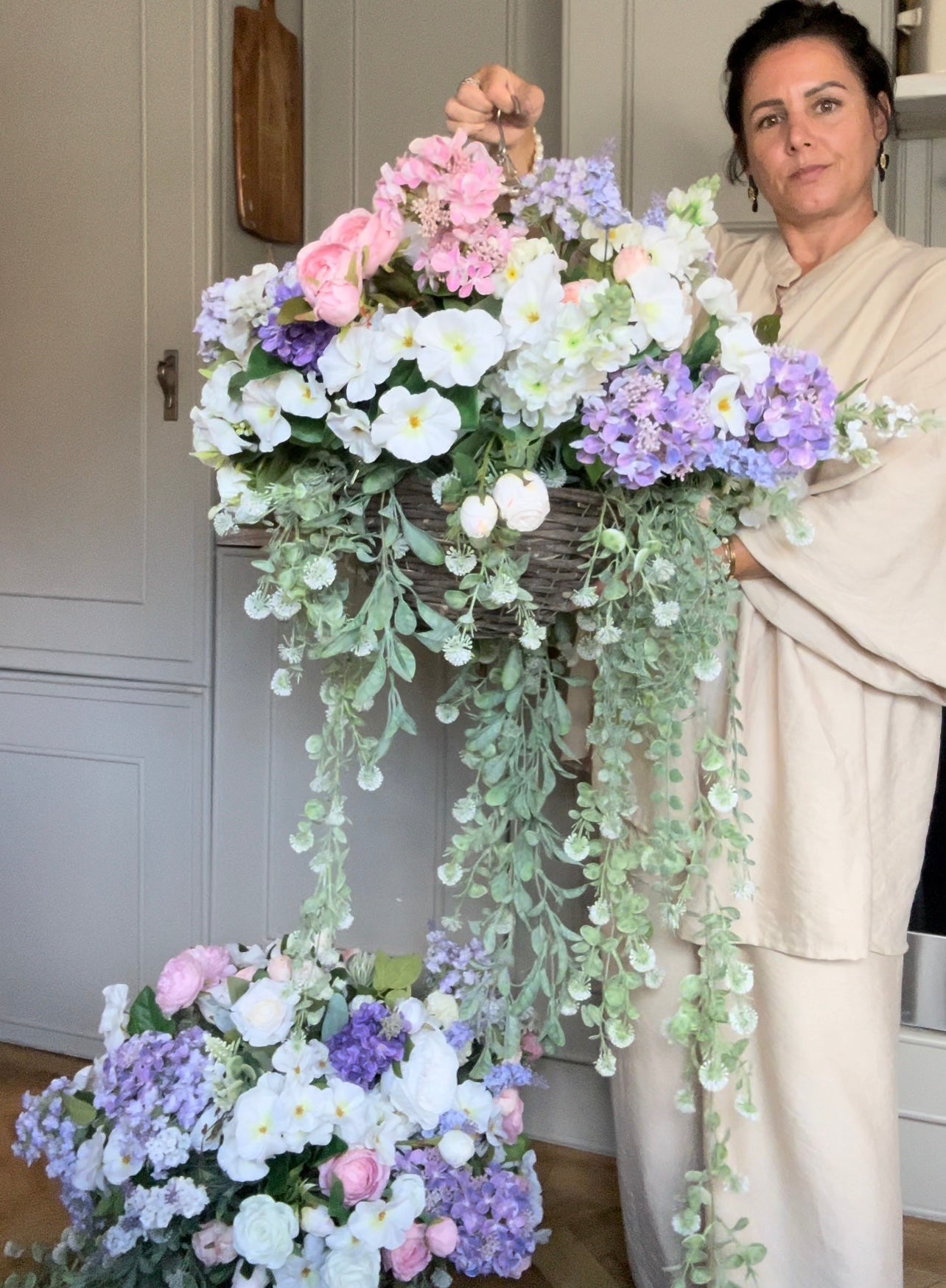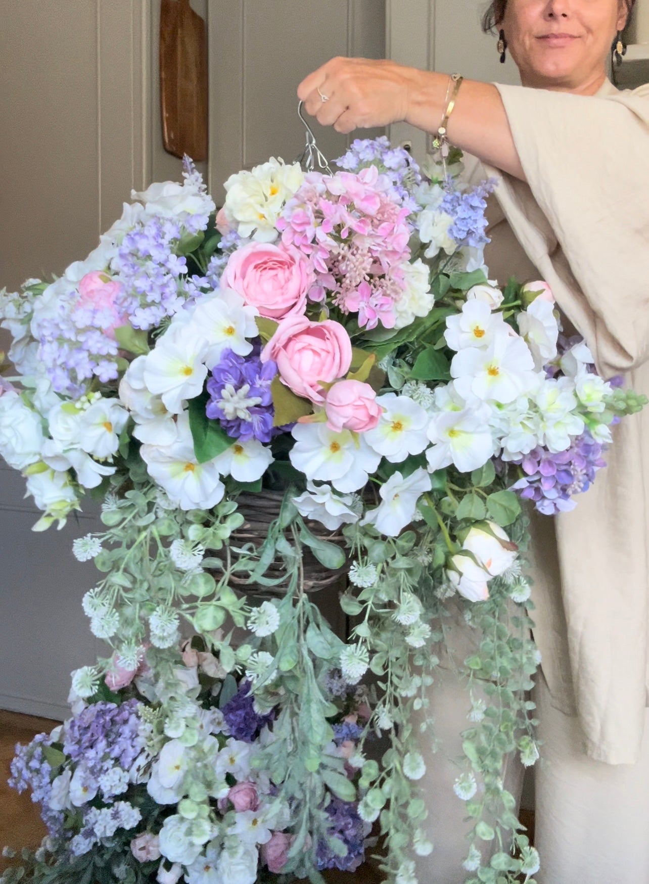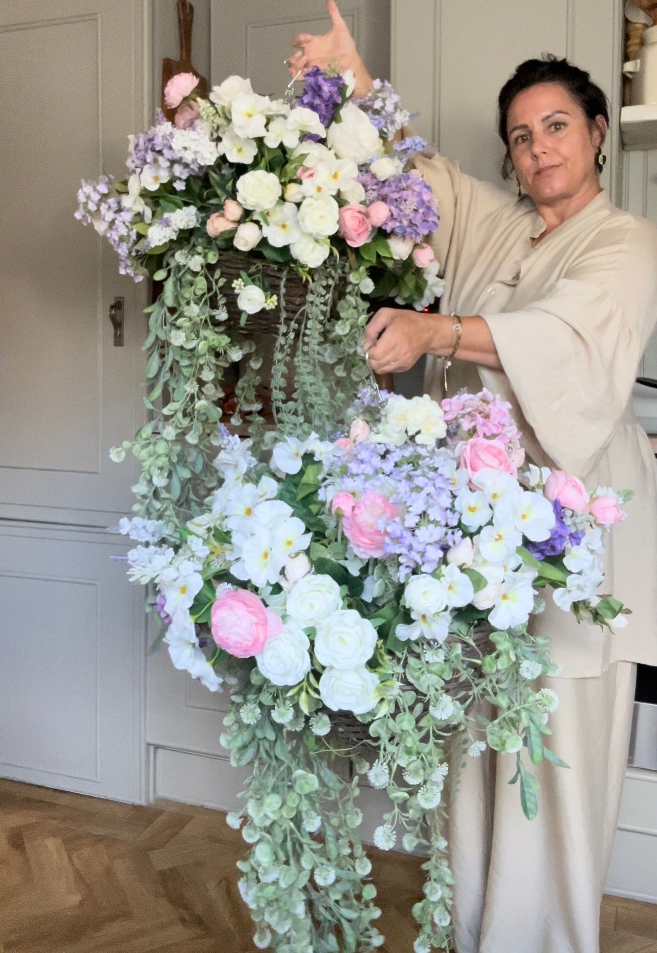 Our Luxury Artificial Hanging Basket is perfect for adding a touch of natural beauty to your indoor or outdoor space. Made with premium materials for a realistic look, this basket features an abundance of realistic flowers and greenery – no maintenance required! Shipping is free and included in the price.