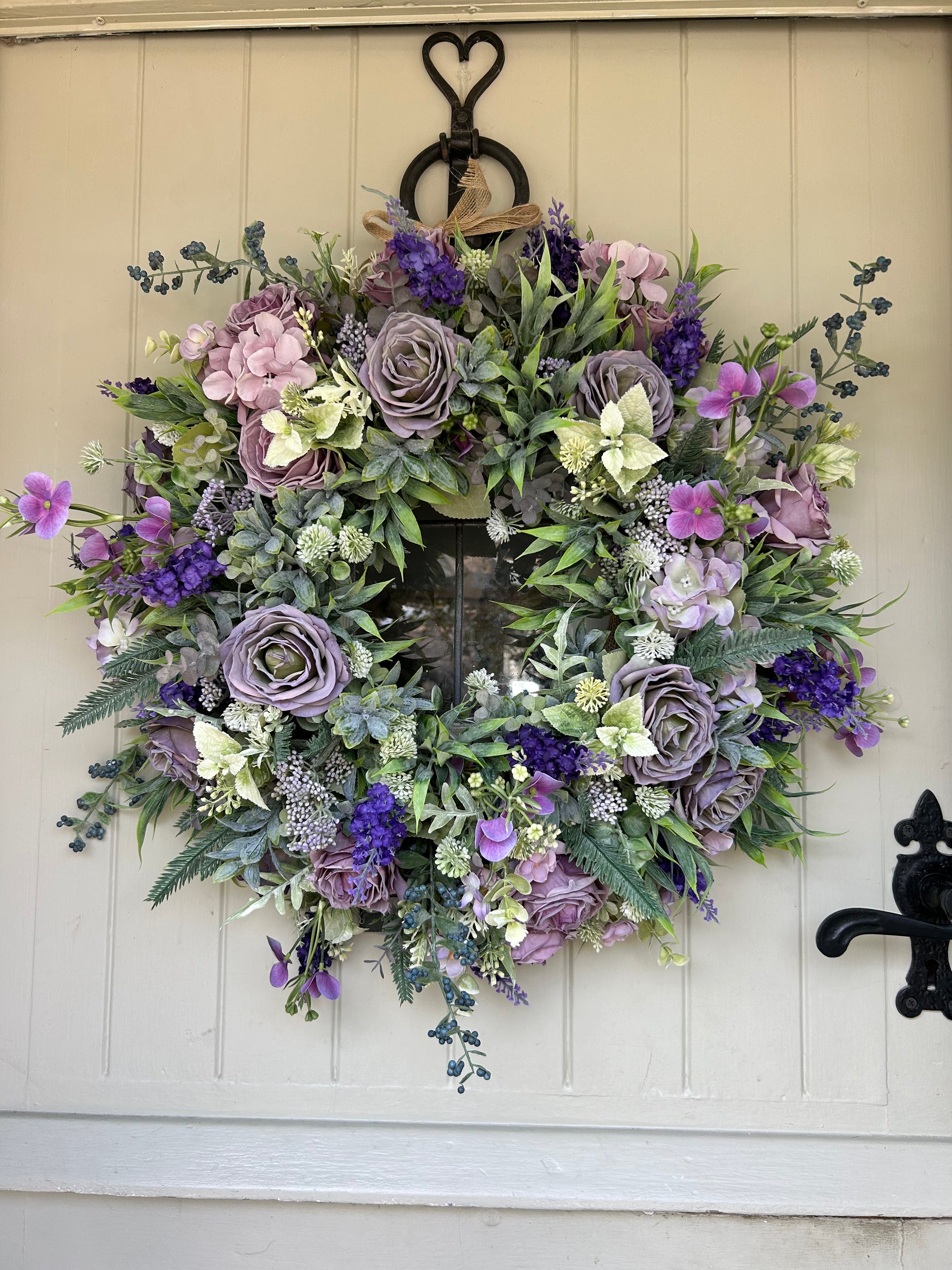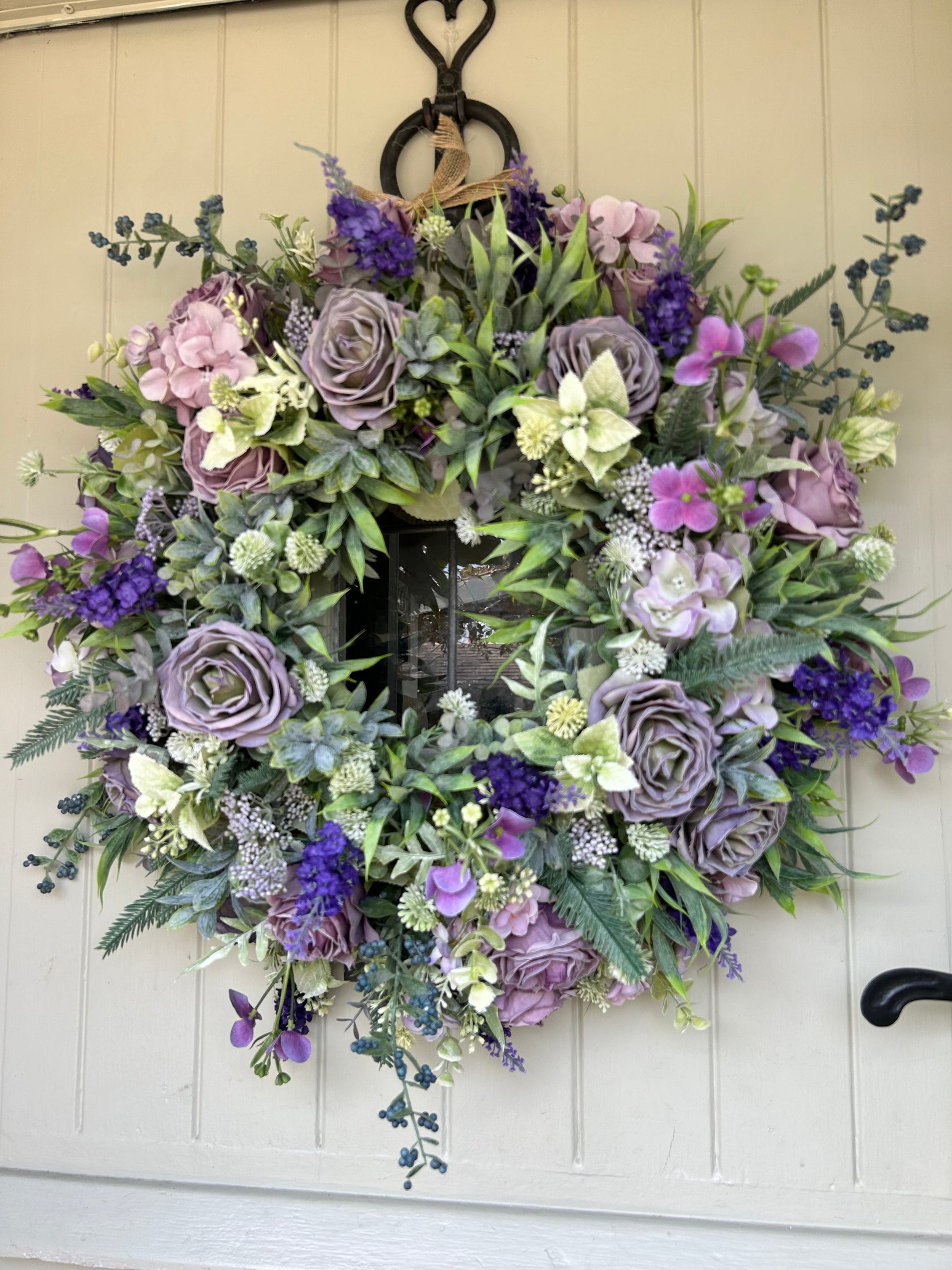 Introducing “kacey” a sophisticated full bloom artificial wreath. Crafted with hydrangea flowers dry touch roses and rananculus this wreath is chunky, lush, and weather-protected, ensuring a beautiful display that will last for years. Plus, free shipping with purchase. Add a touch of elegance and beauty to your home.