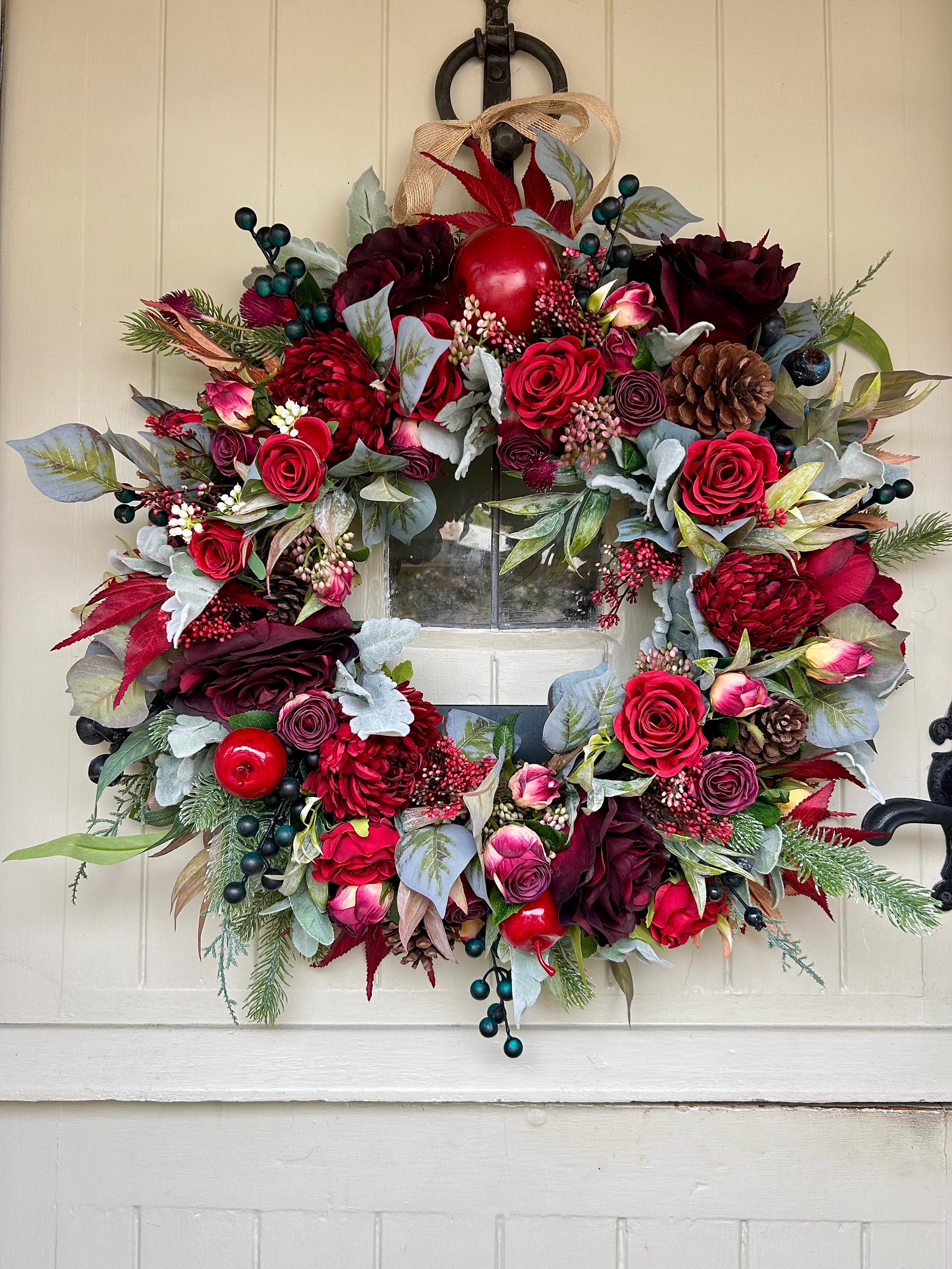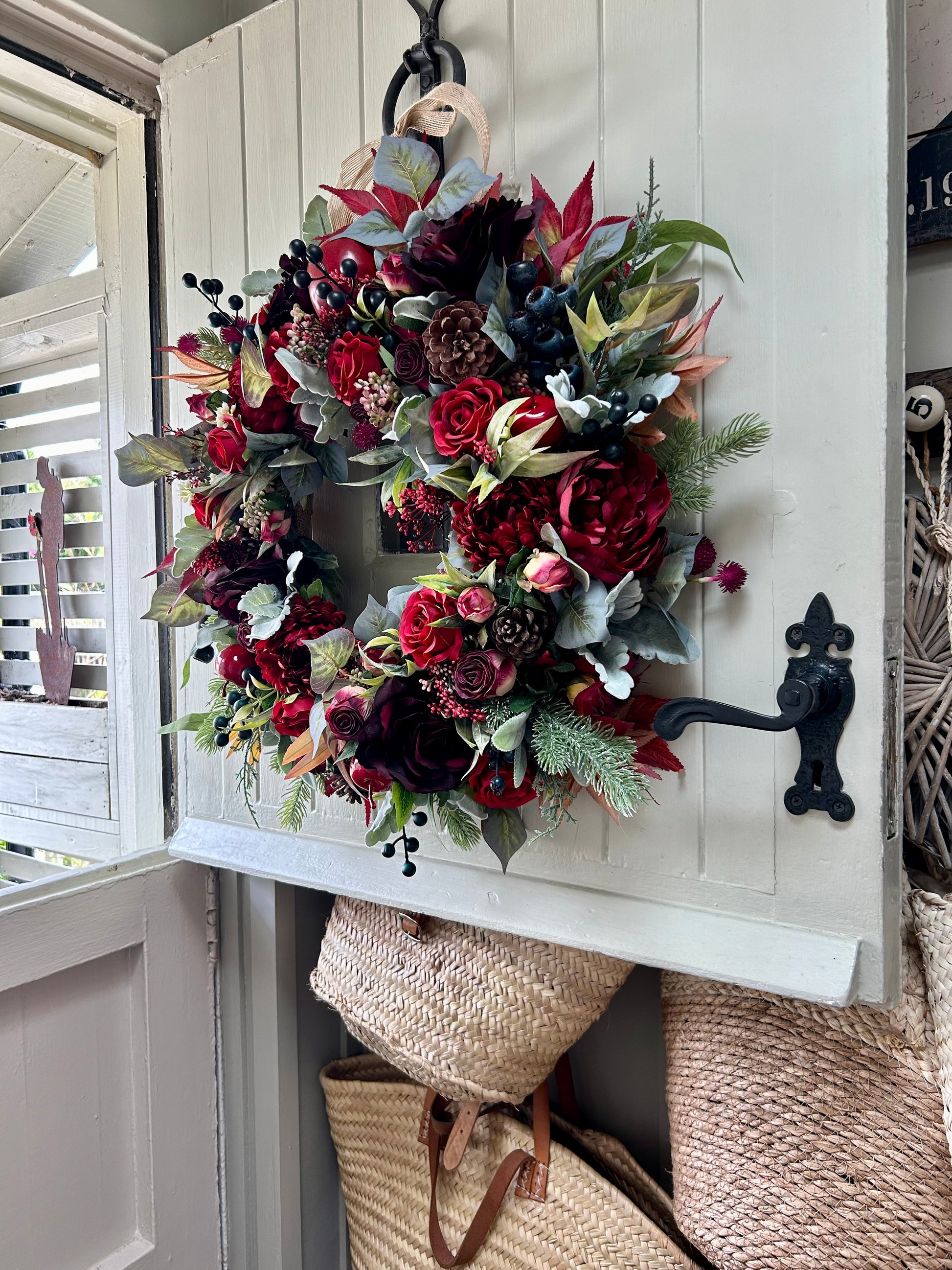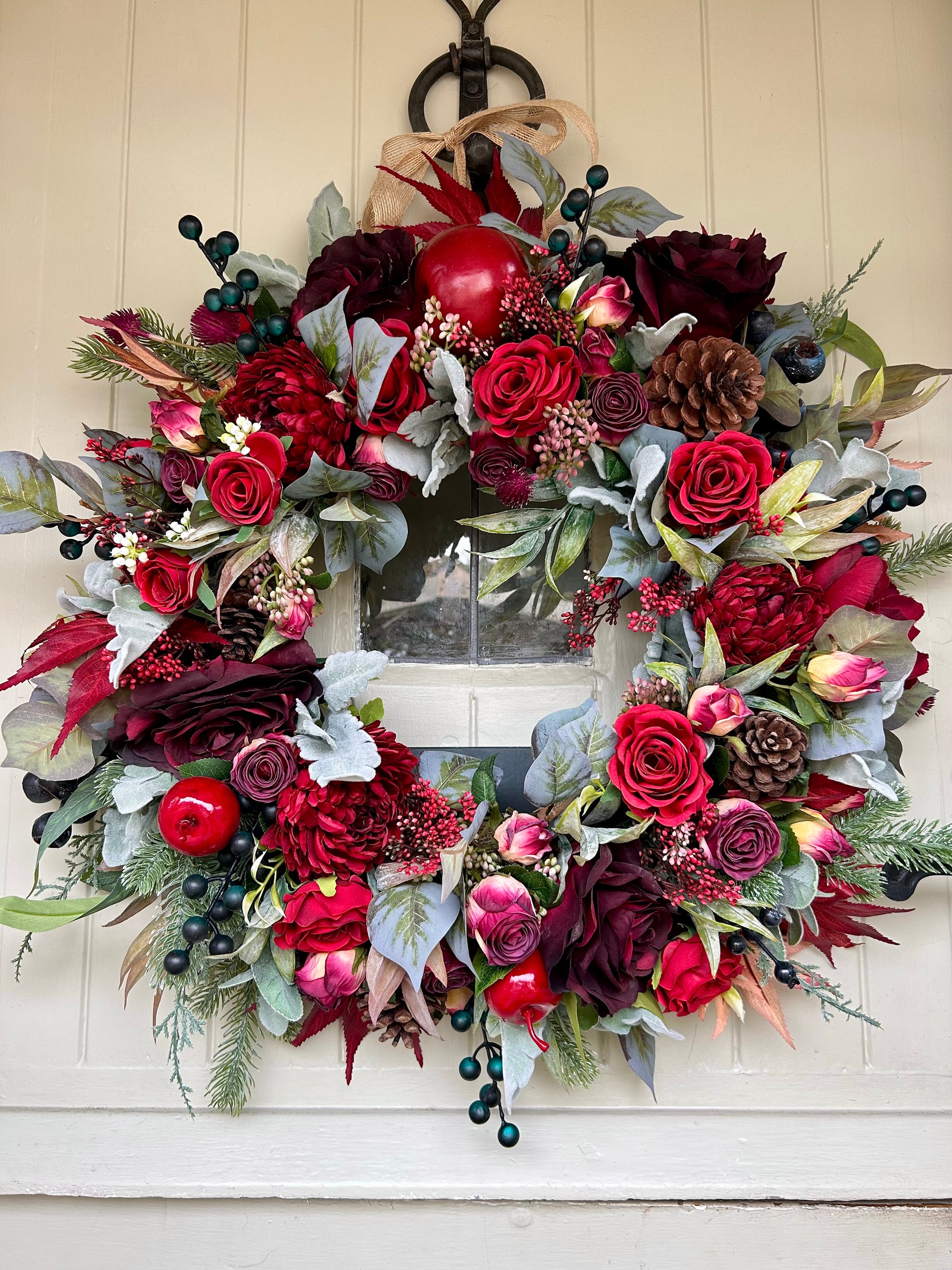 Introducing “KITTY” a sophisticated winter bloom artificial wreath. Crafted with roses plus dry touch roses and weather-protected, ensuring a beautiful display that will last for years. Plus, free shipping with purchase. Add a touch of elegance and beauty to your home.