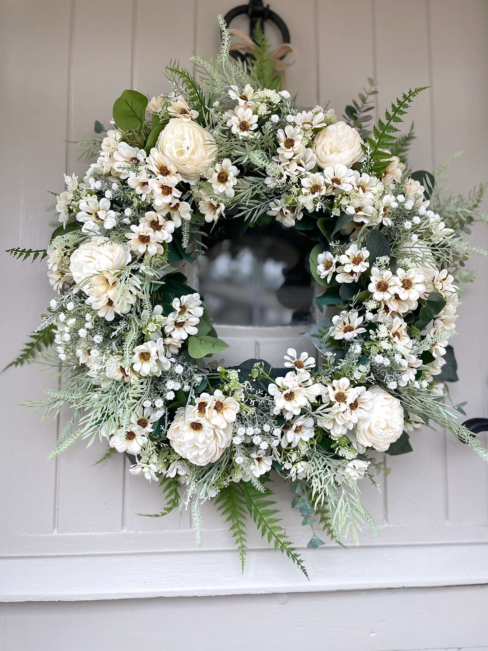 Add a touch of natural beauty to your home with the LACEY Daisy Faux Wreath. This lovely artificial flower wreath is crafted with meticulous attention to detail and is made from high-quality materials for a realistic look that will last for years. Enjoy a lifetime of elegant floral décor with no maintenance required.