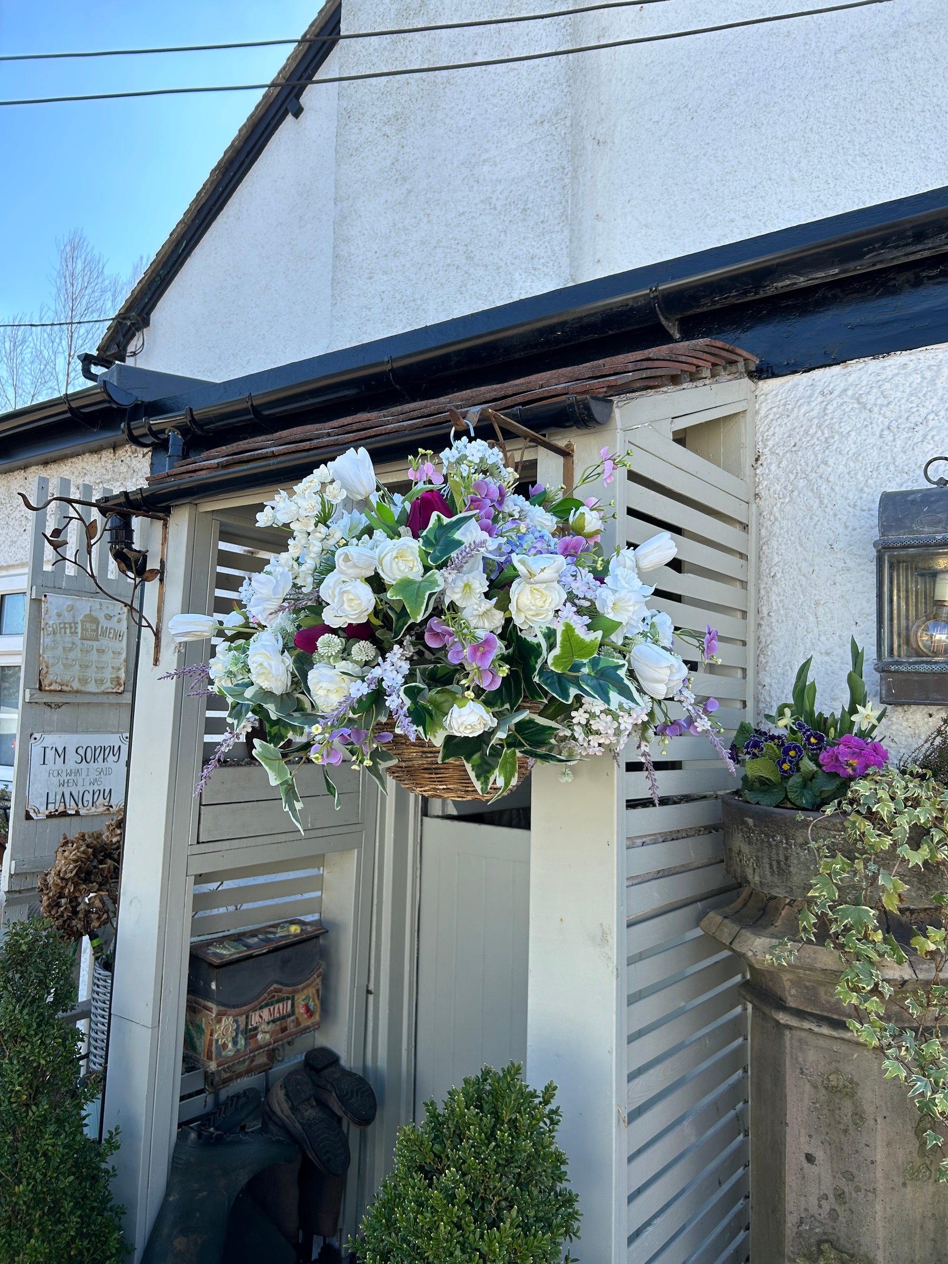 This Pink flower and Ivy Artificial Hanging Basket brings a luxurious, natural touch to your home or garden. Expertly crafted using realistic, roses and ivy, it makes a stunning statement piece. Best of all, it requires no maintenance and looks breathtakingly beautiful year-round.