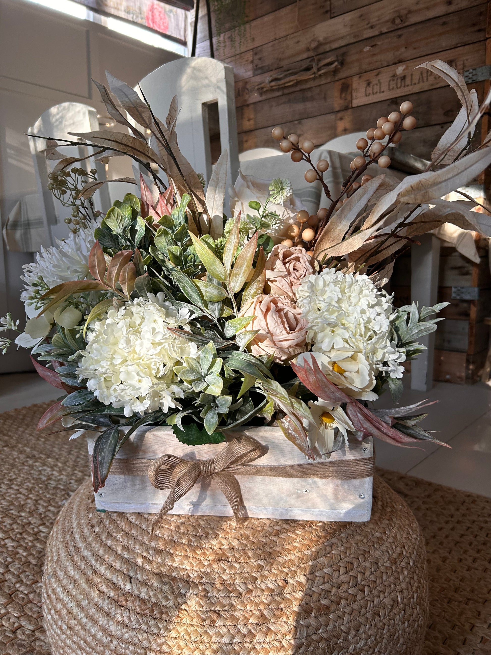 This Window sill (TROUGH FLOWER BOX) is crafted with sturdy wooden construction, made using reclaimed wood with a rustic finish to add an eye-catching display to your home. Our overlays of silk flowers will add vibrant colour and a lively atmosphere to any room.