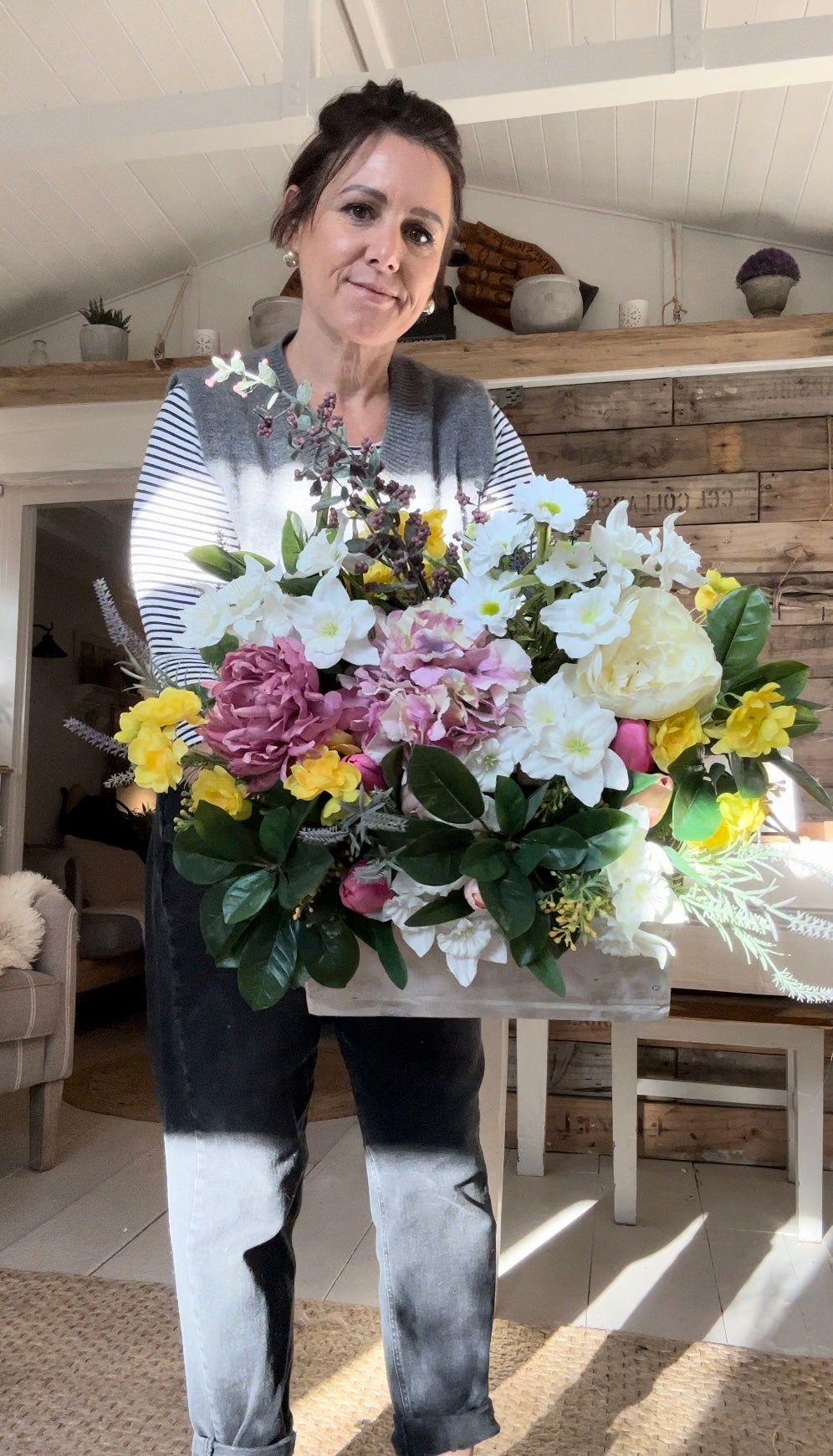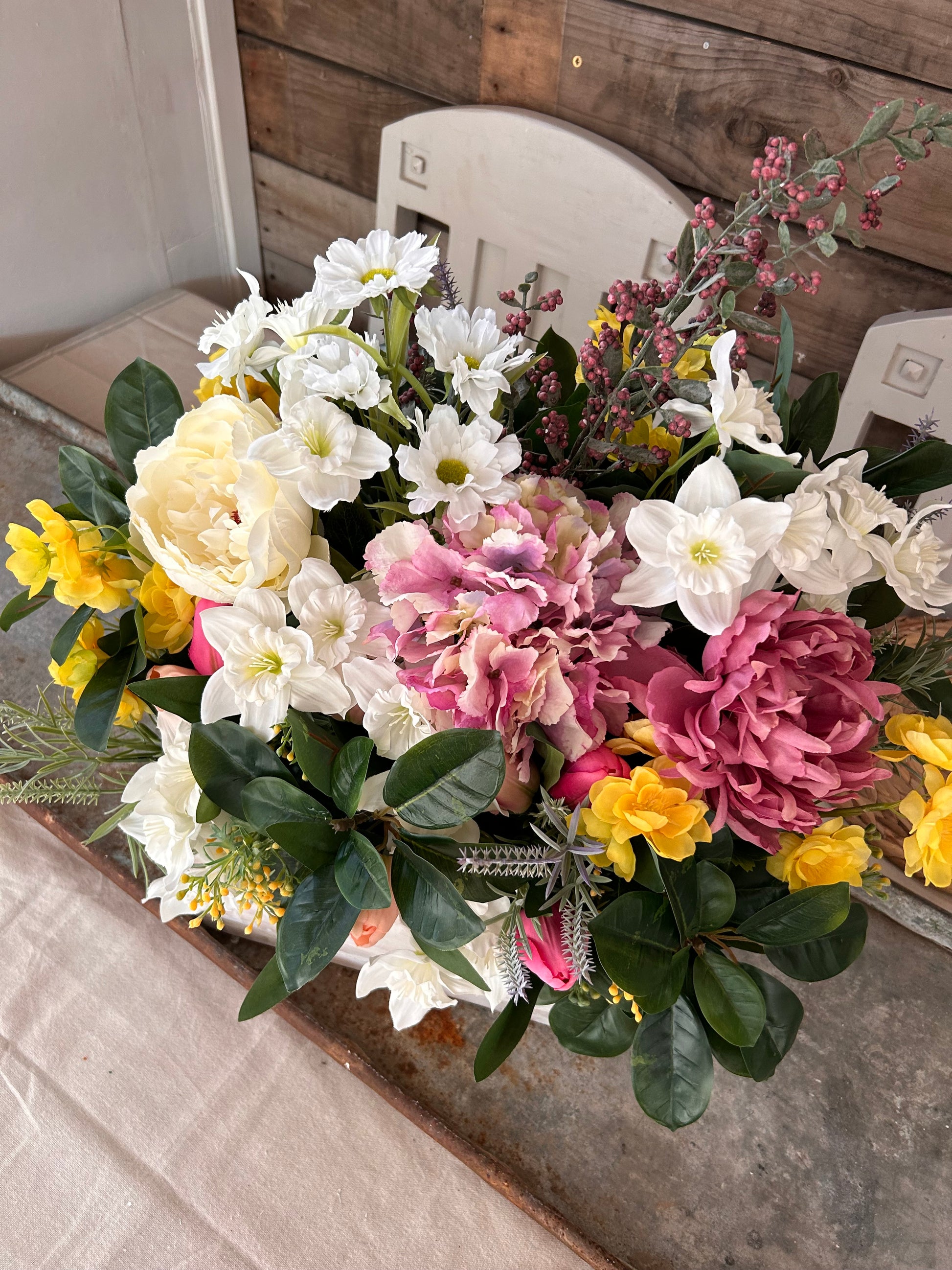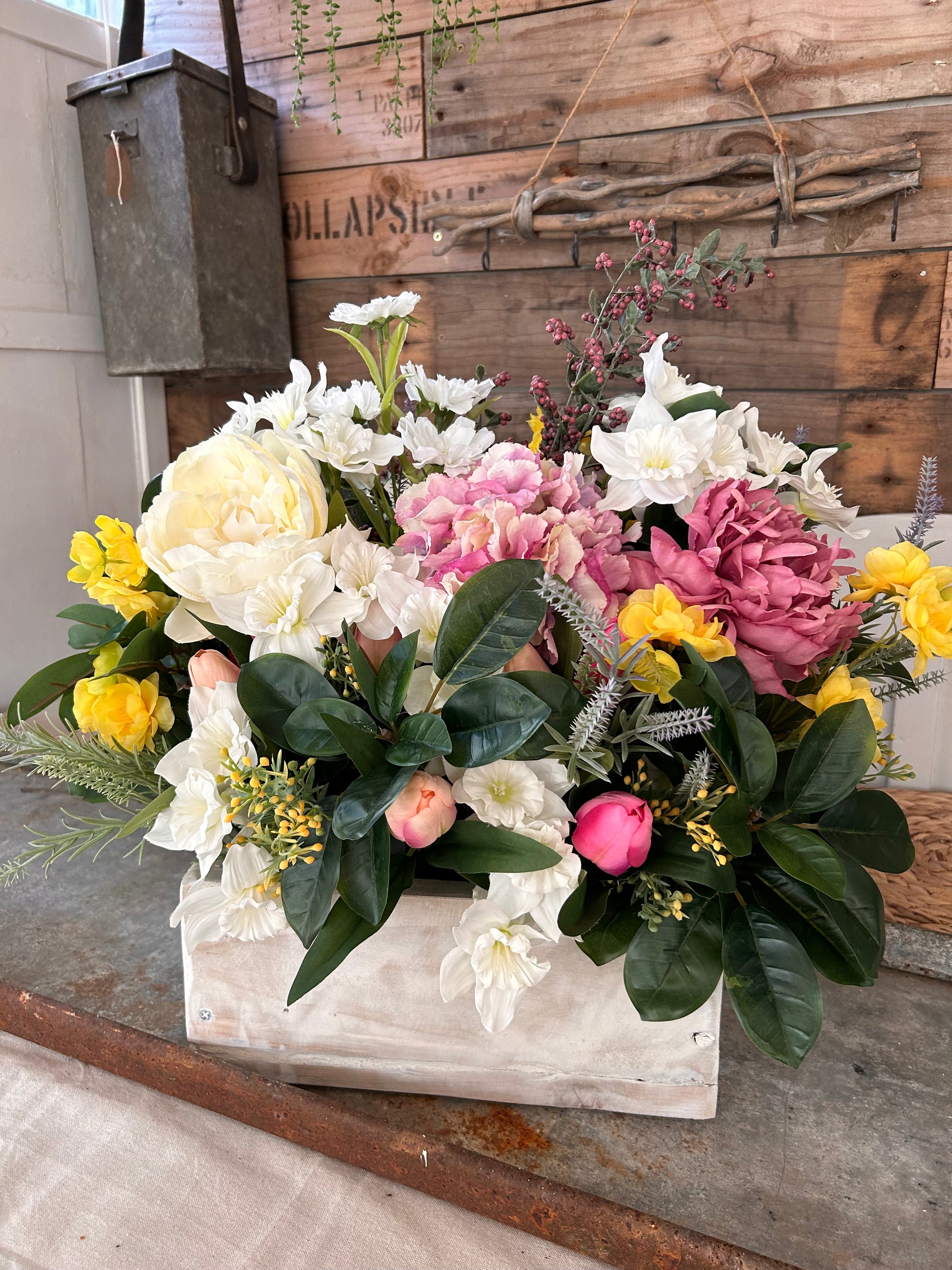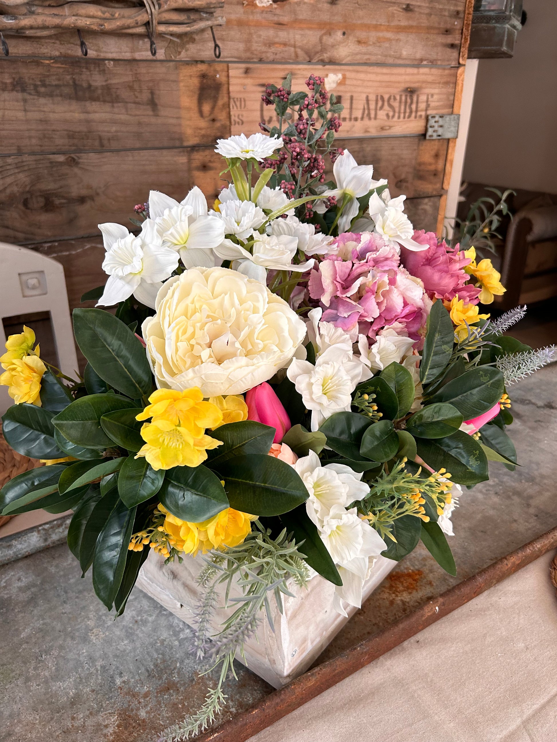 This Window sill (TROUGH FLOWER BOX) is crafted with sturdy wooden construction, made using reclaimed wood with a rustic finish to add an eye-catching display to your home. Our overlays of silk flowers will add vibrant colour and a lively atmosphere to any room.