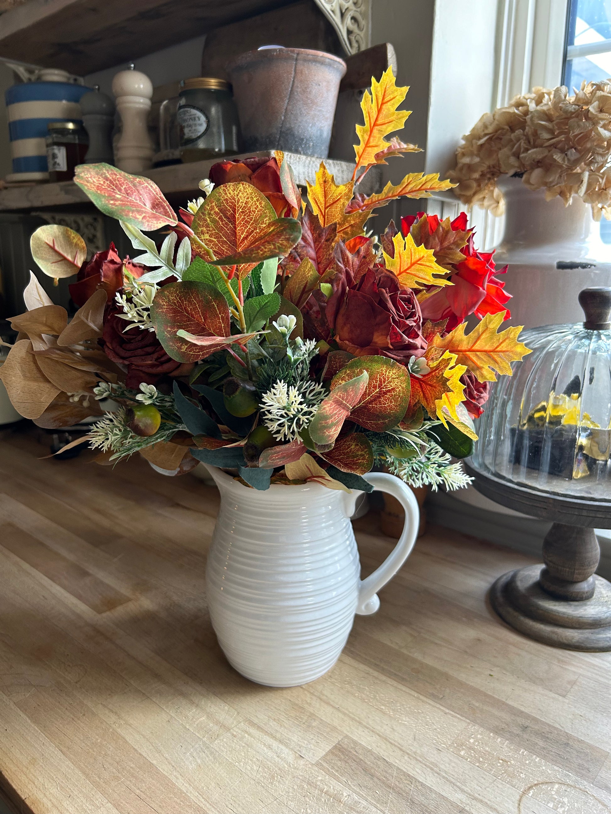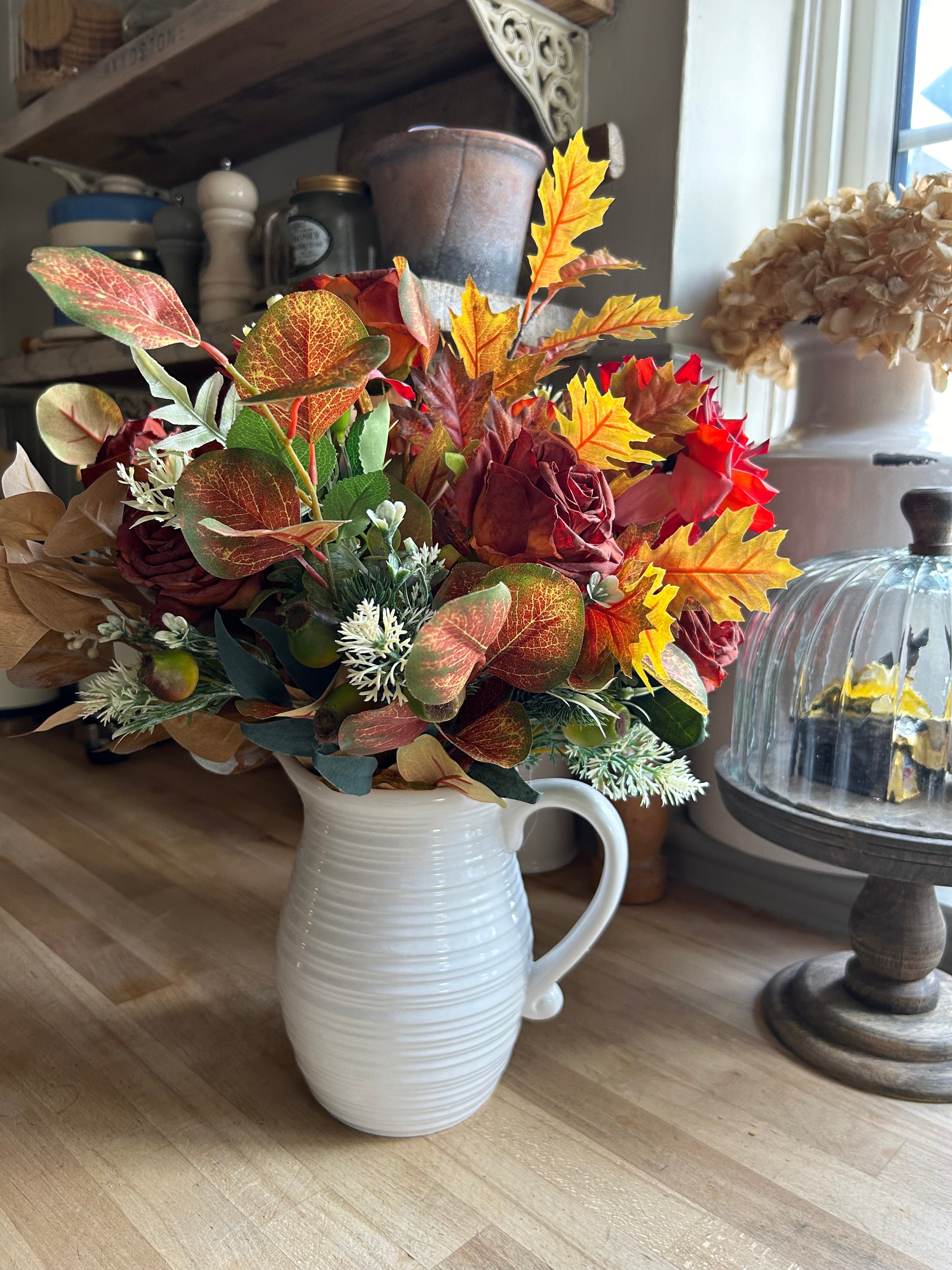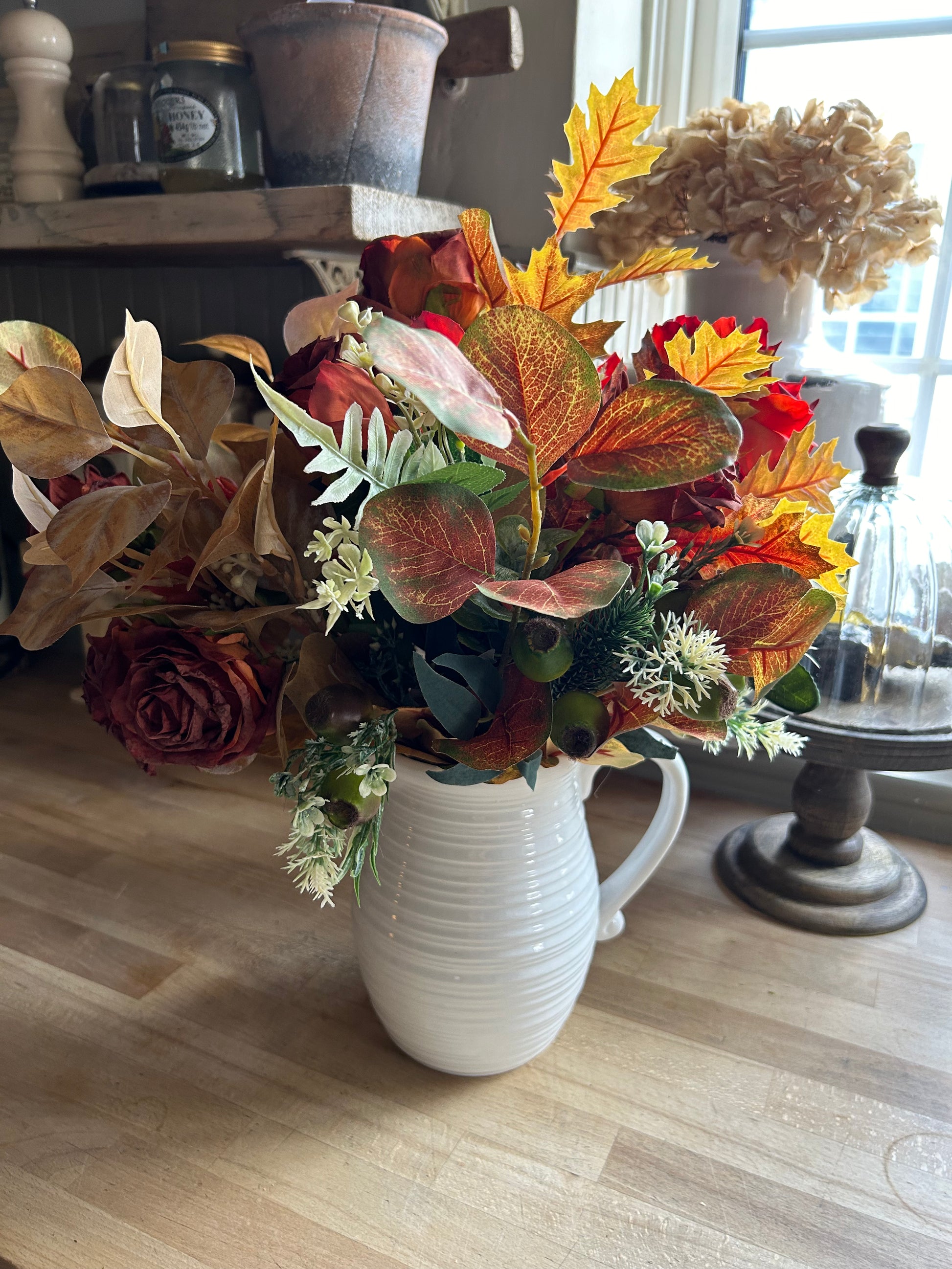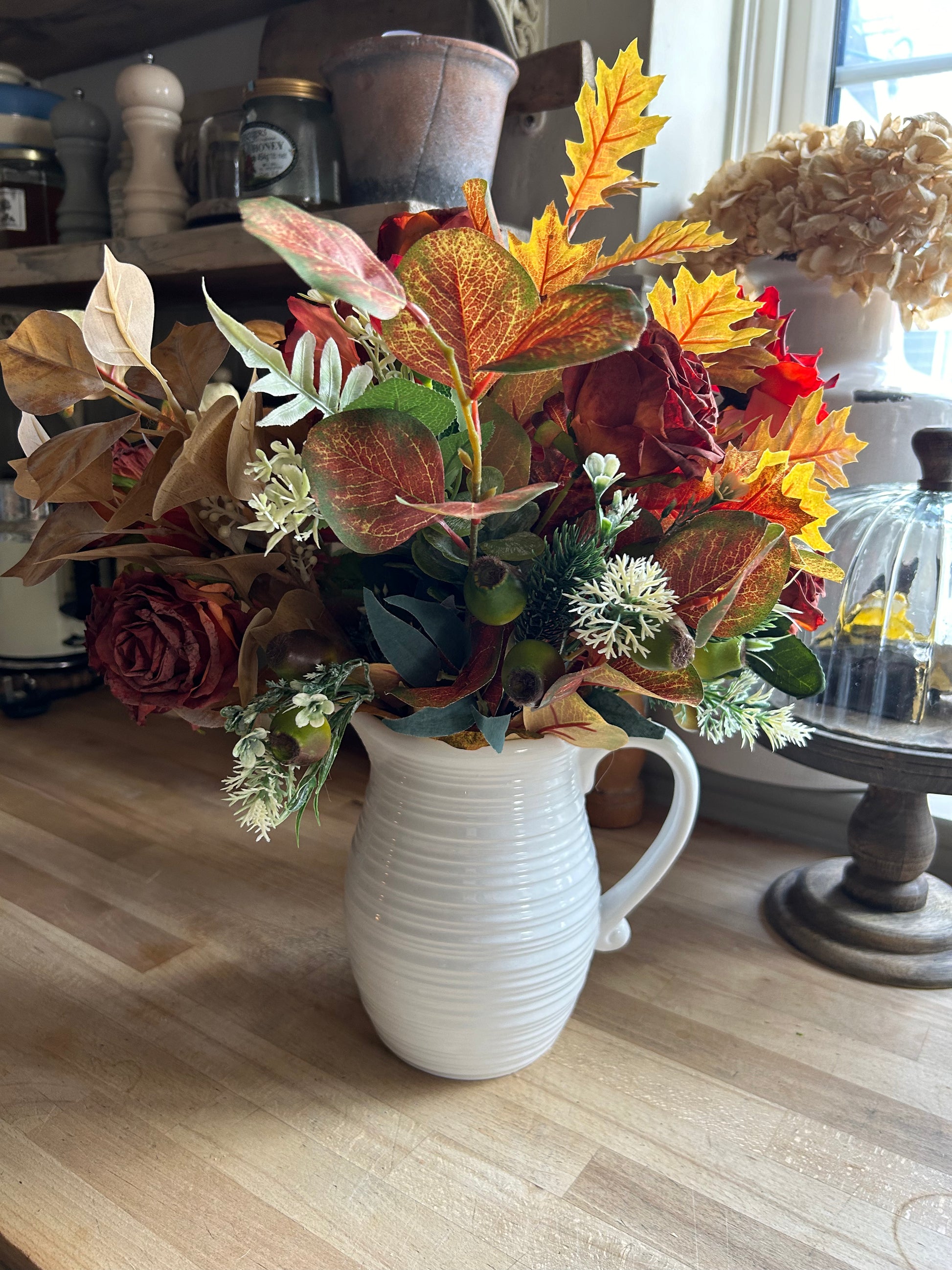 imcludes flowers and jug style vase as seen in picture