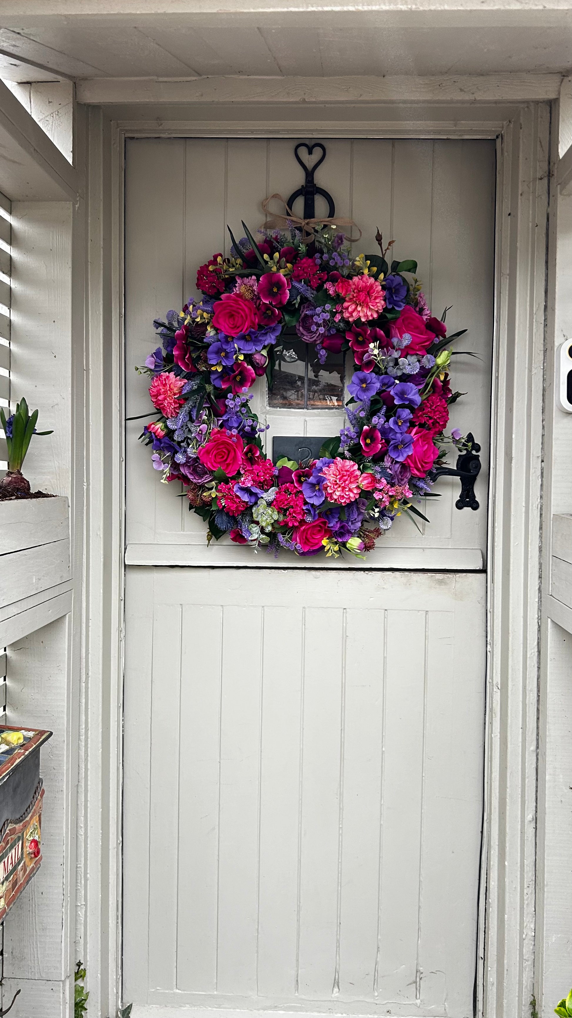 Introducing a sophisticated full bloom artificial wreath. Crafted with hydrangea flowers dry touch roses and rananculus this wreath is chunky, lush, and weather-protected, ensuring a beautiful display that will last for years. Plus, free shipping with purchase. Add a touch of elegance and beauty to your home.