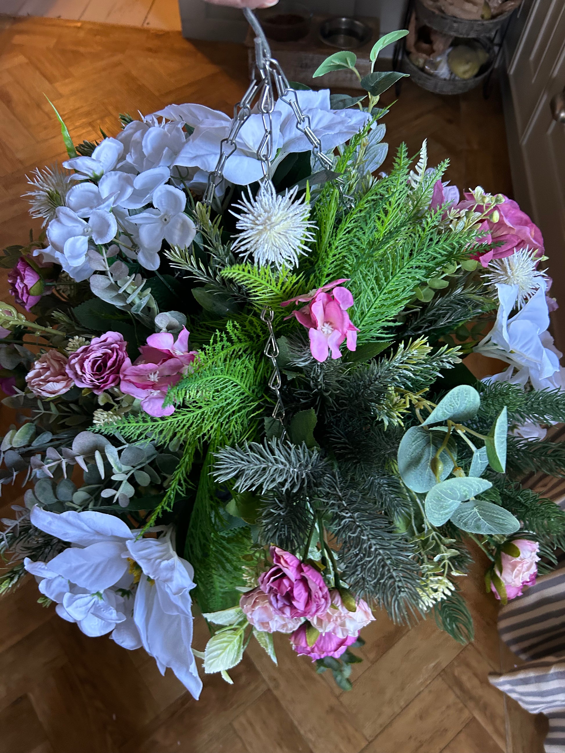 Our Luxury Artificial Hanging Basket is perfect for adding a touch of natural beauty to your indoor or outdoor space. Made with premium materials for a realistic look, this basket features an abundance of realistic flowers and greenery – no maintenance required! Shipping is free and included in the price.