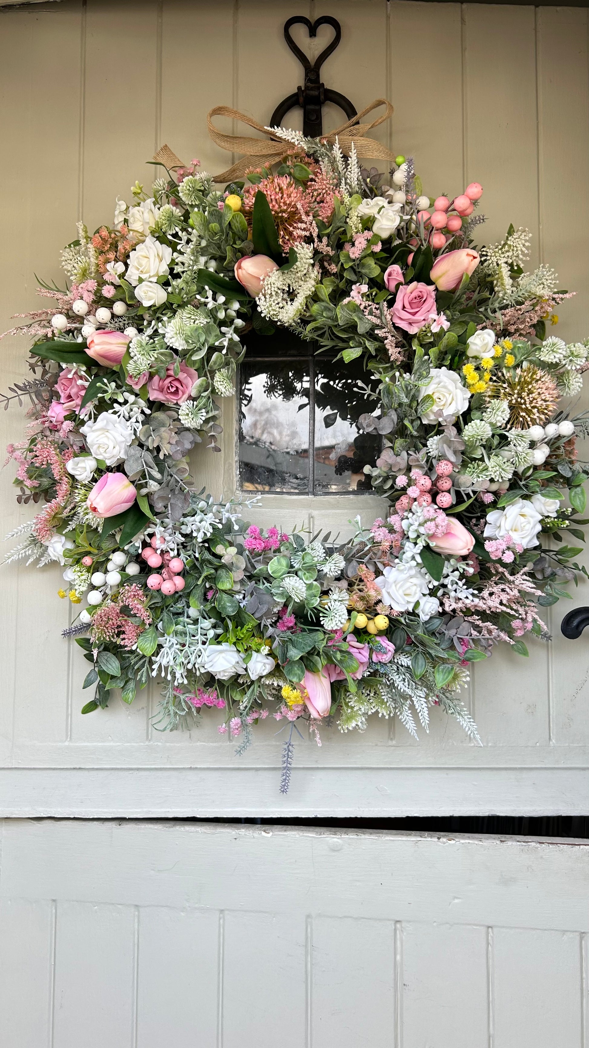 Add a touch of beauty to your home decor with this unique flower wreath that blooms all year round.The delightful spring summer flowers has to be the most prettiest display