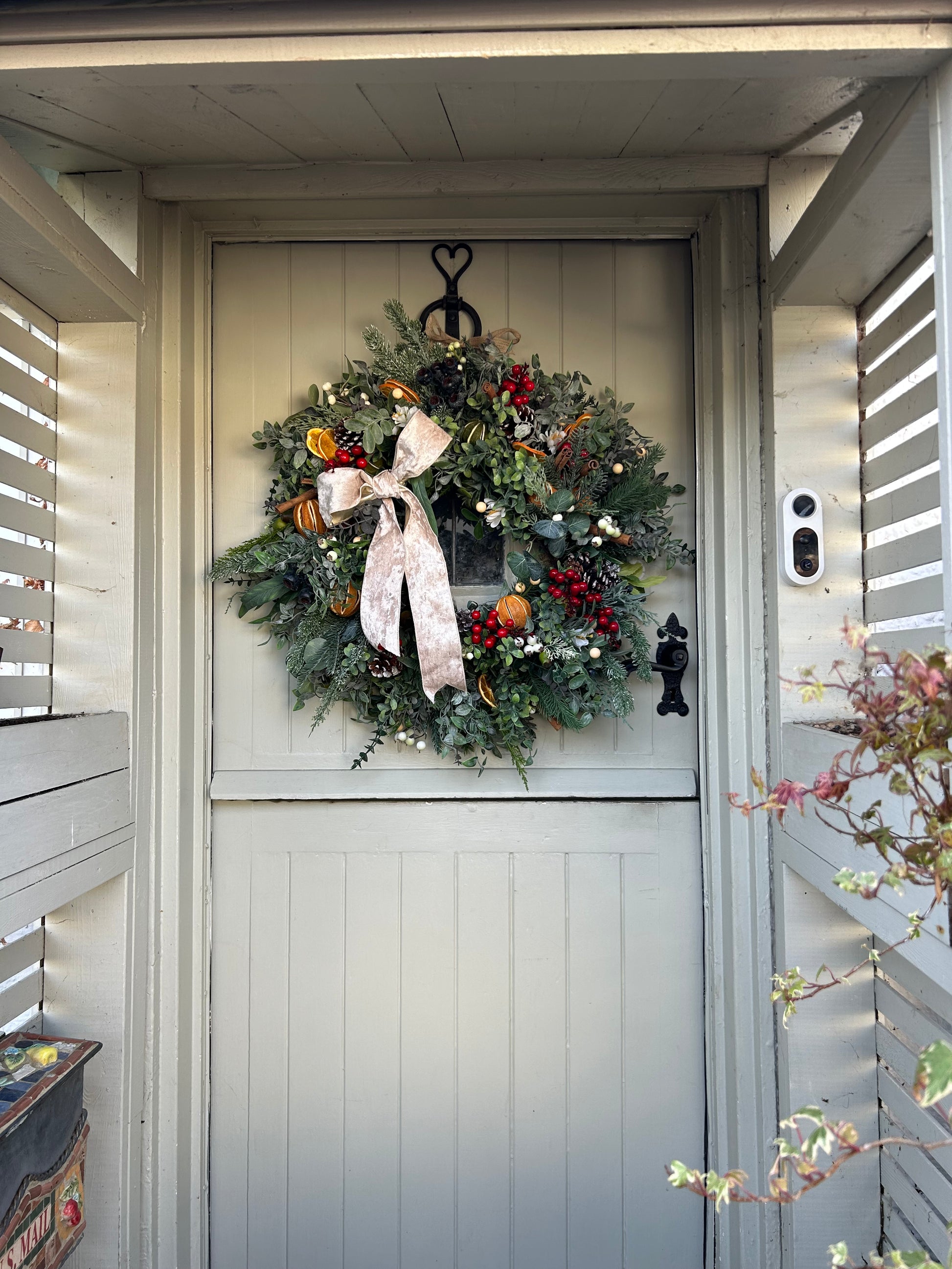 Our “NIAMPH” winter artificial wreath is designed to bring a touch of festive luxury to your holiday décor. Crafted from stunning winter Christmas foliage and dried artificial foliage, this wreath features a beautiful velvet bow that can be removed at your discretion. Enjoy free P&P and create a winter wonderland with our new forest wreath.