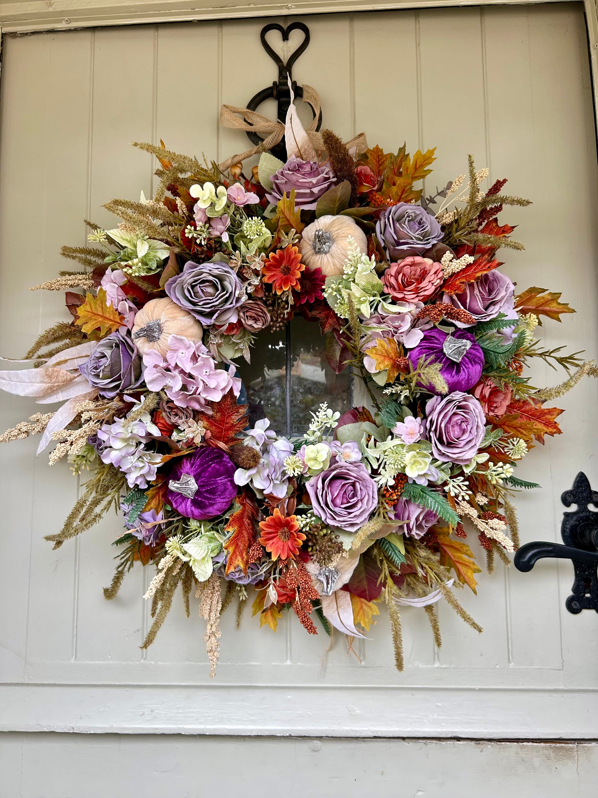Our “BERYL” wreath is the perfect way to add warmth to your home decor. Crafted with rustic autumn tones including luxury dry-touch roses, oranges, and reds, this wreath is sure to make a statement. Add a touch of autumn to your home with this beautiful artificial wreath.
