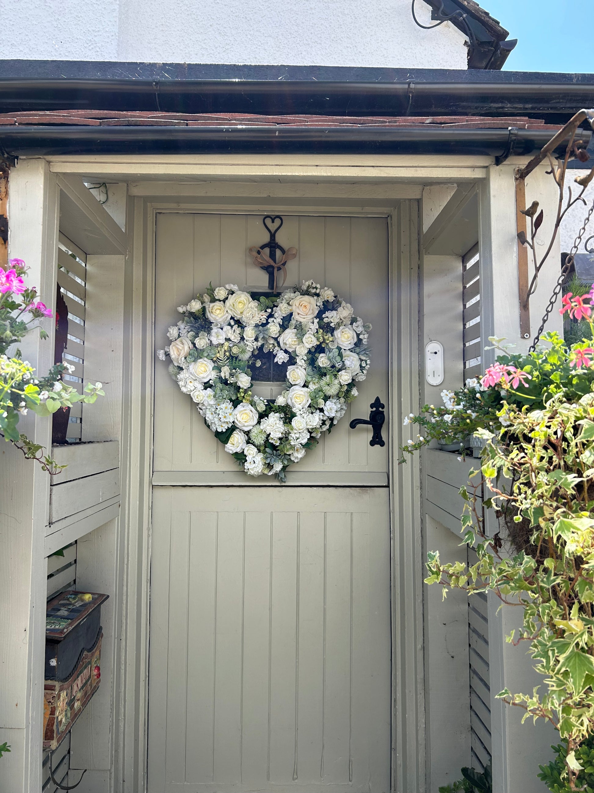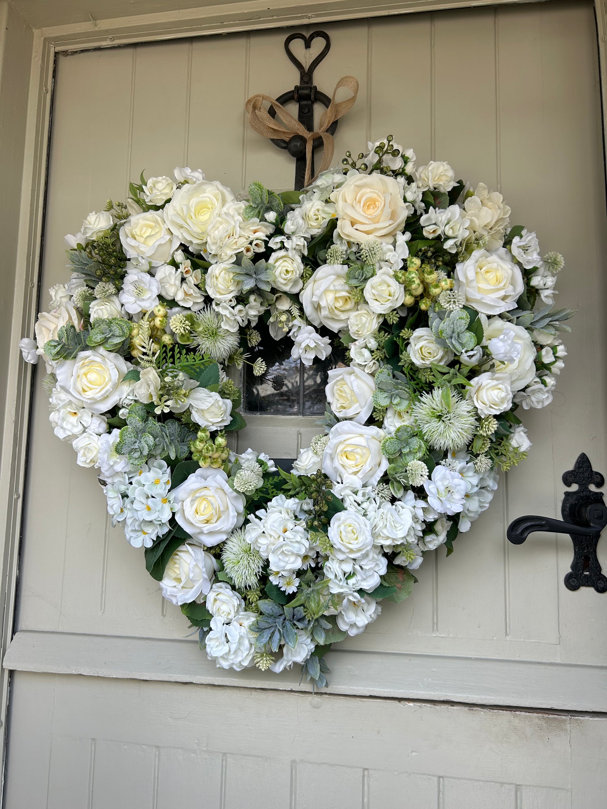 Introducing the “BRIDGERTON” a sophisticated full bloom artificial wreath. Crafted with hydrangea flowers dry touch roses and rananculus this wreath is chunky, lush, and weather-protected, ensuring a beautiful display that will last for years. Plus, free shipping with purchase. Add a touch of elegance and beauty to your home.