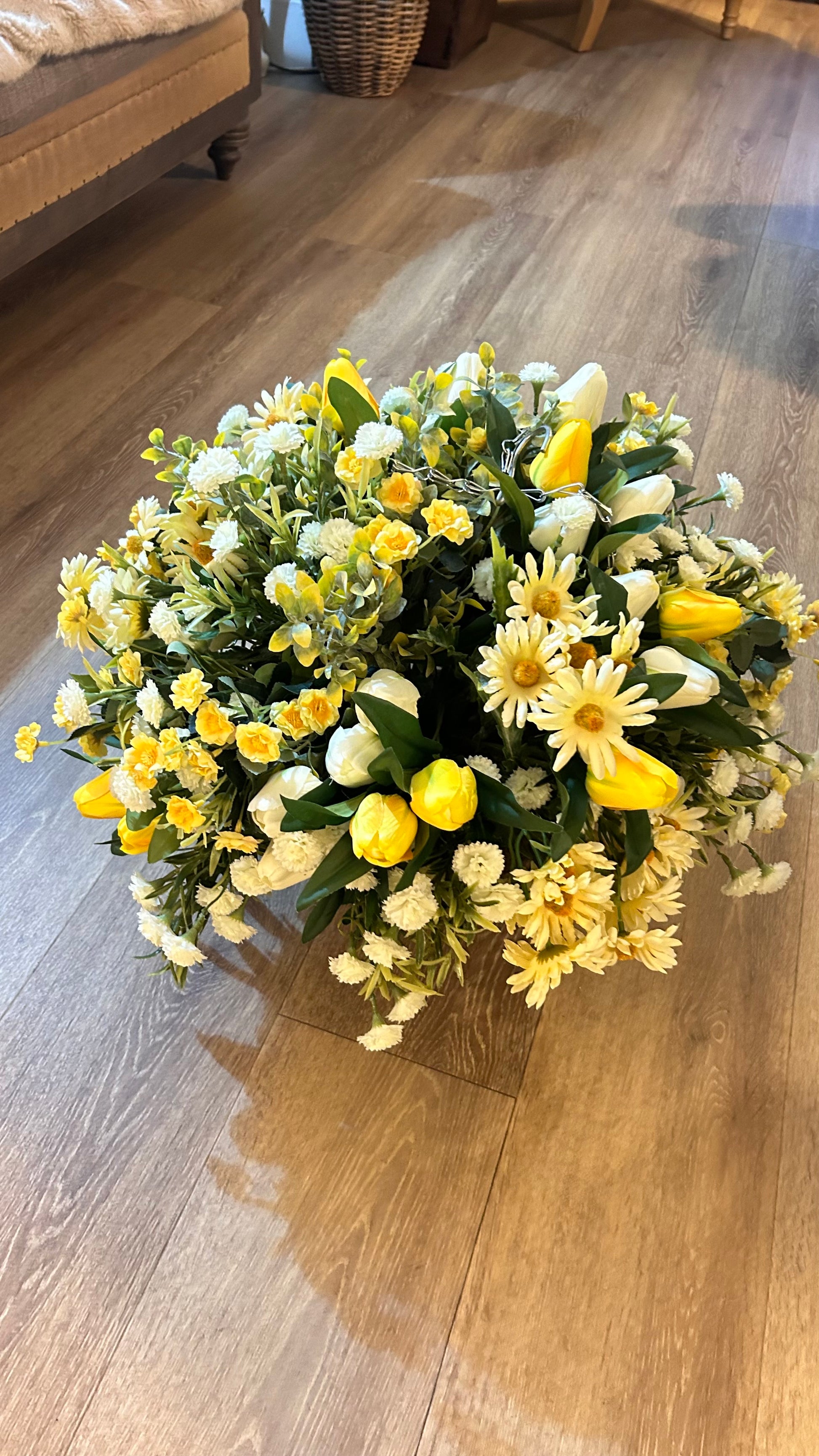 Our Luxury Artificial Hanging Basket is perfect for adding a touch of natural beauty to your indoor or outdoor space. Made with premium materials for a realistic look, this basket features an abundance of realistic flowers and greenery – no maintenance required! Shipping is free and included in the price.