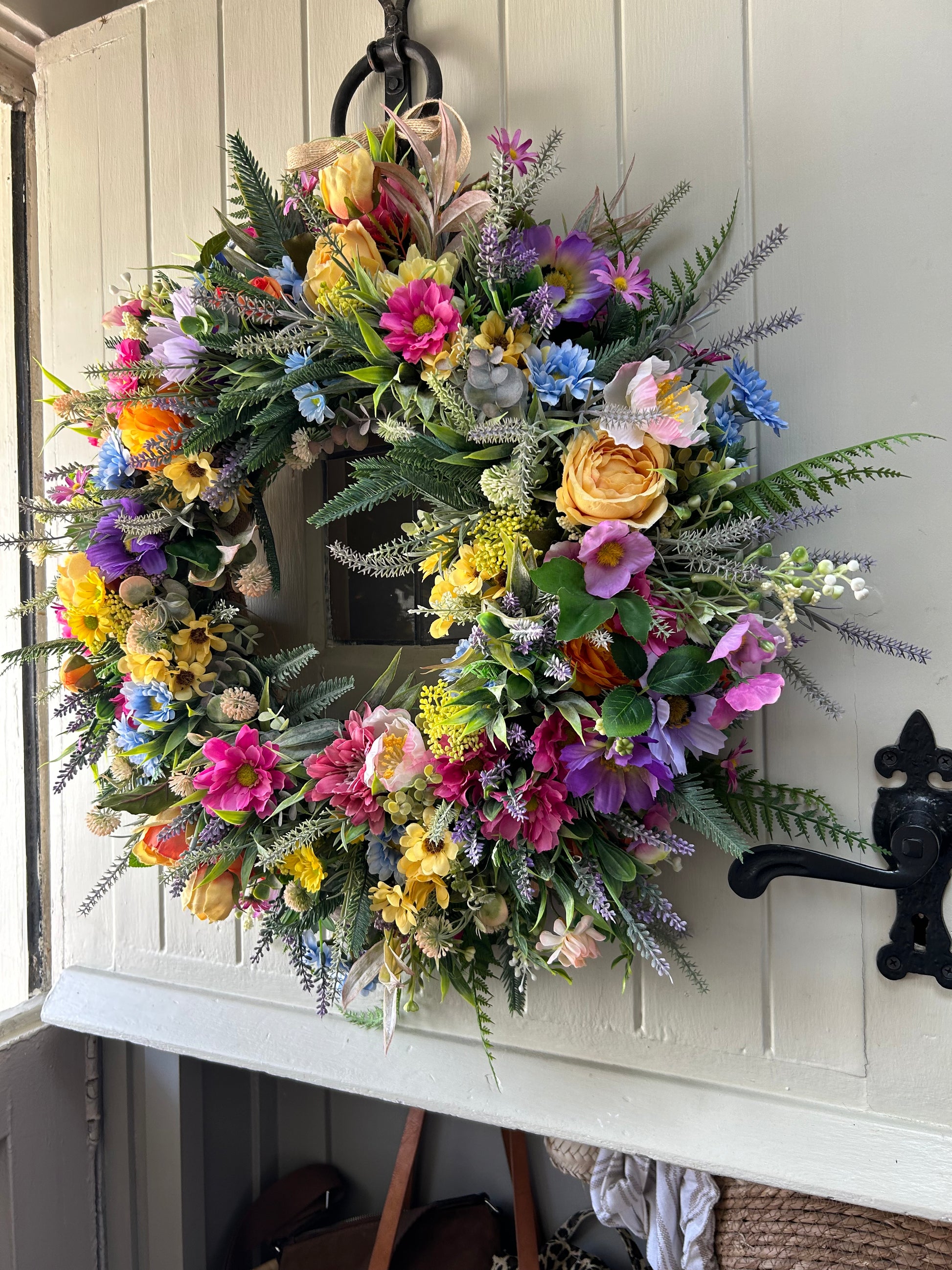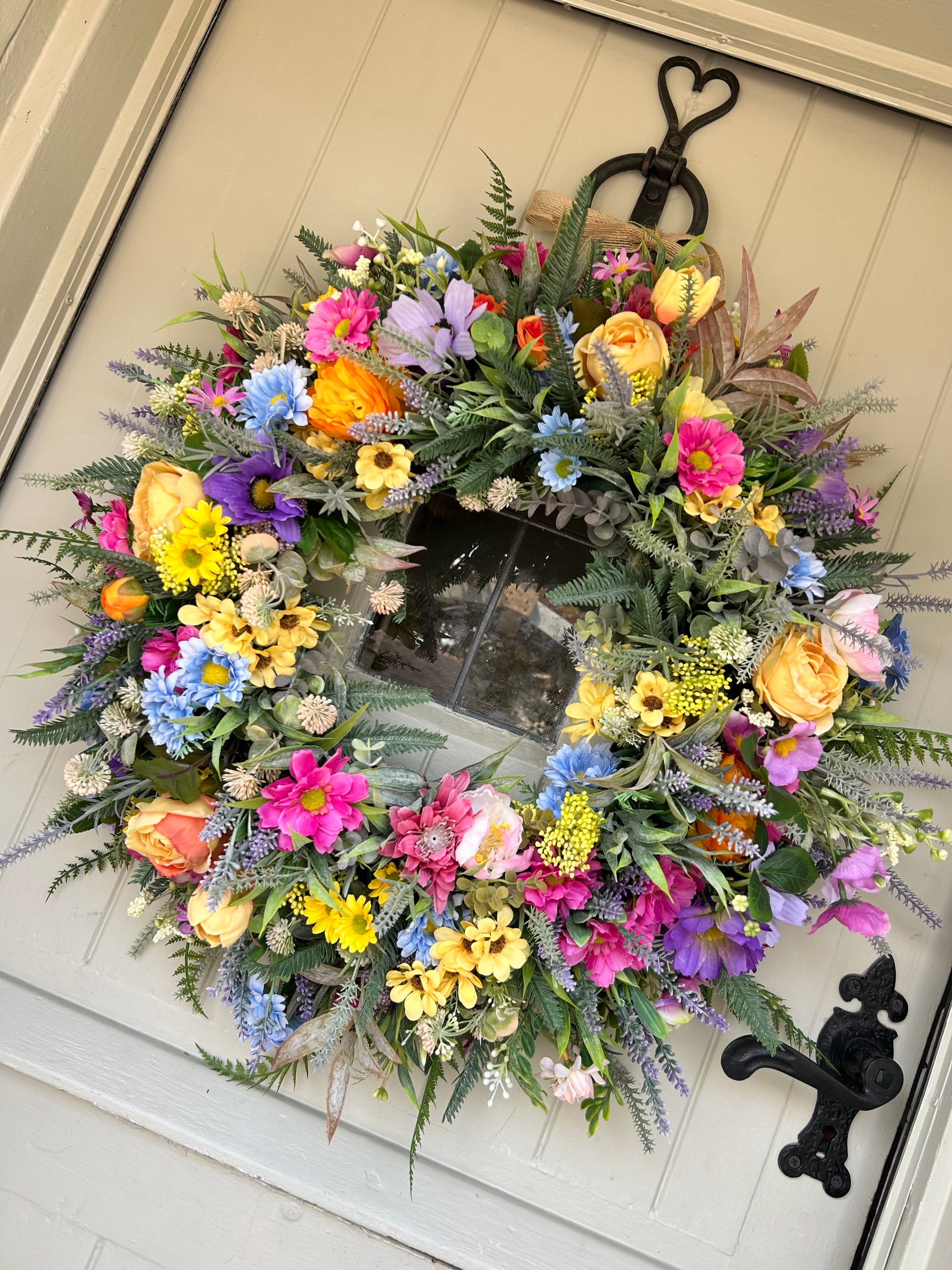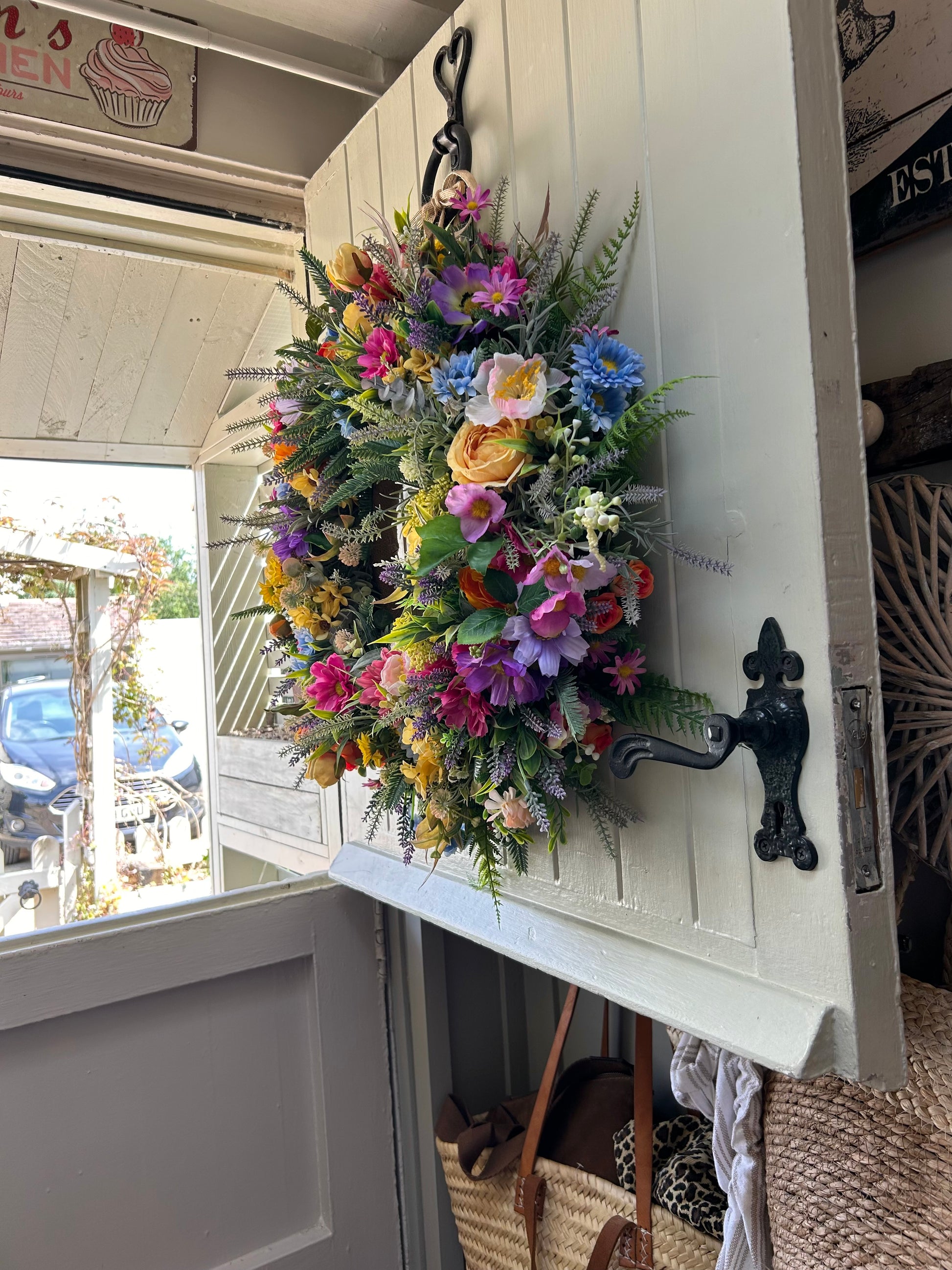 Add a touch of beauty to your home decor with this unique flower wreath that blooms all year round.The mix of berry’s, blossom and foliage give this a chic all year wreath