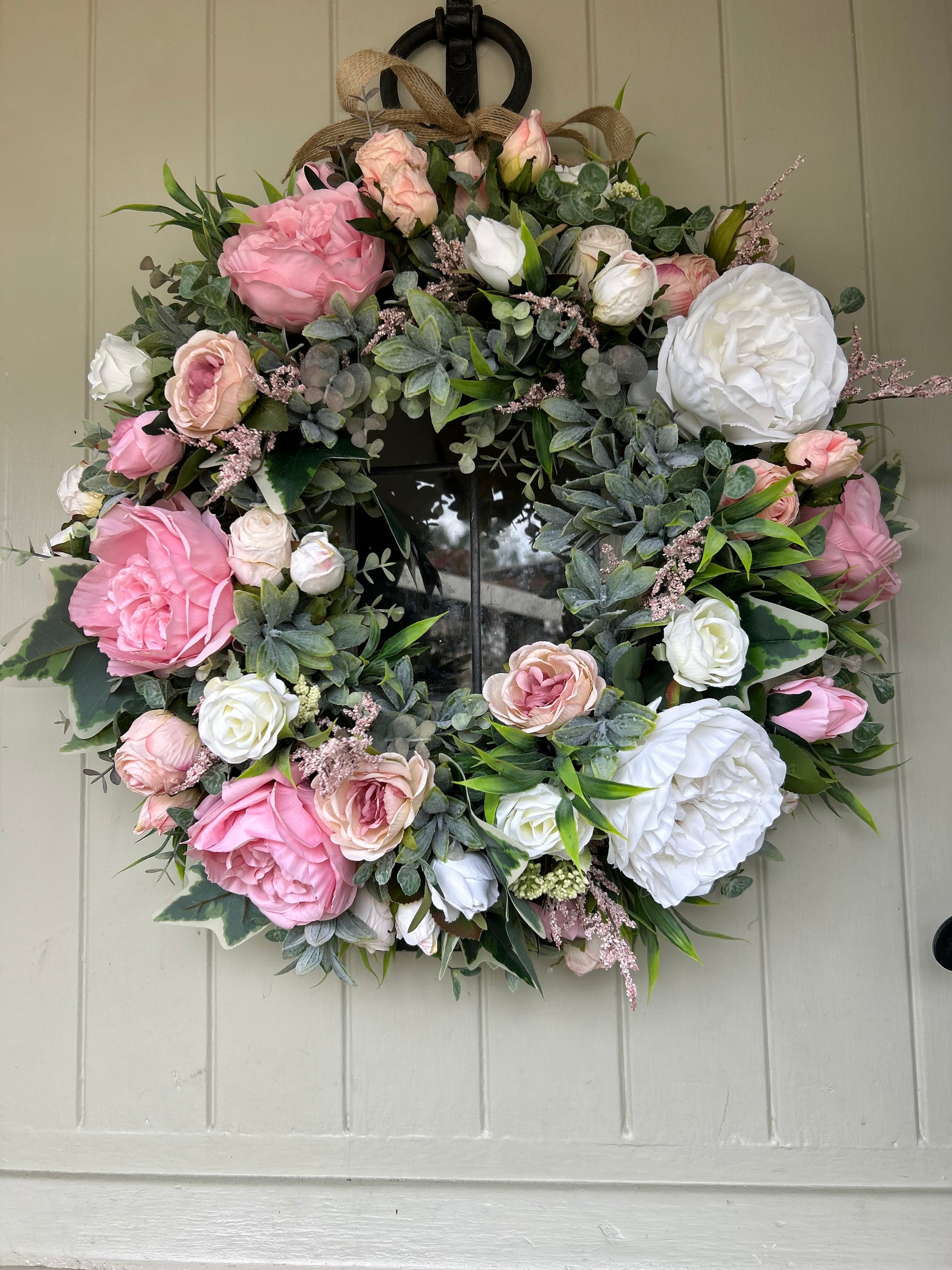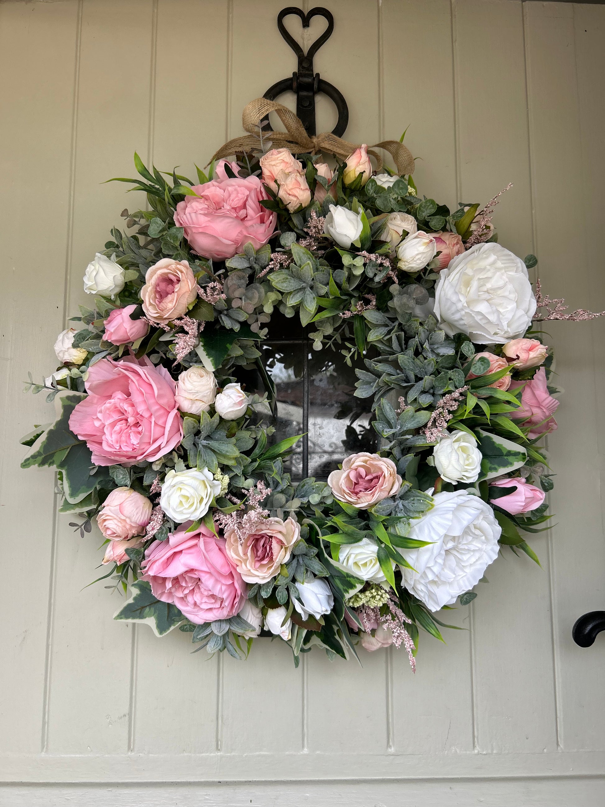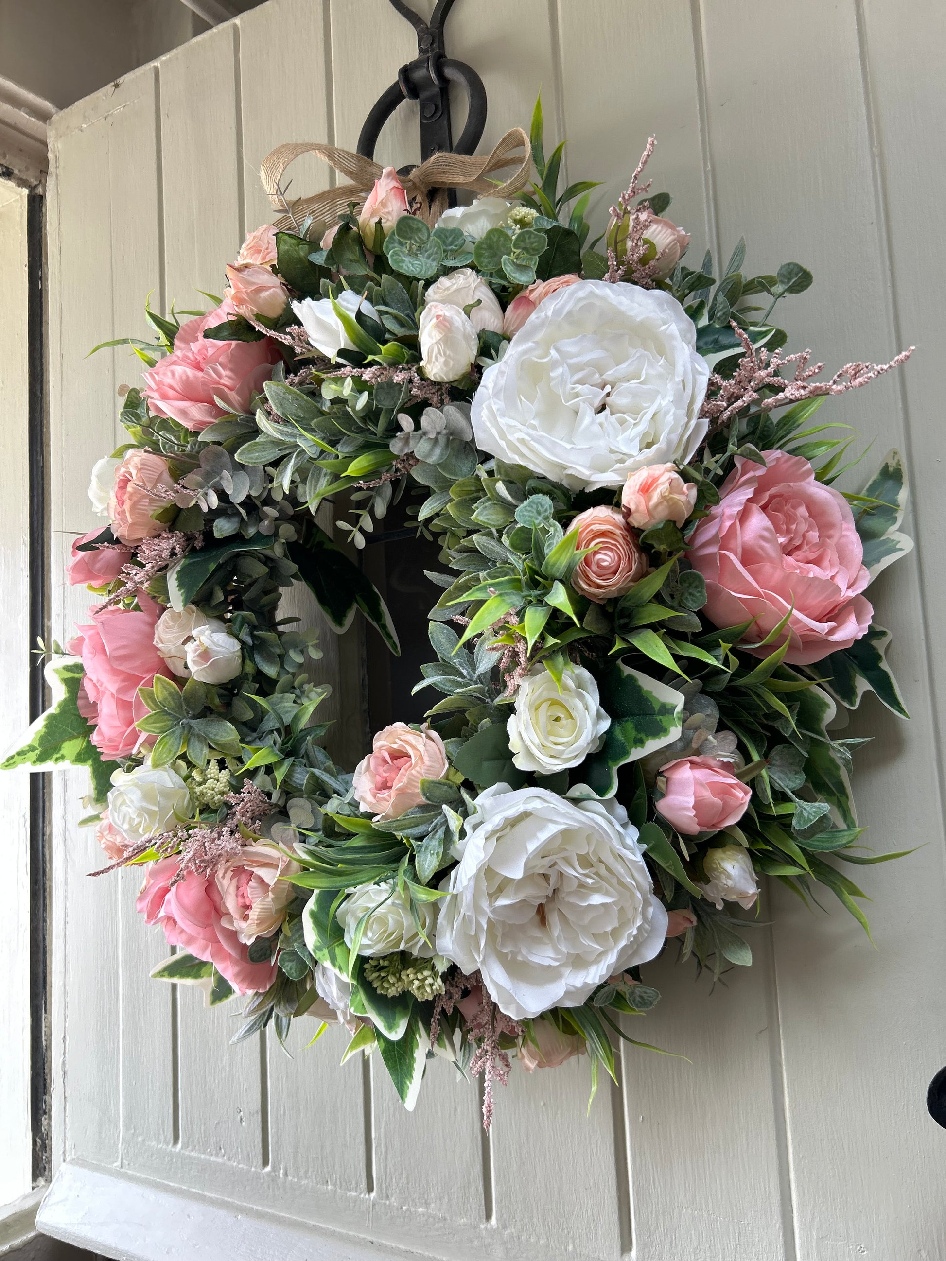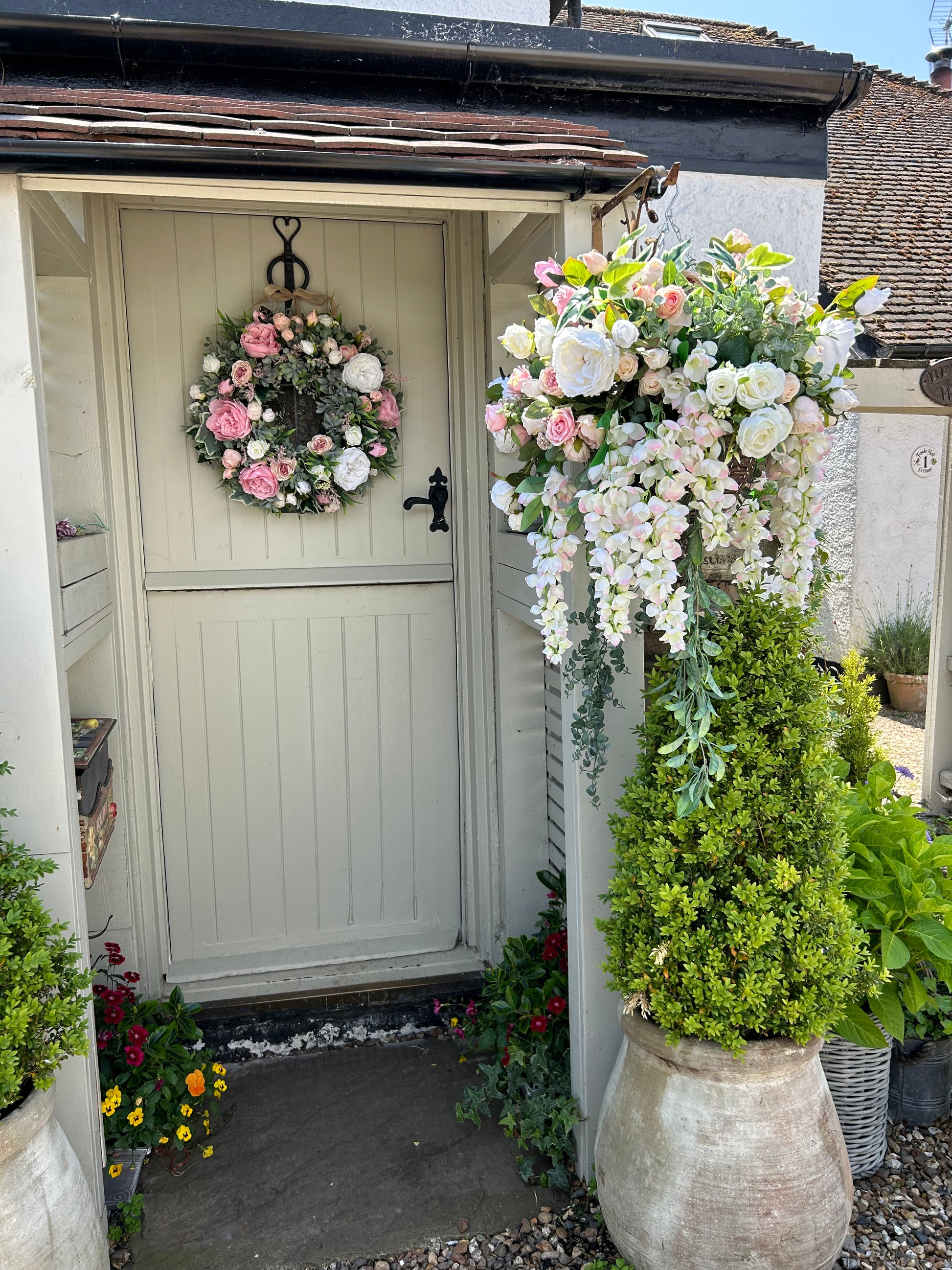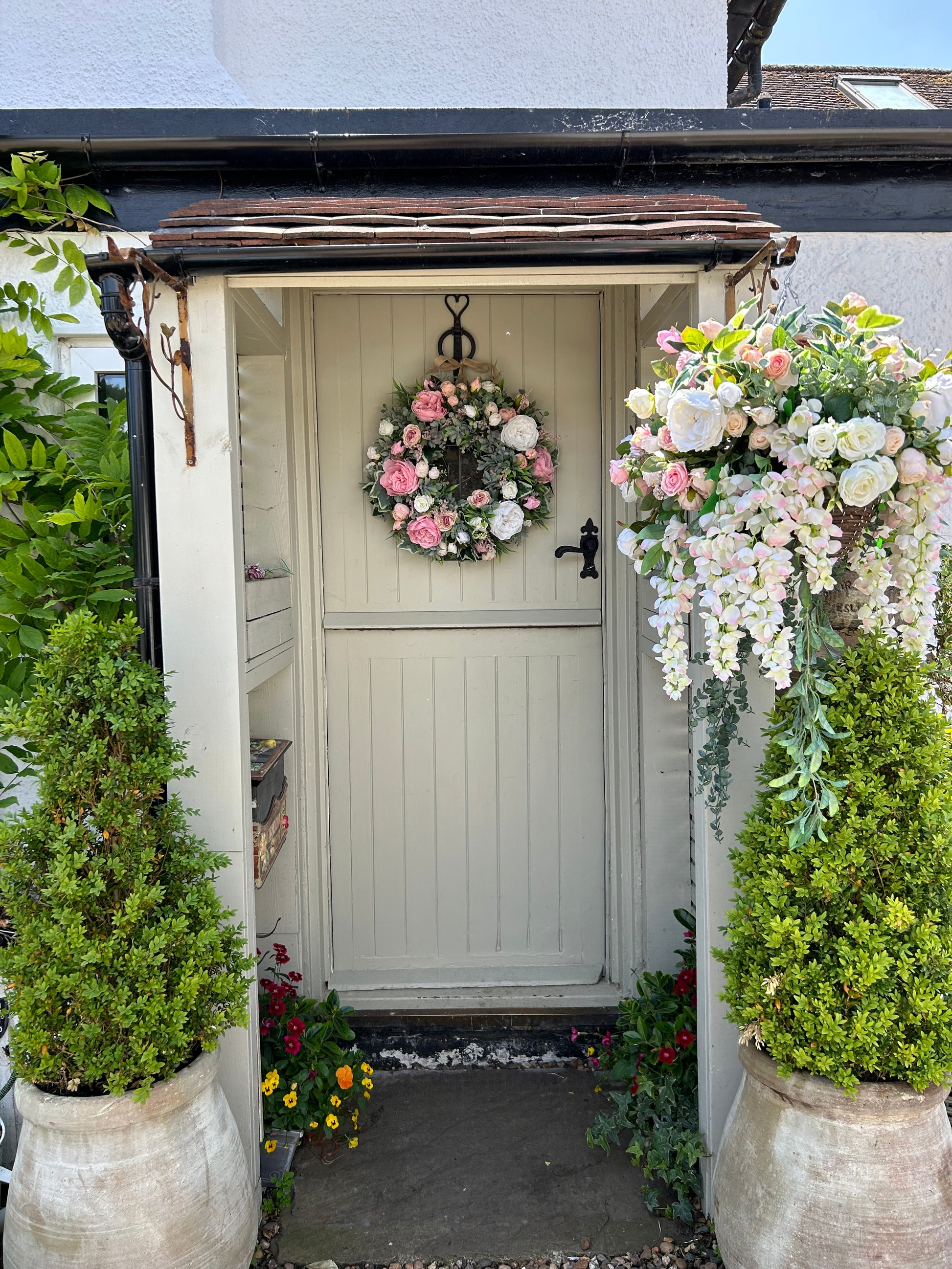 Add a touch of beauty to your home decor with this unique flower wreath that blooms all year round.The mix of berry’s, blossom and foliage give this a chic all year wreath