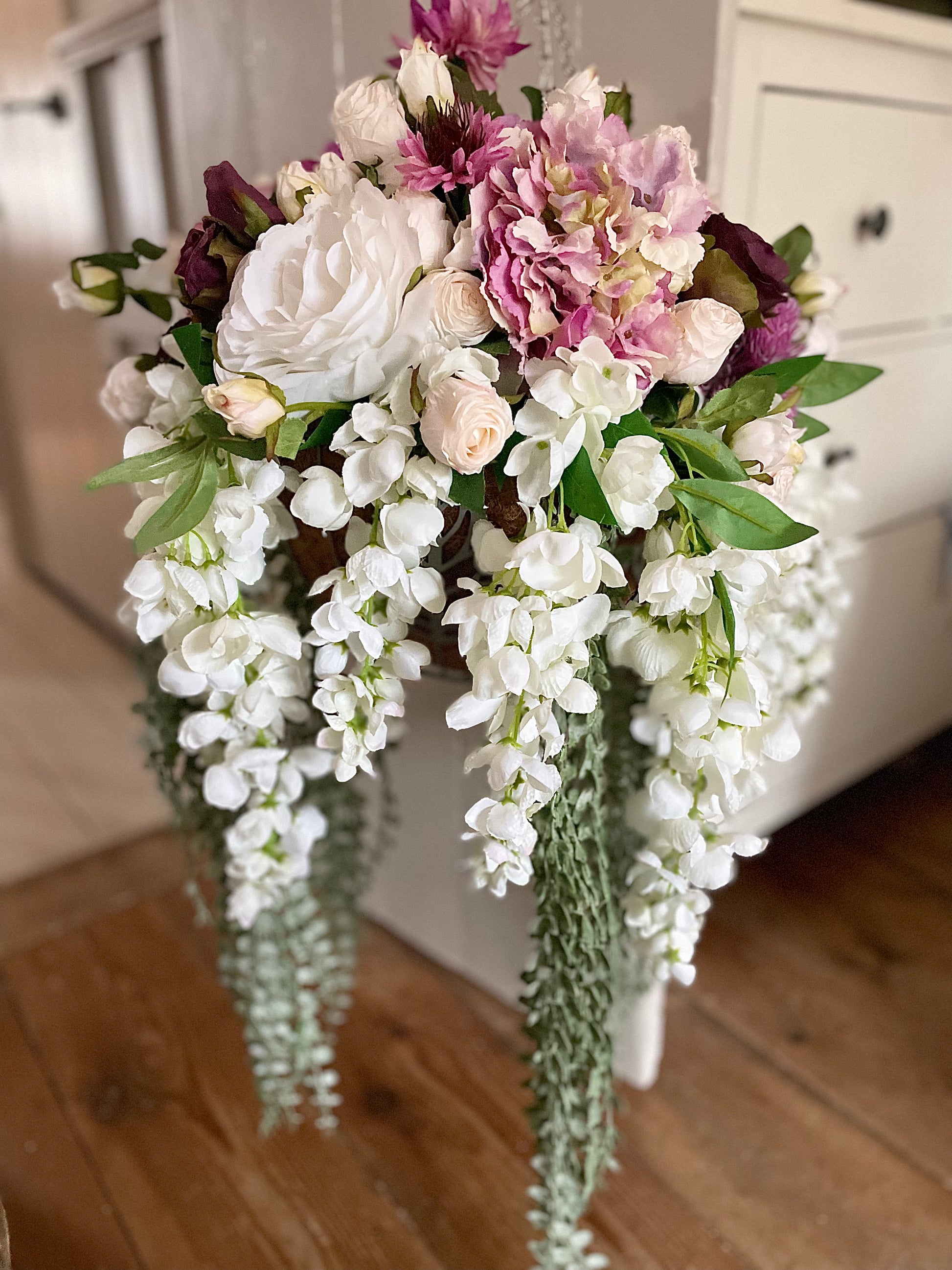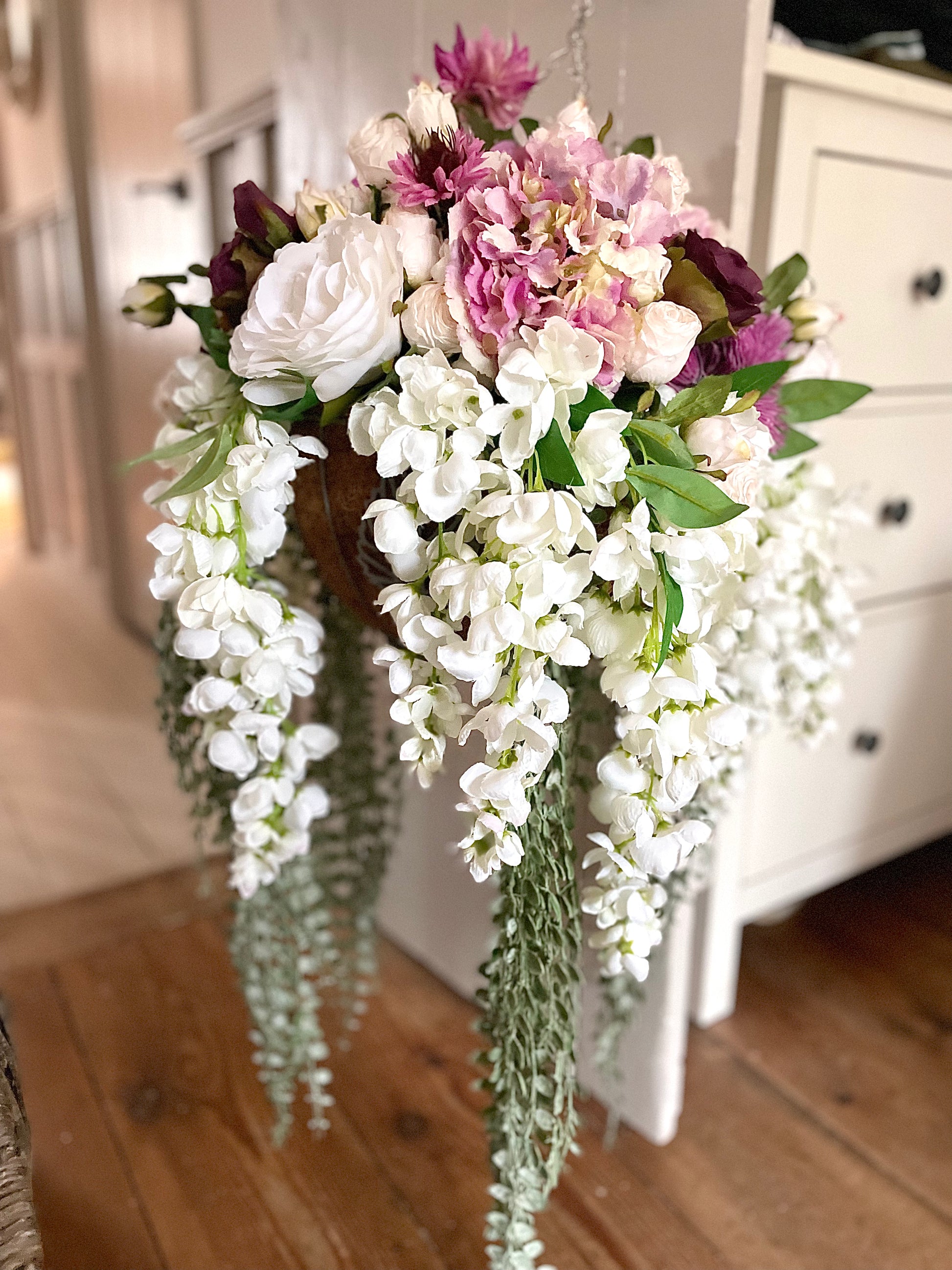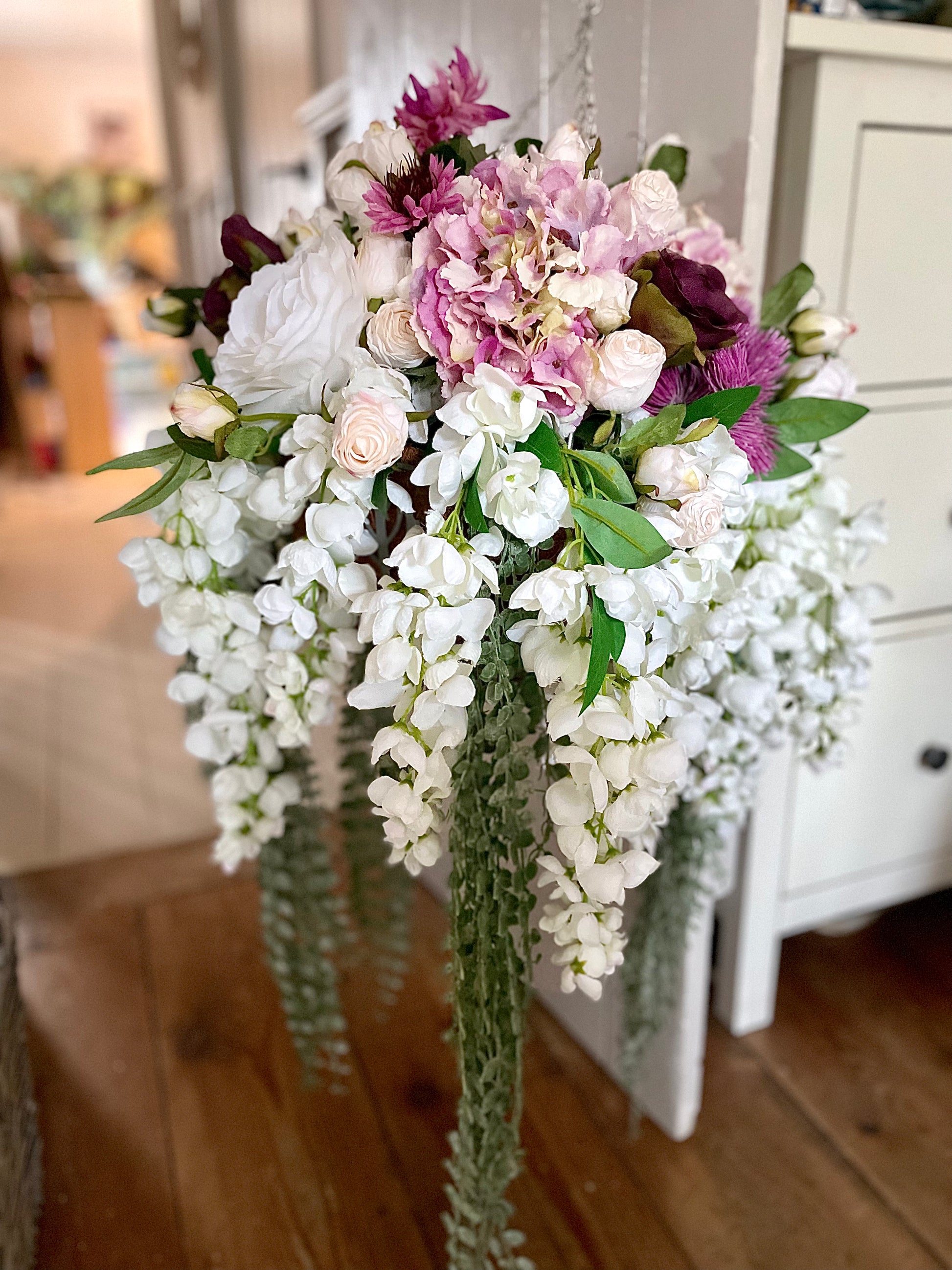 Our Luxury Artificial Hanging Basket is perfect for adding a touch of natural beauty to your indoor or outdoor space. Made with premium materials for a realistic look, this basket features an abundance of realistic flowers and greenery – no maintenance required! Shipping is free and included in the price.