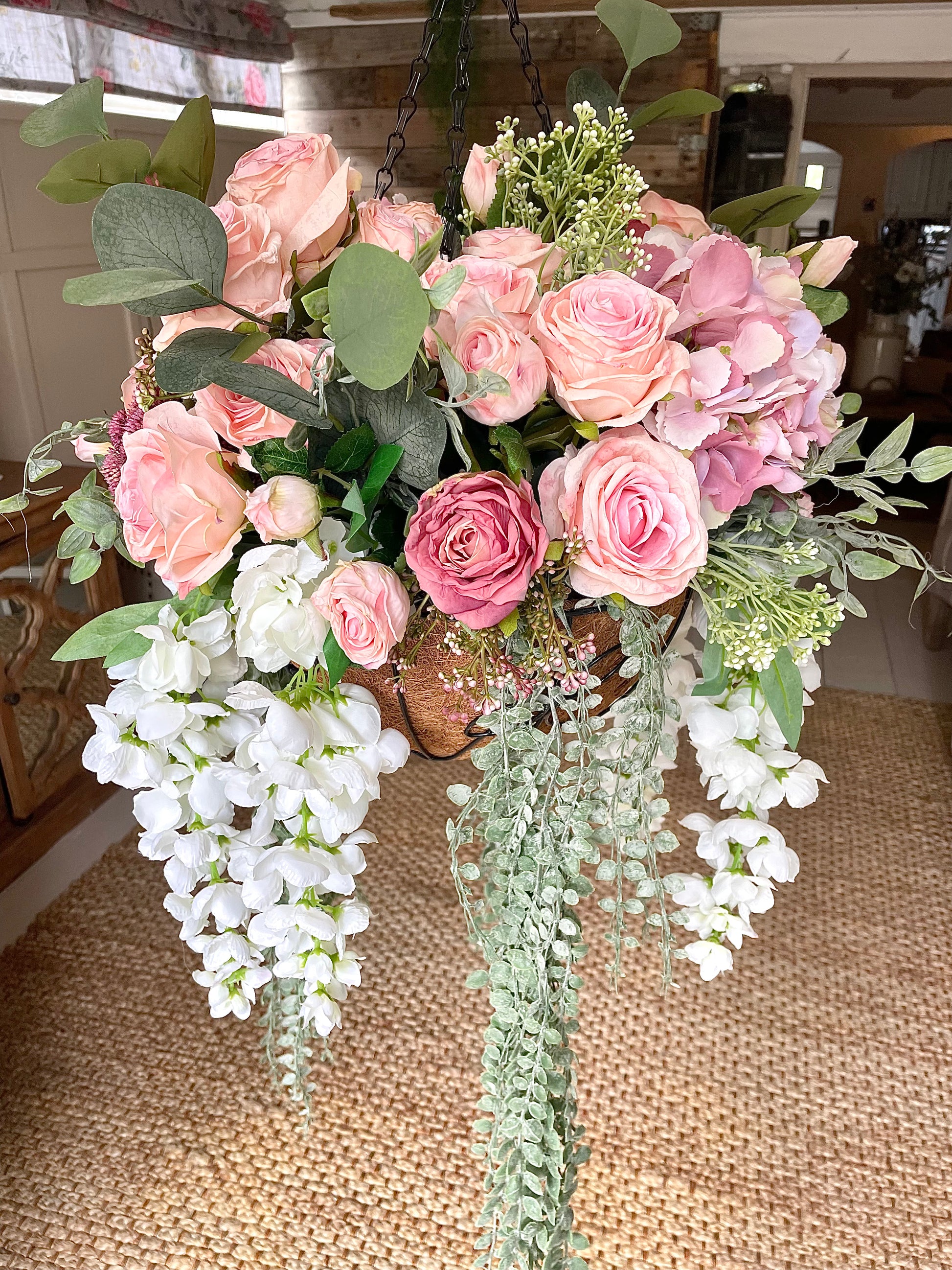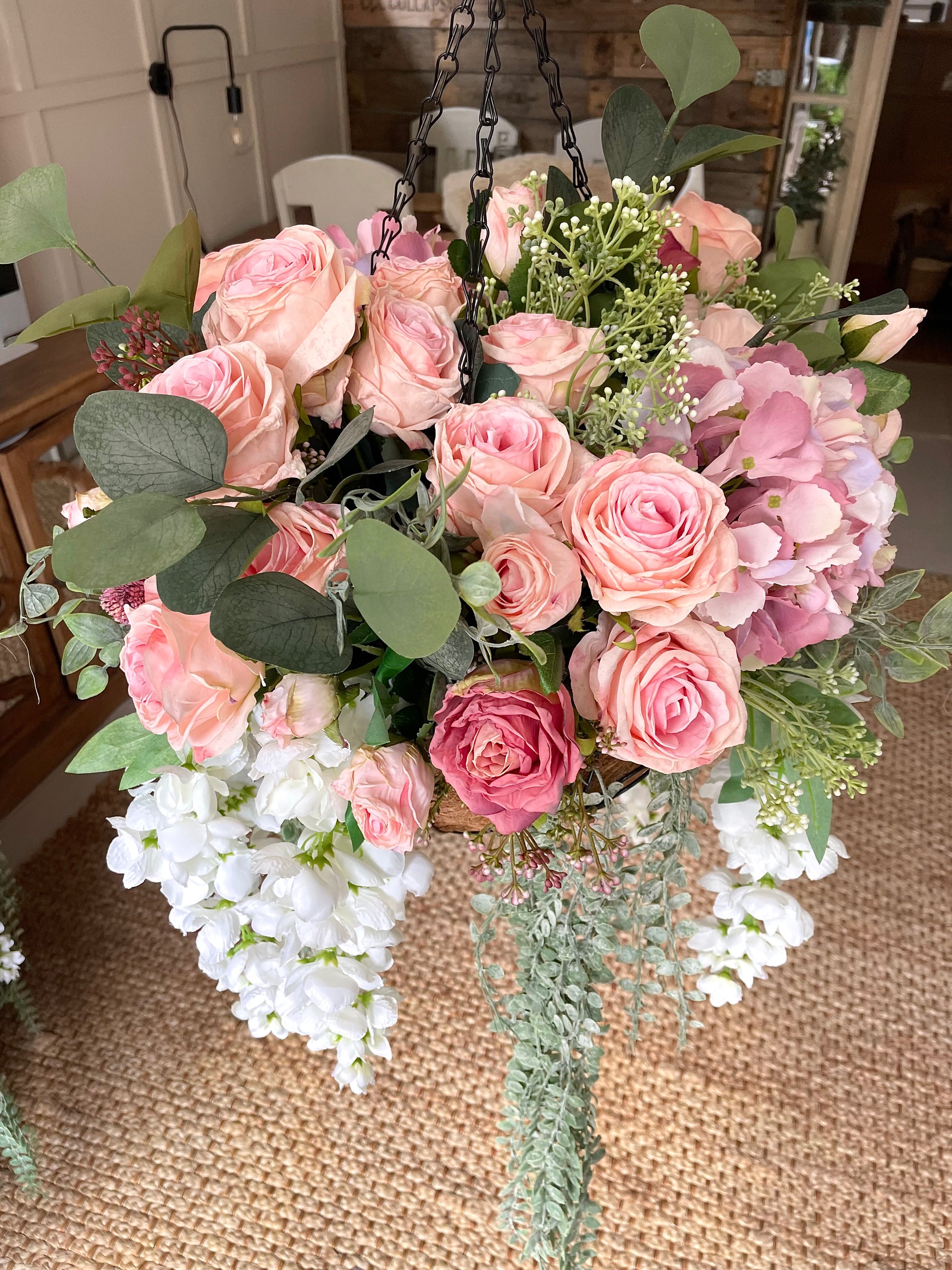 Make a statement in your garden with this beautiful NEW (dry touch) pink luxury rose hanging basket. Crafted with lifelike detail for a realistic look, this artificial basket features a dry touch finish for a natural appearance. Enjoy a permanent addition to your outdoor decor with FREE P&P.