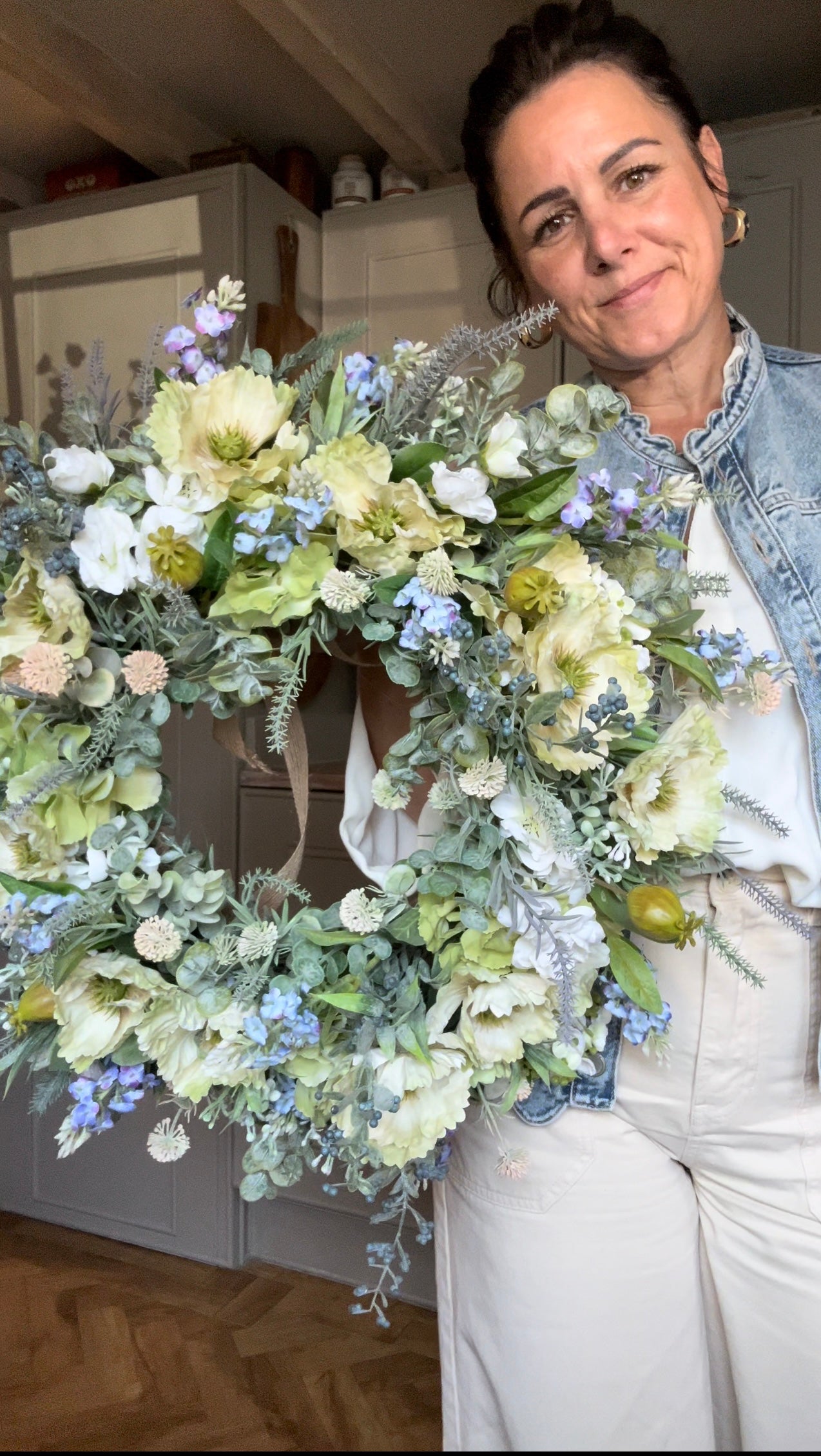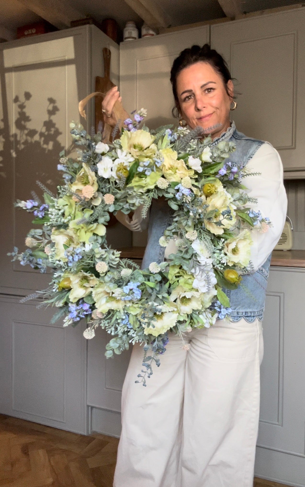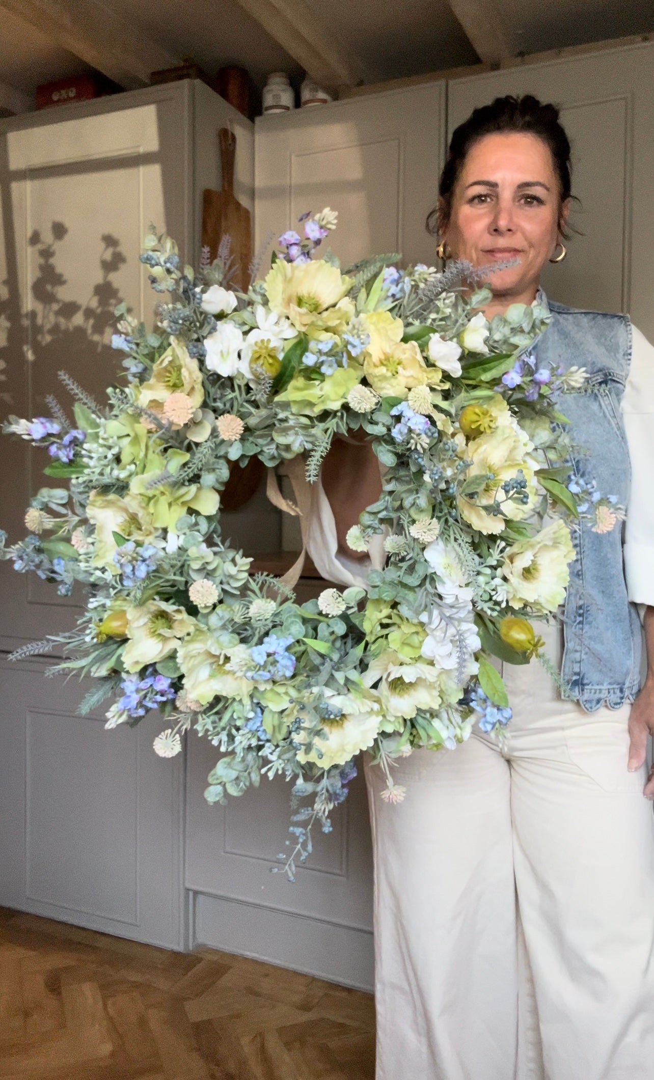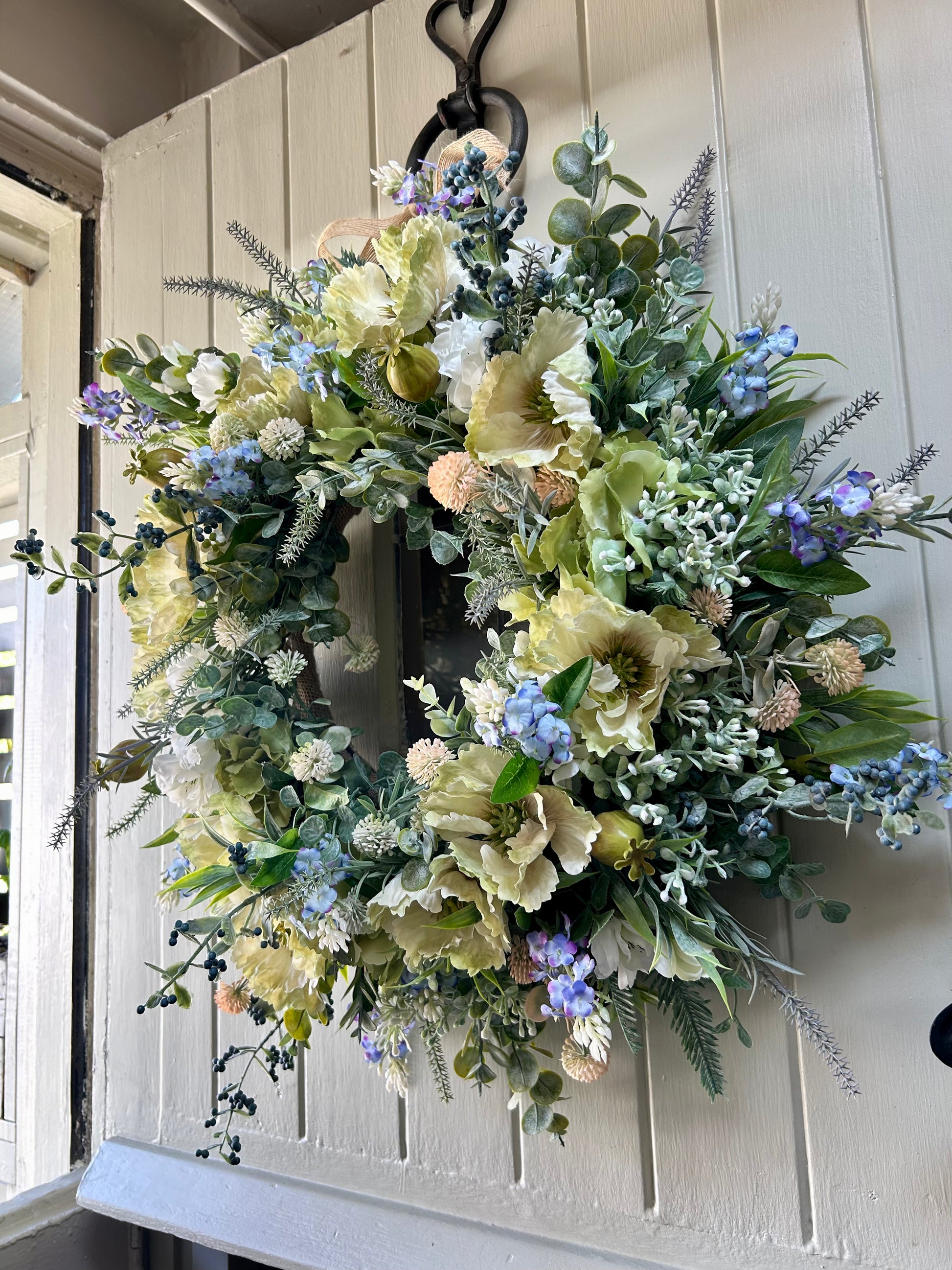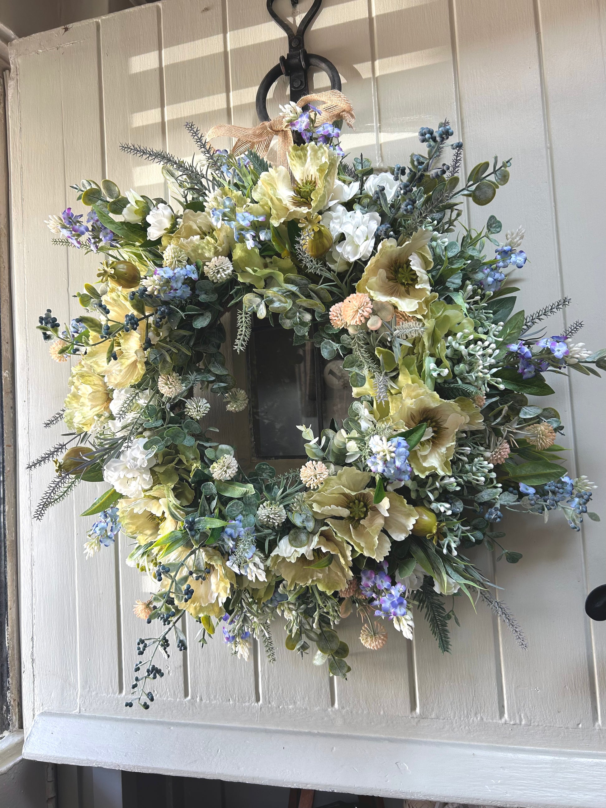 Add a touch of beauty to your home decor with this unique flower wreath that blooms all year round.The mix of berry’s, blossom and foliage give this a chic all year wreath