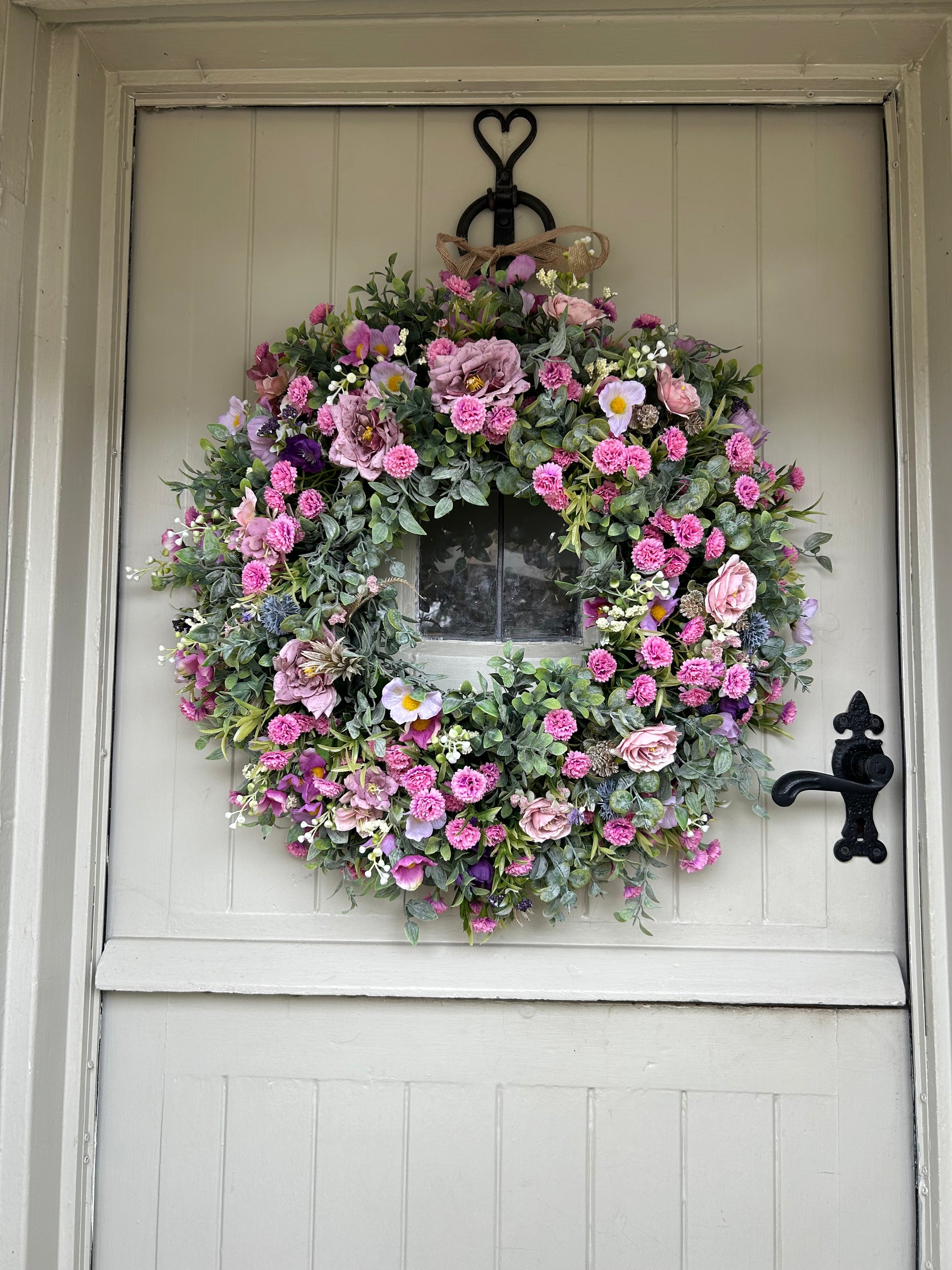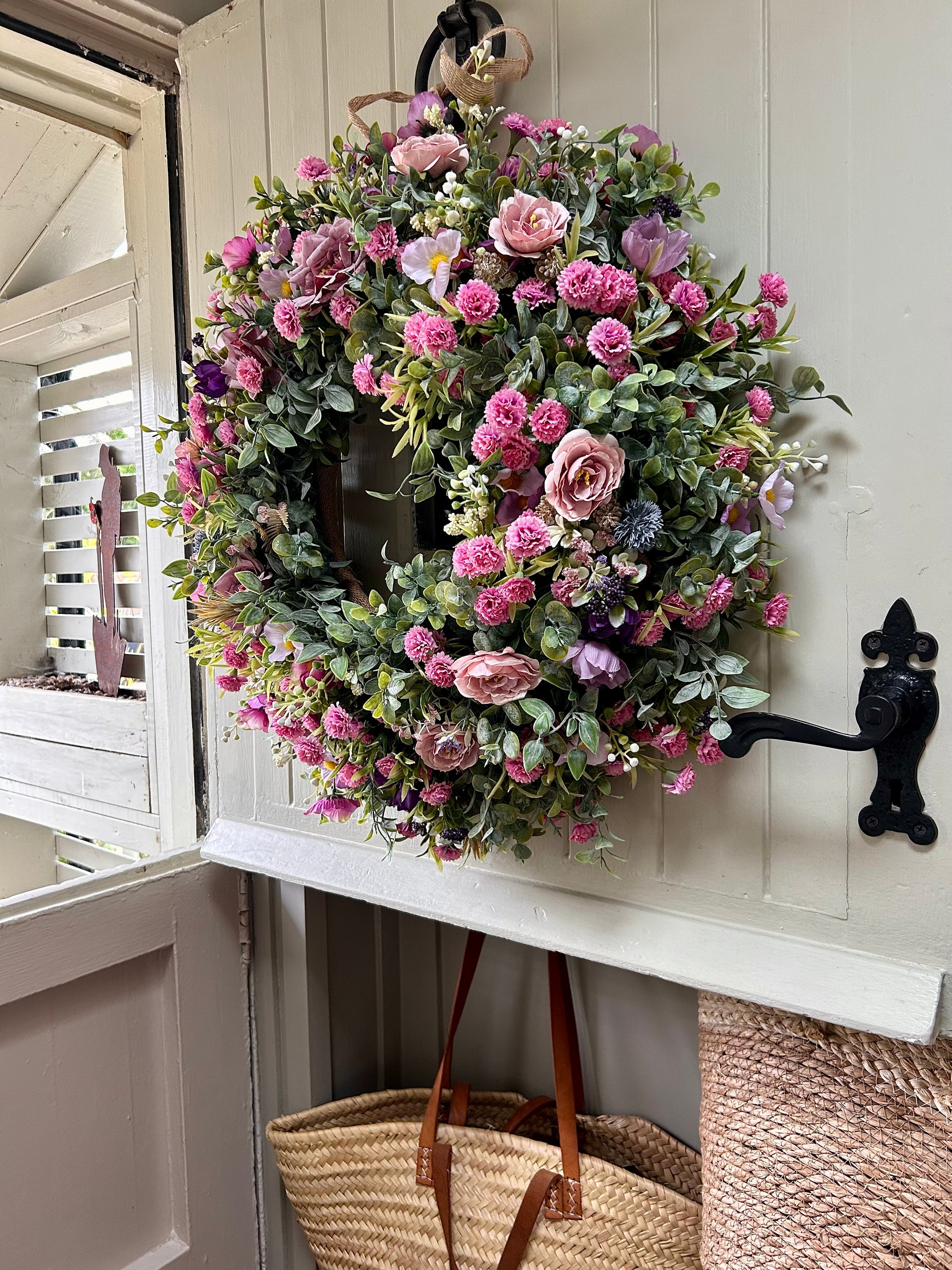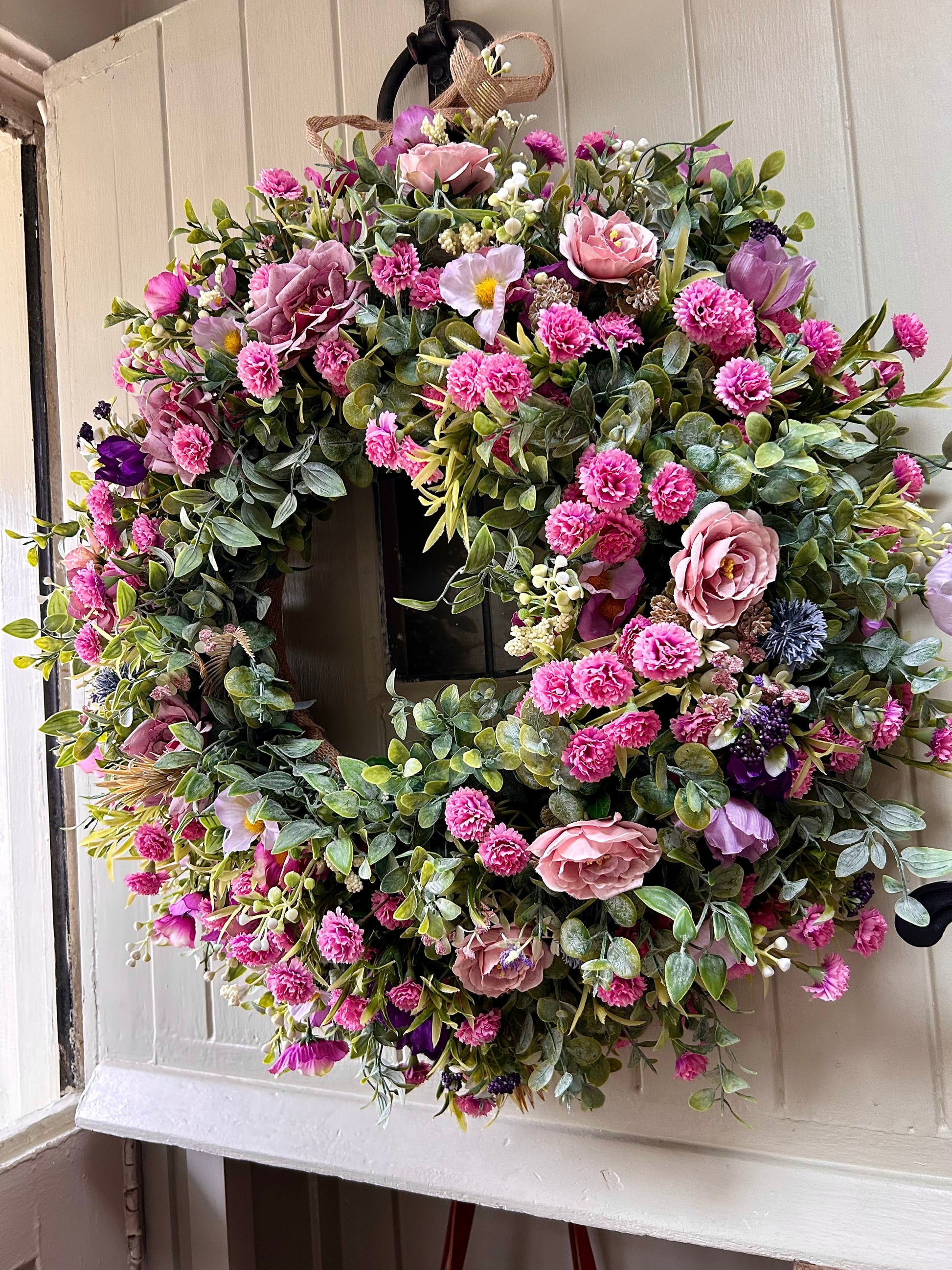 Add a touch of beauty to your home decor with this unique flower wreath that blooms all year round.The mix of berry’s, blossom and foliage give this a chic all year wreath