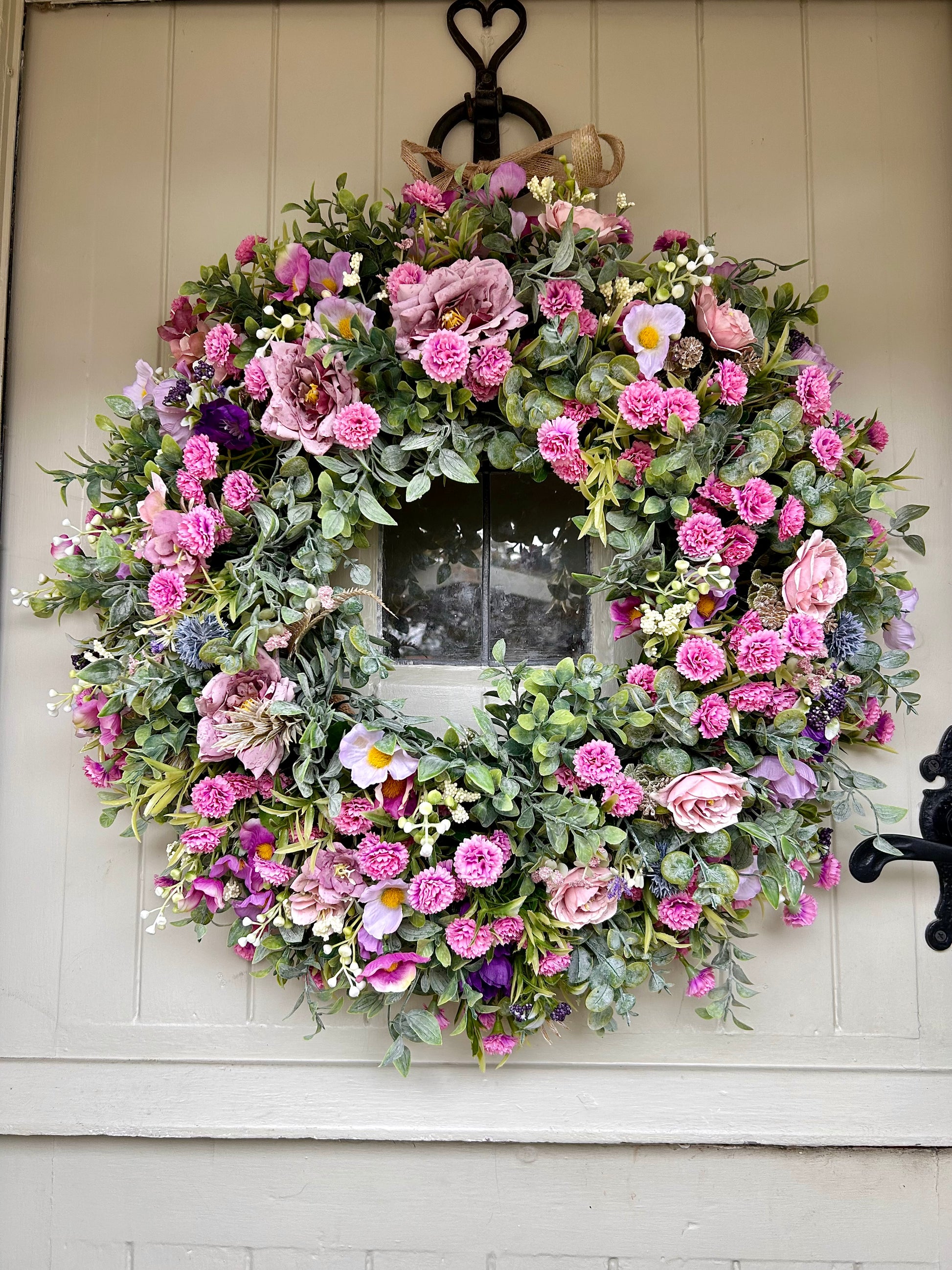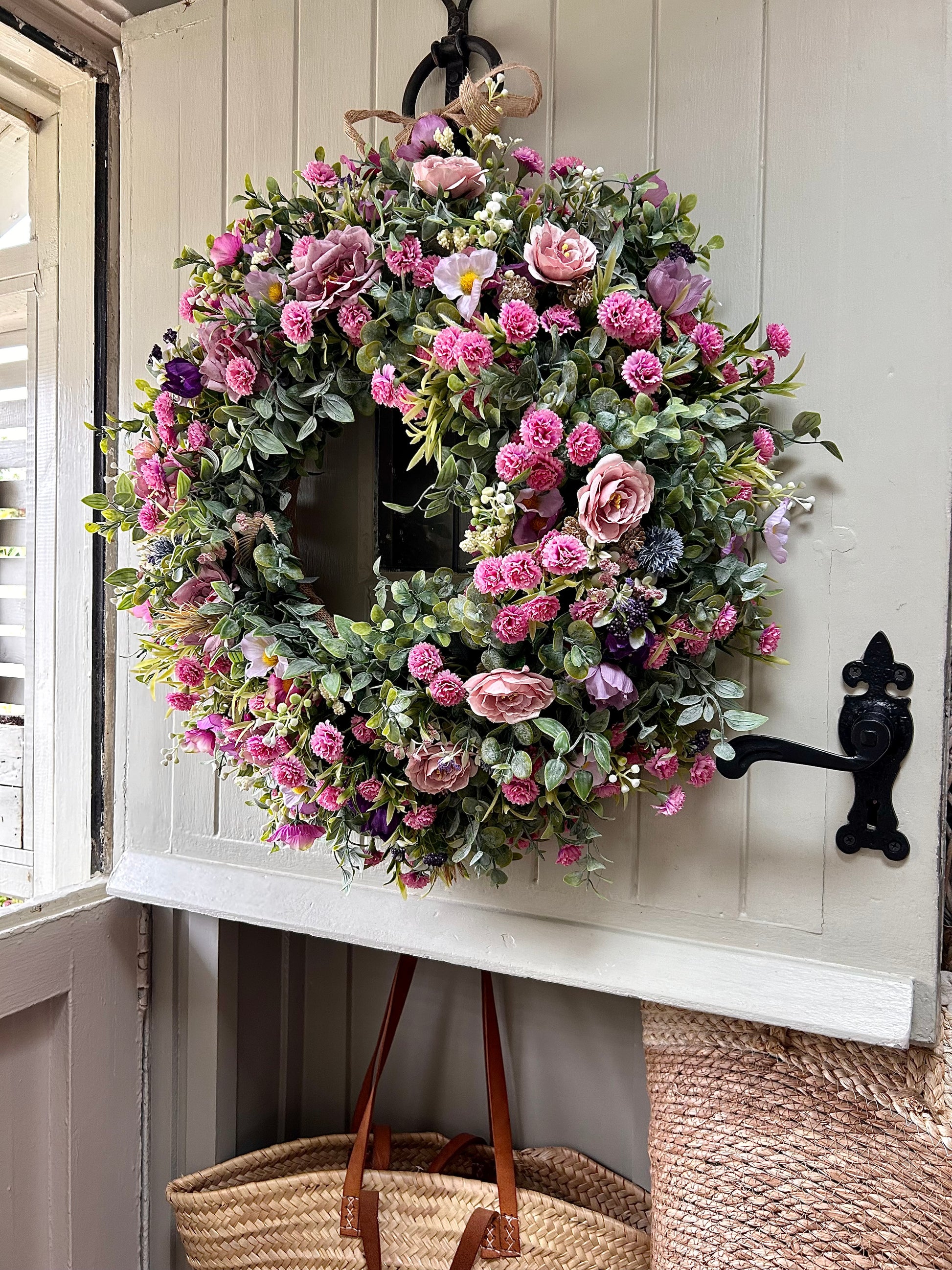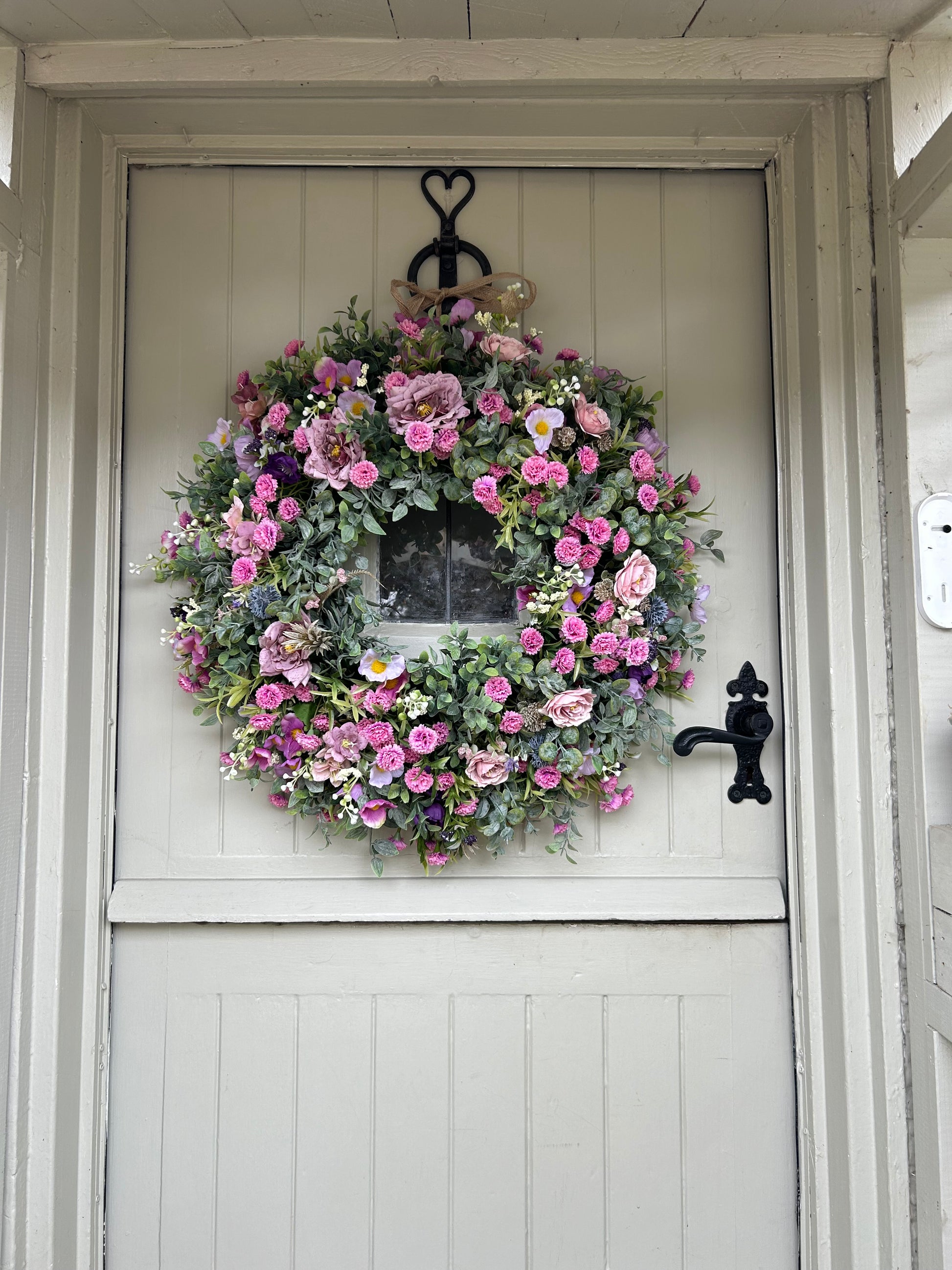Add a touch of beauty to your home decor with this unique flower wreath that blooms all year round.The mix of berry’s, blossom and foliage give this a chic all year wreath