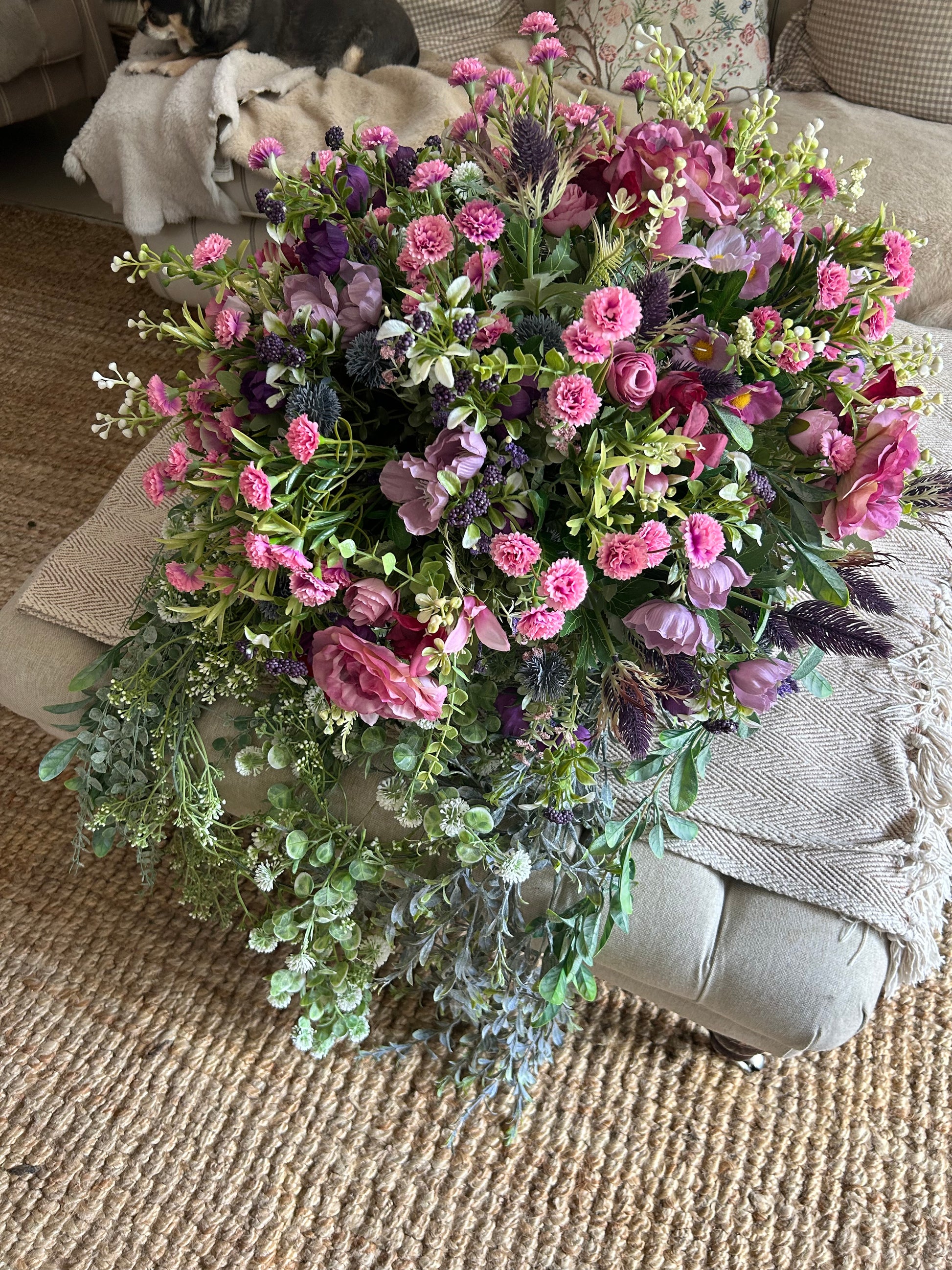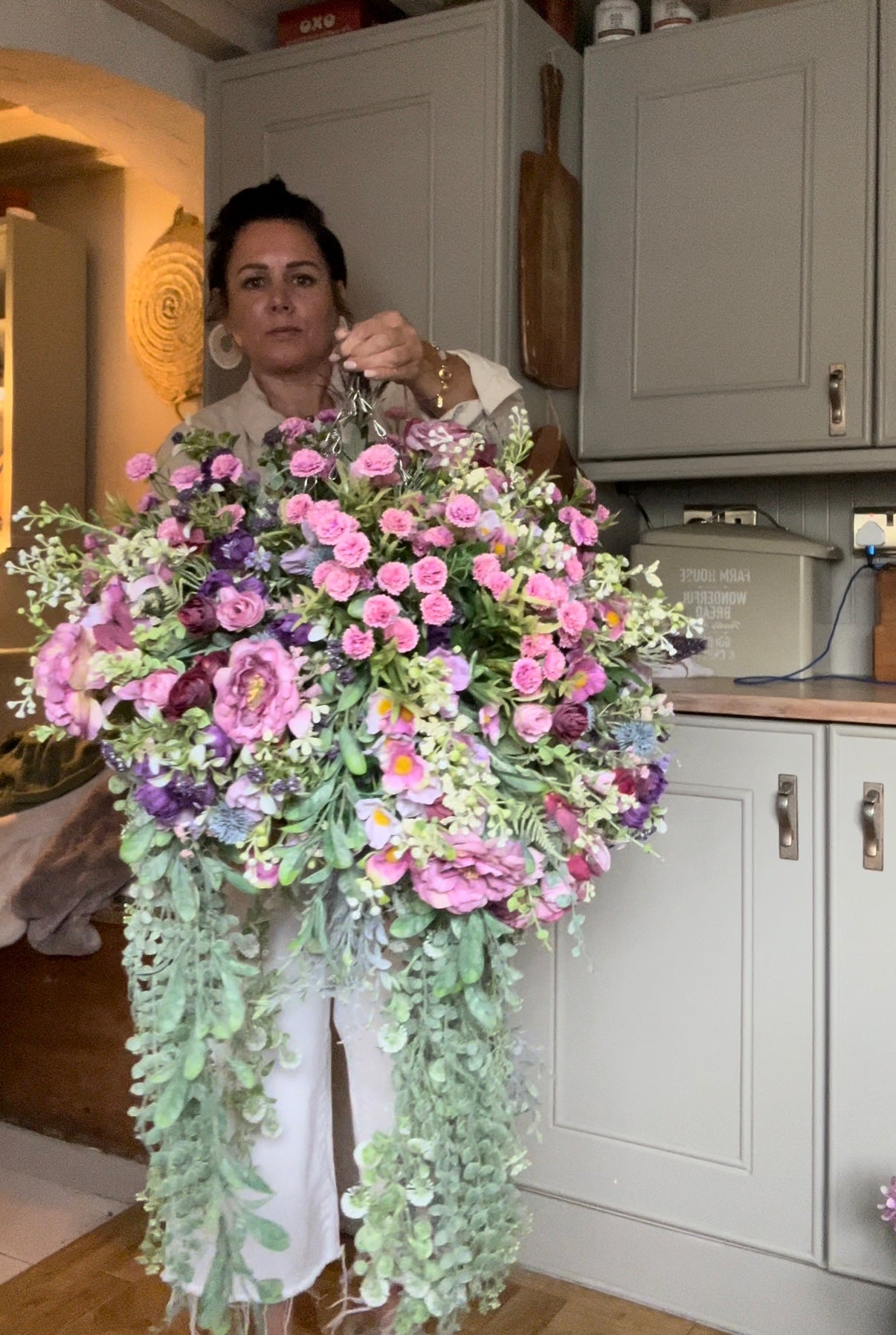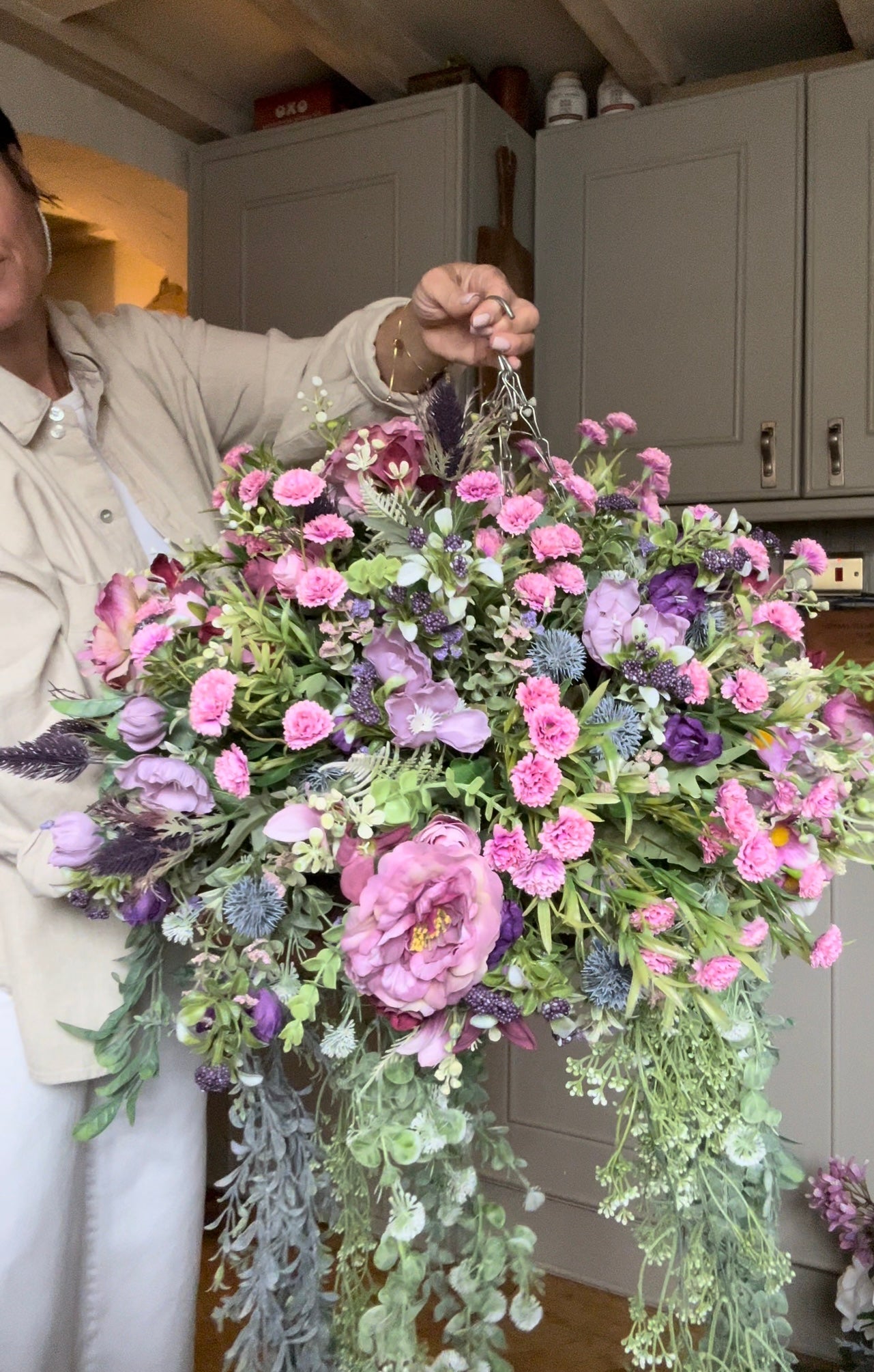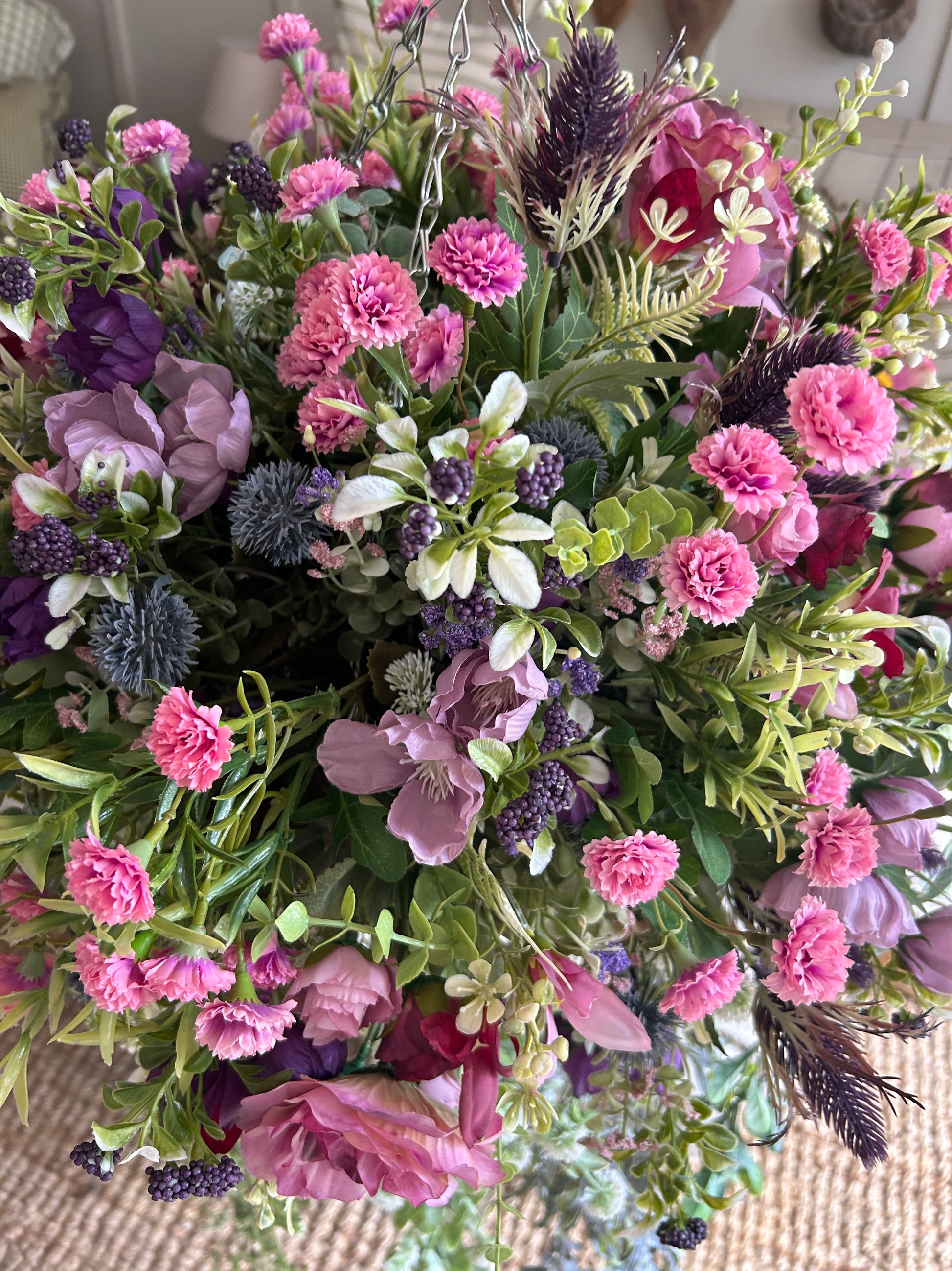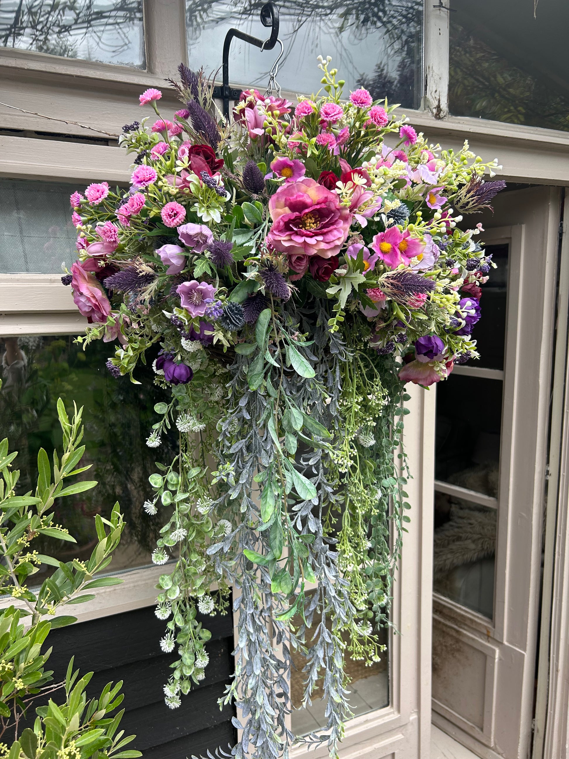 Our Luxury Artificial Hanging Basket is perfect for adding a touch of natural beauty to your indoor or outdoor space. Made with premium materials for a realistic look, this basket features an abundance of realistic flowers and greenery – no maintenance required! Shipping is free and included in the price.