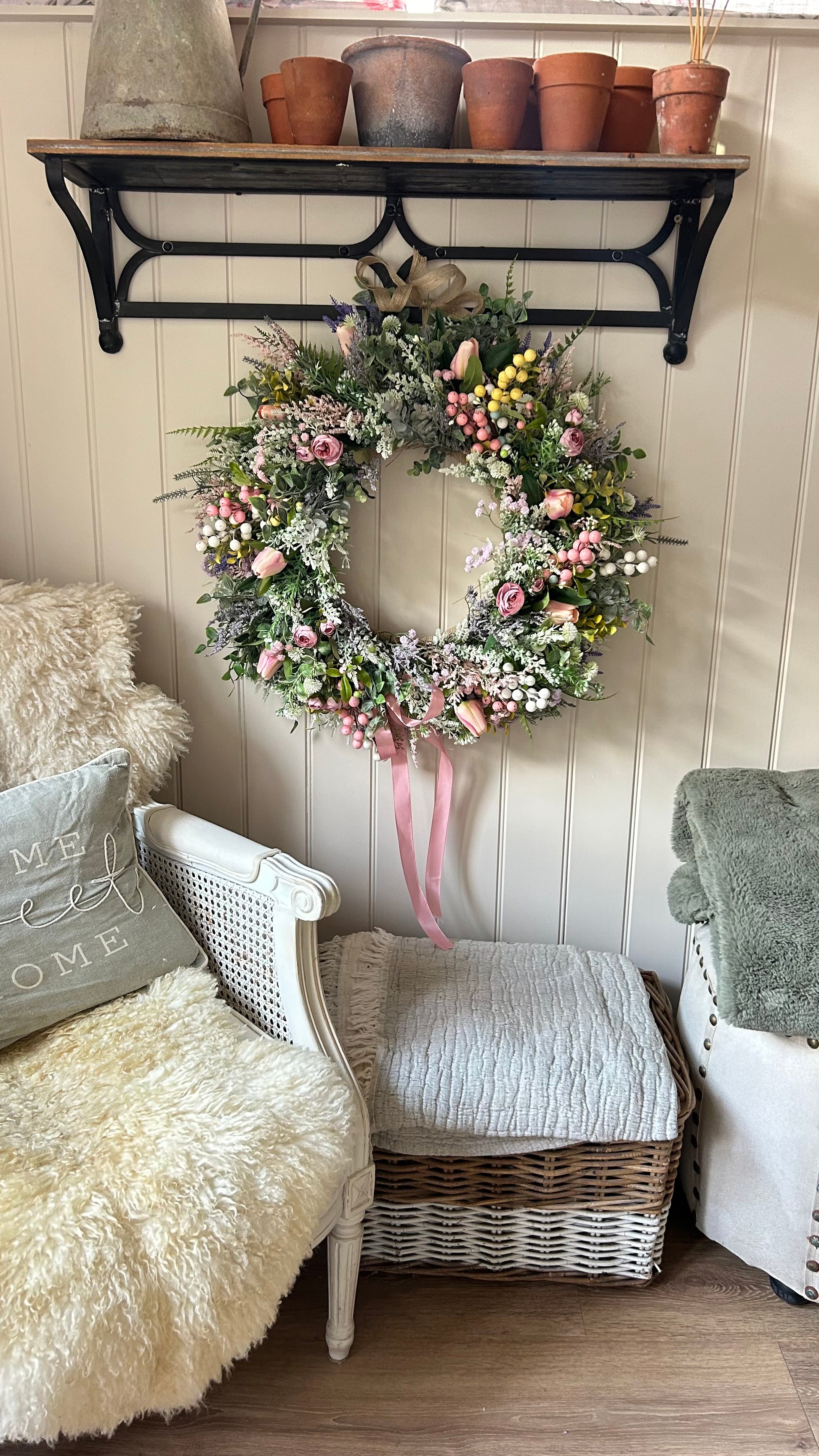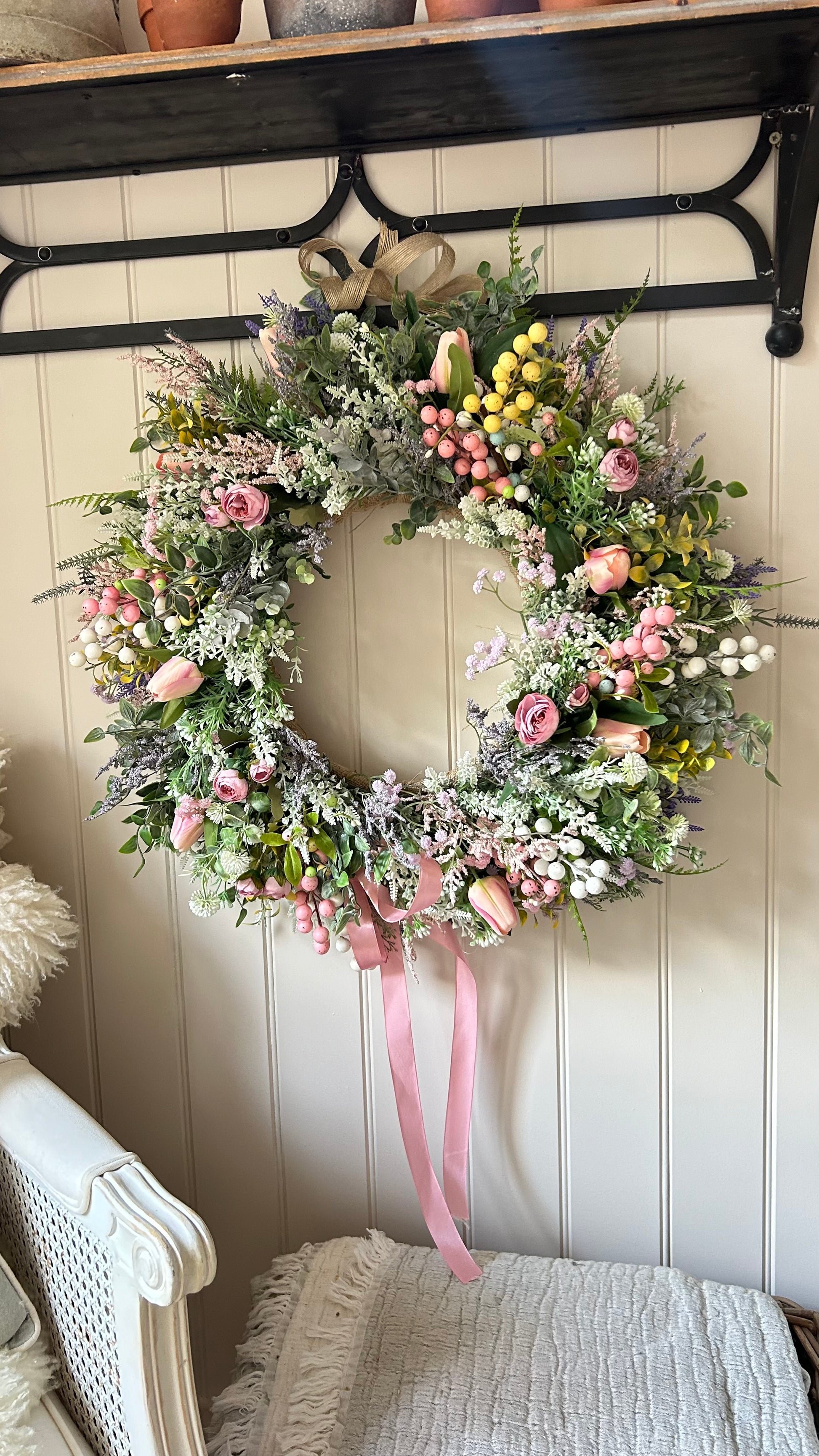 This Natural Faux Wreath is designed with beautiful and realistic artificial flowers. The natural, full-look of this wreath makes it a great addition to your home throughout any season. With a sturdy design and lifelike beauty, this wreath optimizes the aesthetic of any space.