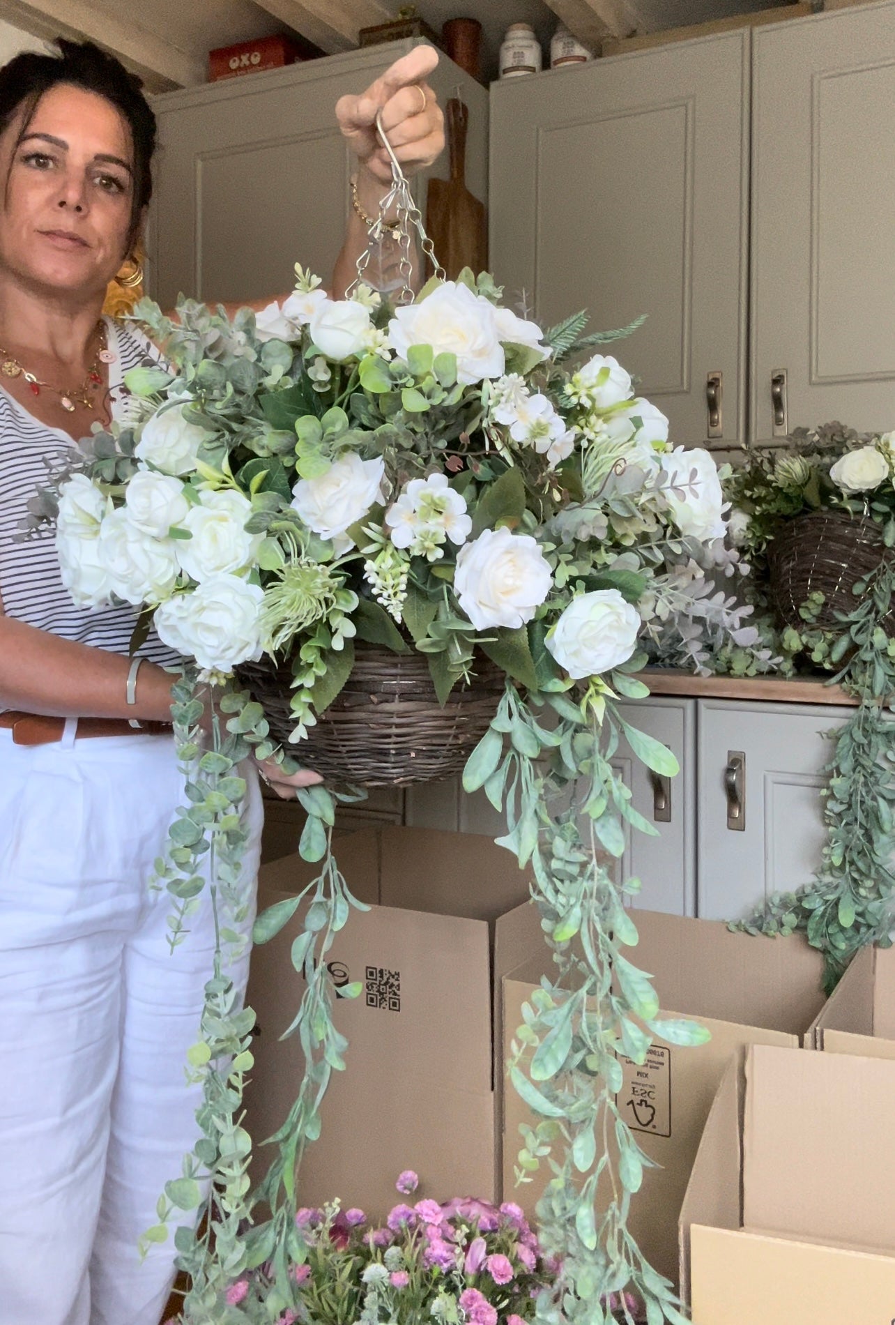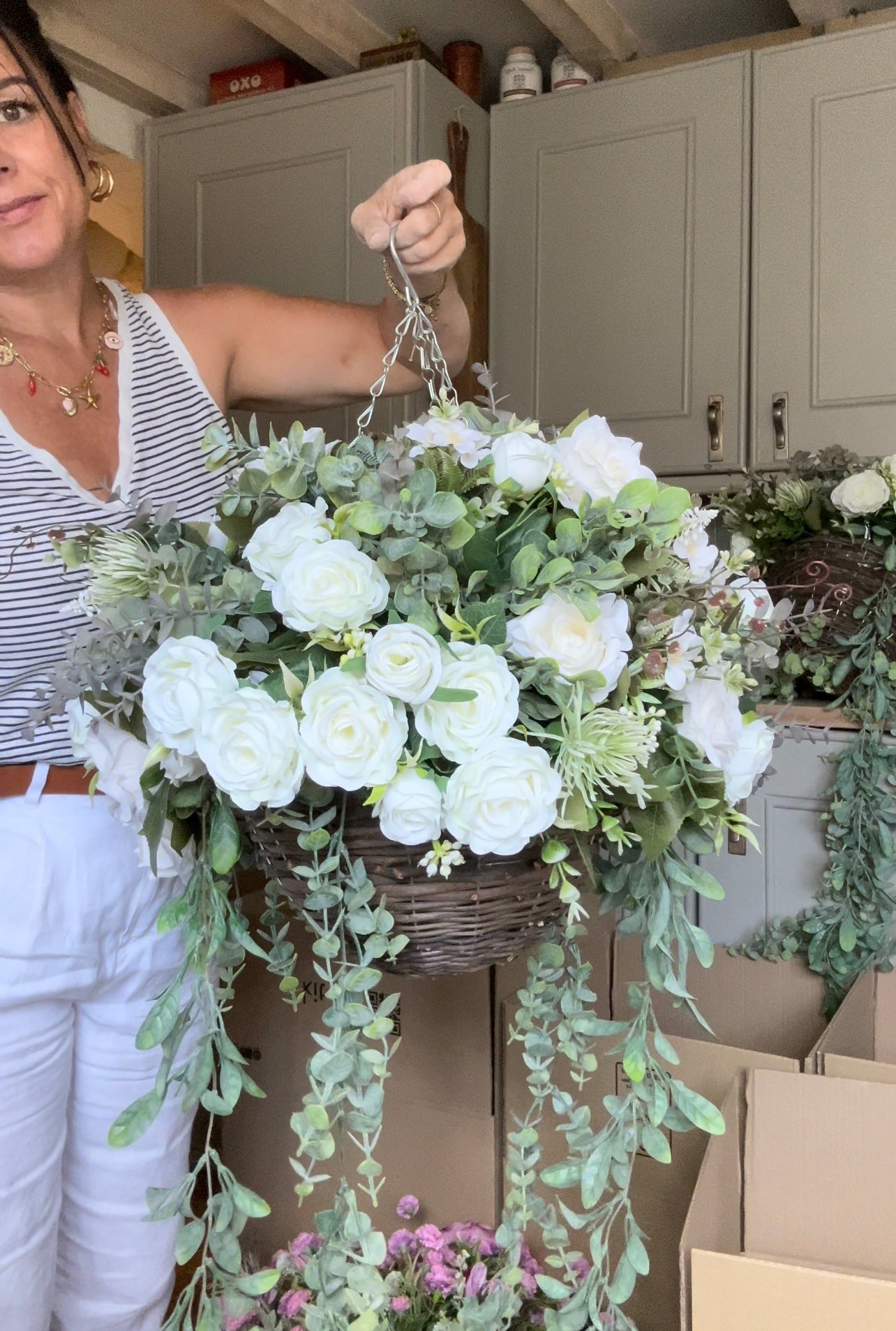 Our Luxury Artificial Hanging Basket is perfect for adding a touch of natural beauty to your indoor or outdoor space. Made with premium materials for a realistic look, this basket features an abundance of realistic flowers and greenery – no maintenance required! Shipping is free and included in the price.