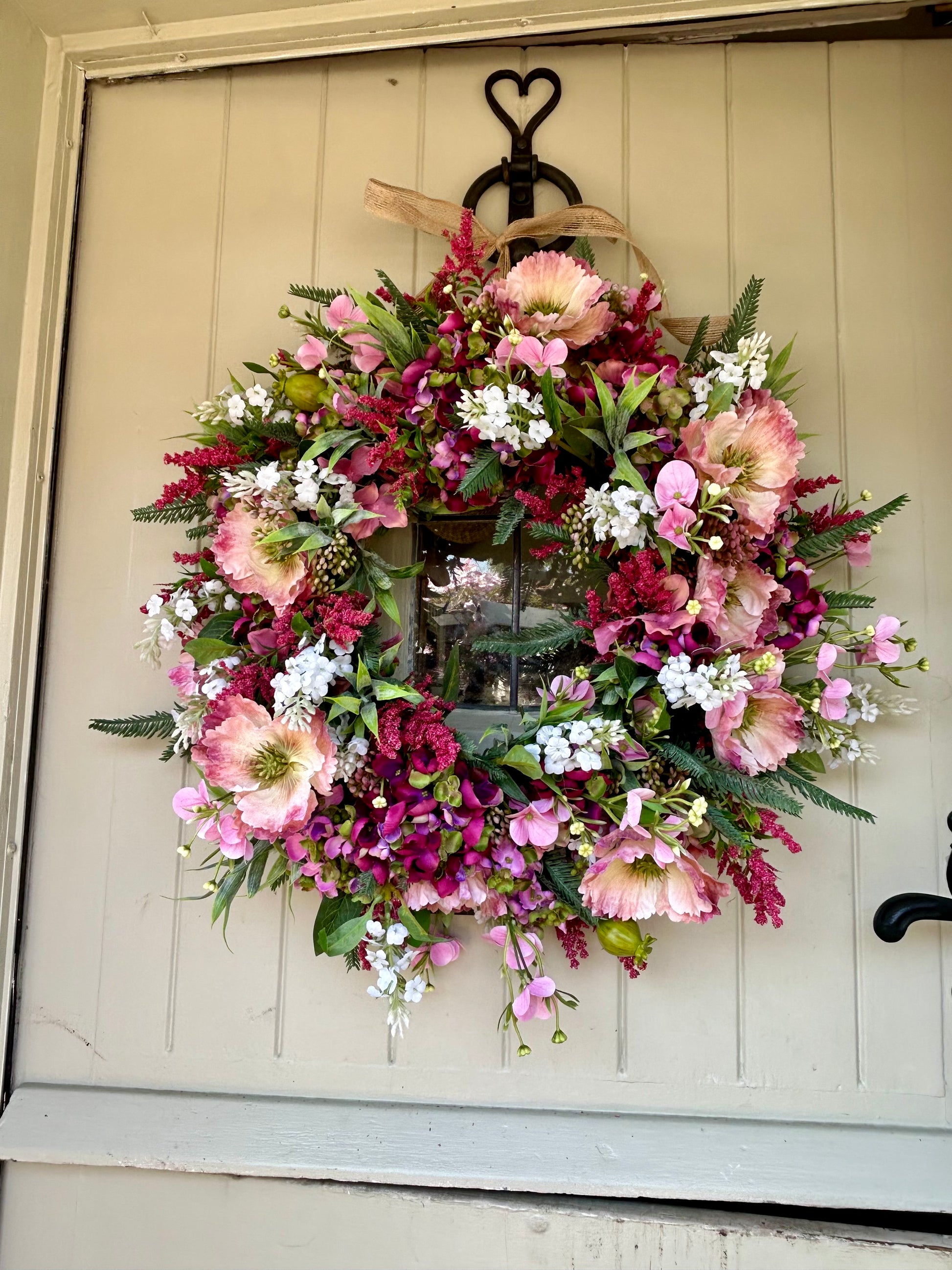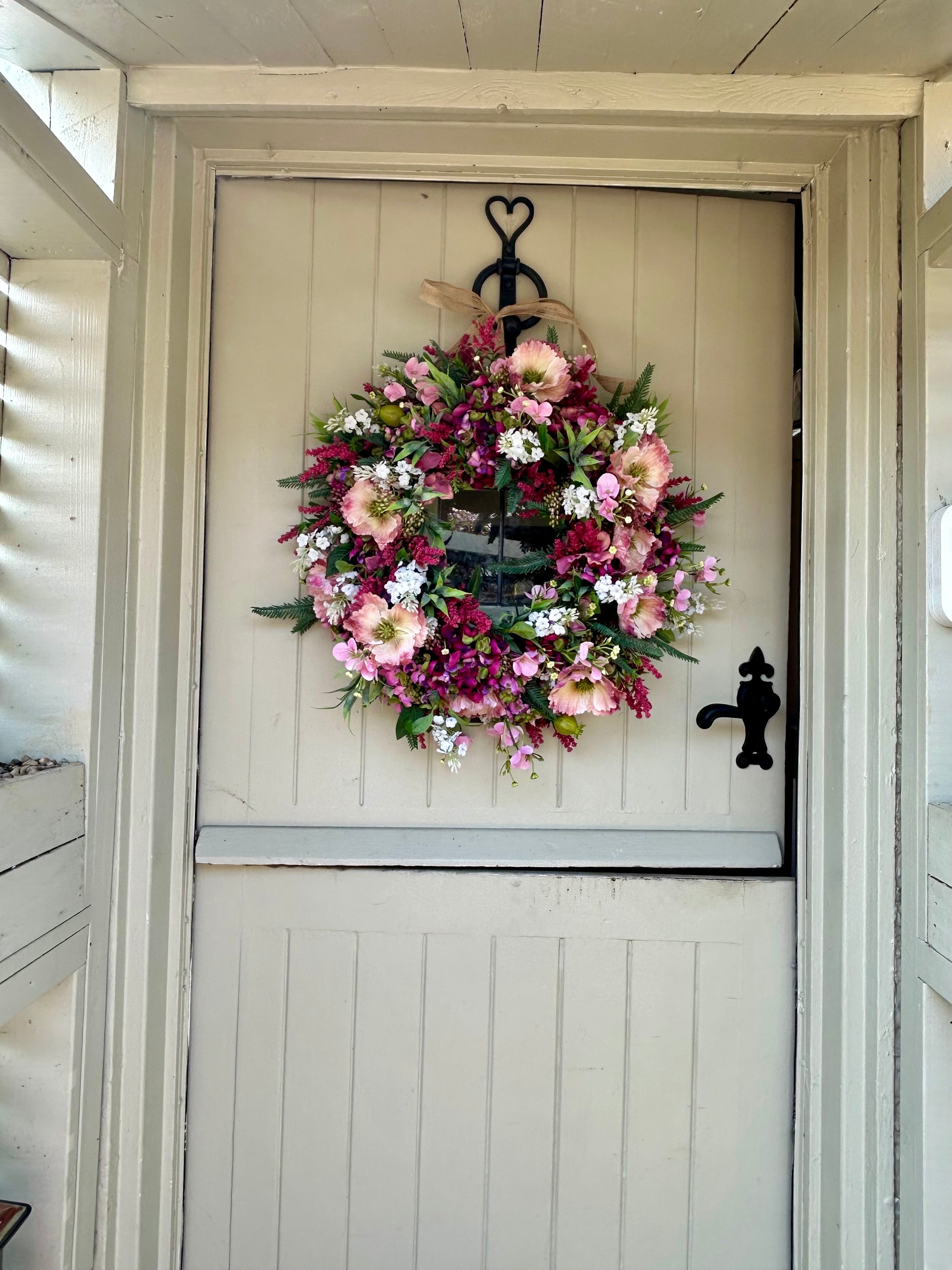 Add a touch of beauty to your home decor with this unique flower wreath that blooms all year round.The mix of berry’s, blossom and foliage give this a chic all year wreath