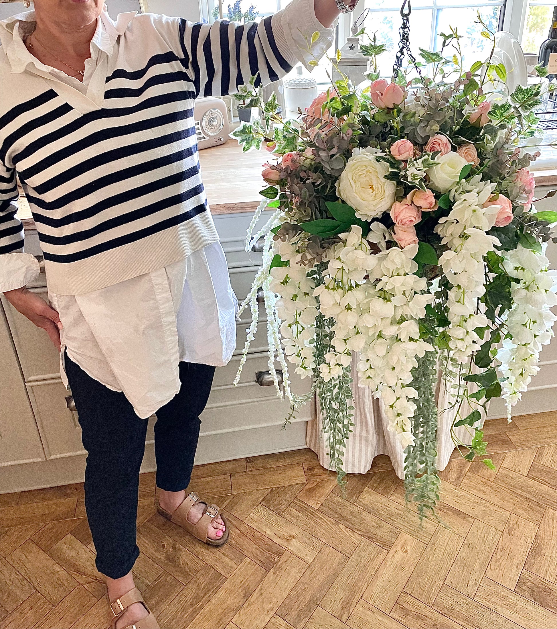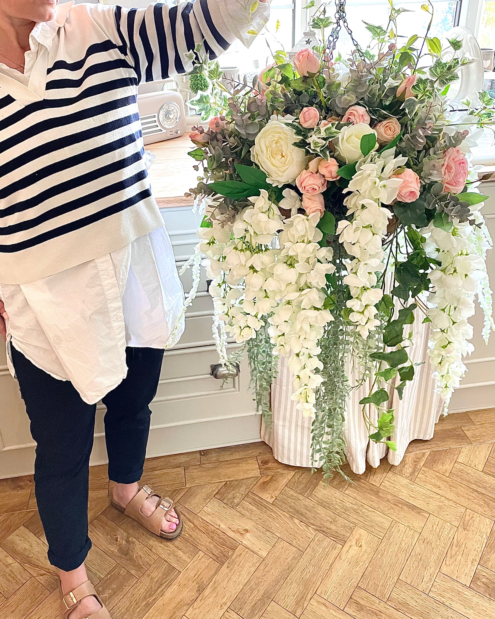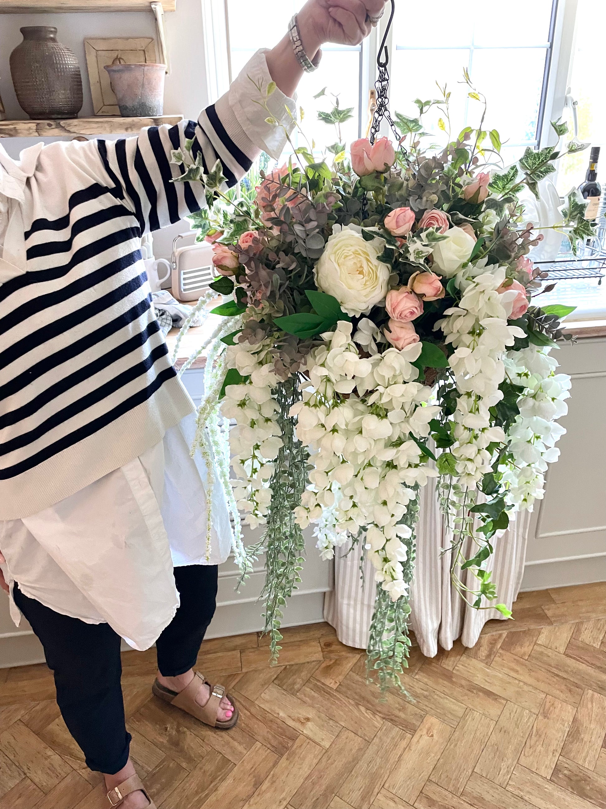 This Pink Rose and Ivy Artificial Hanging Basket brings a luxurious, natural touch to your home or garden. Expertly crafted using realistic, dry-touch roses and ivy, it makes a stunning statement piece. Best of all, it requires no maintenance and looks breathtakingly beautiful year-round.